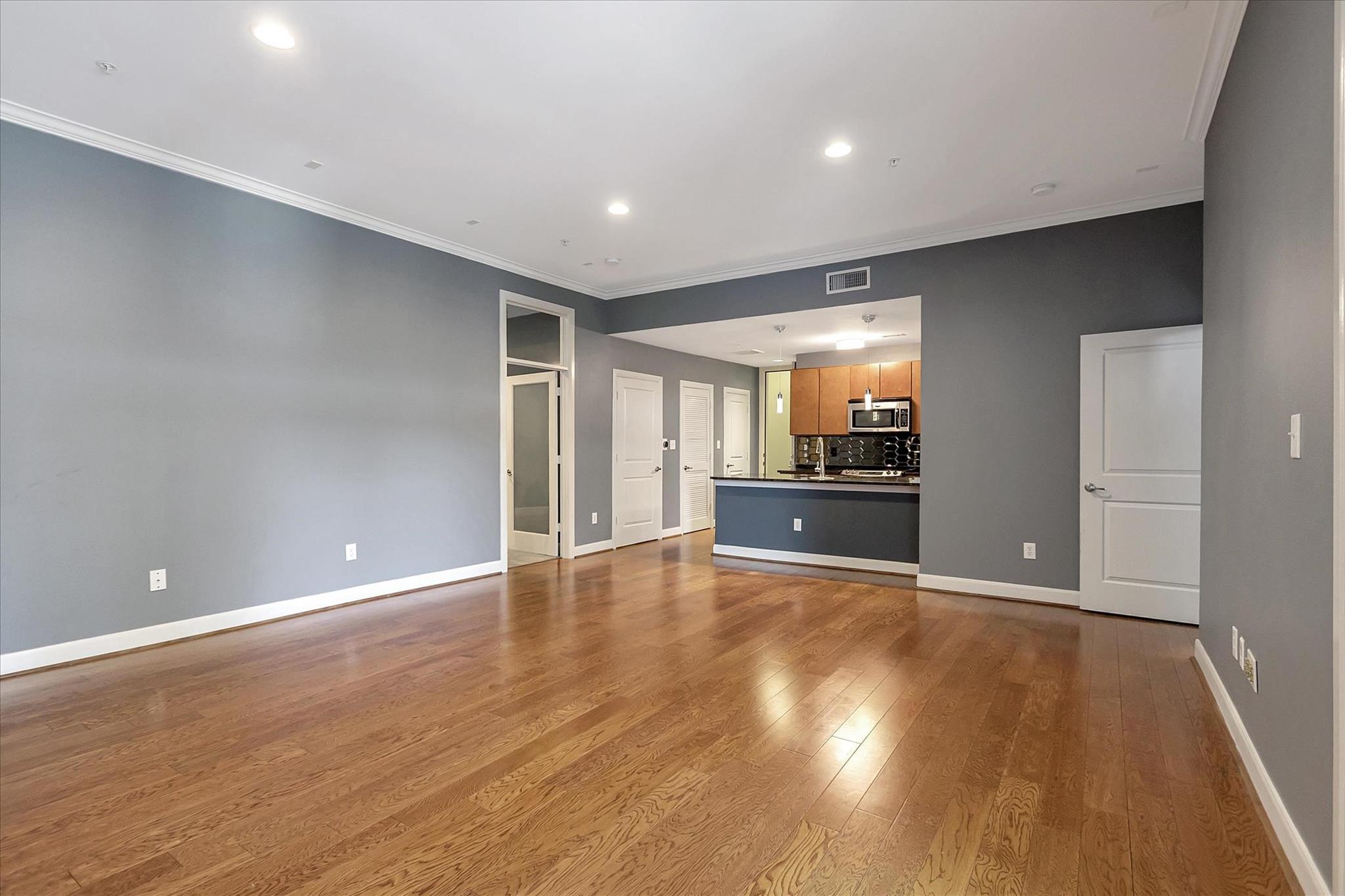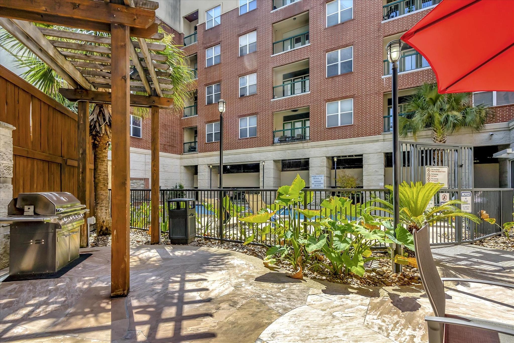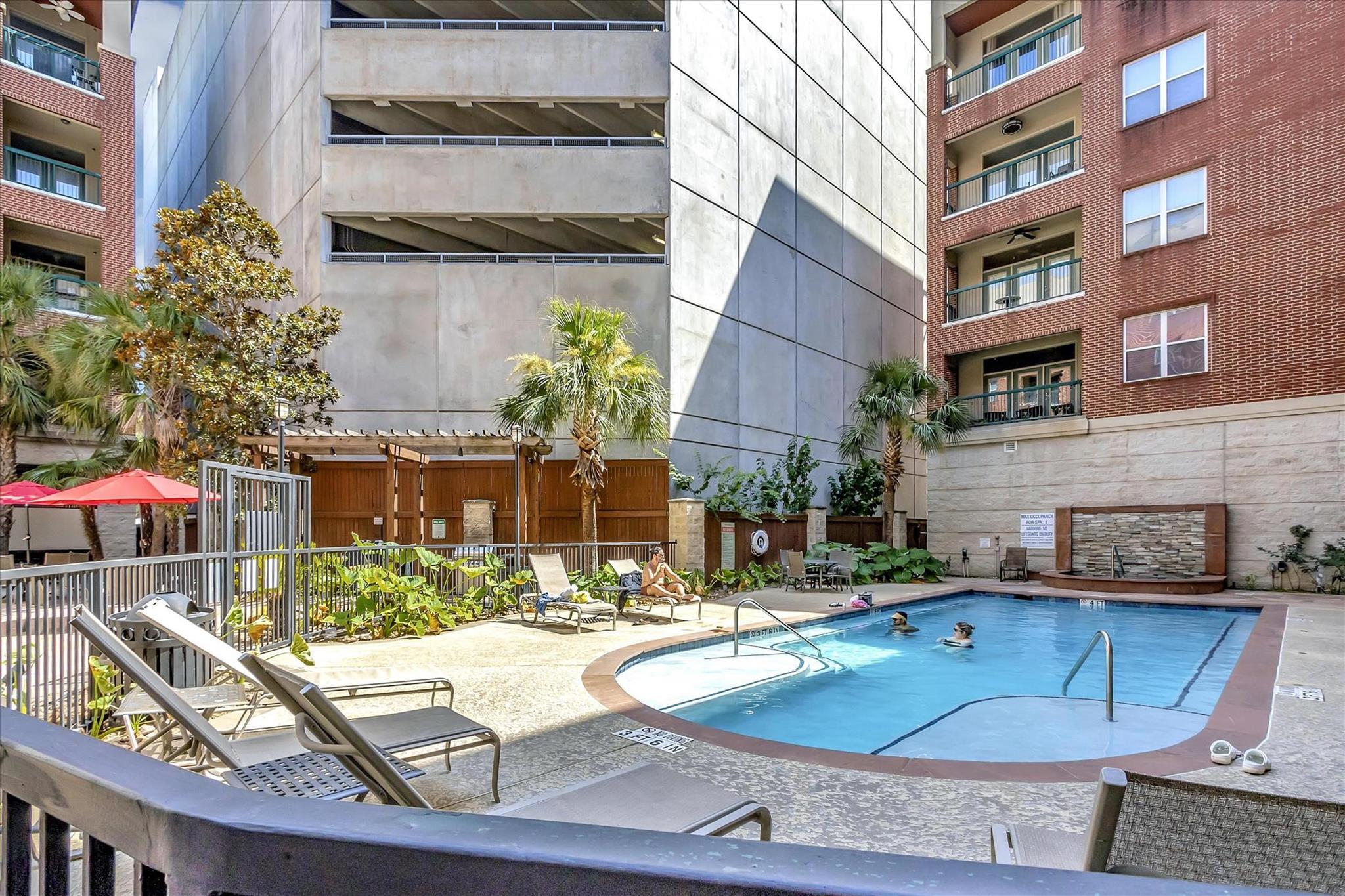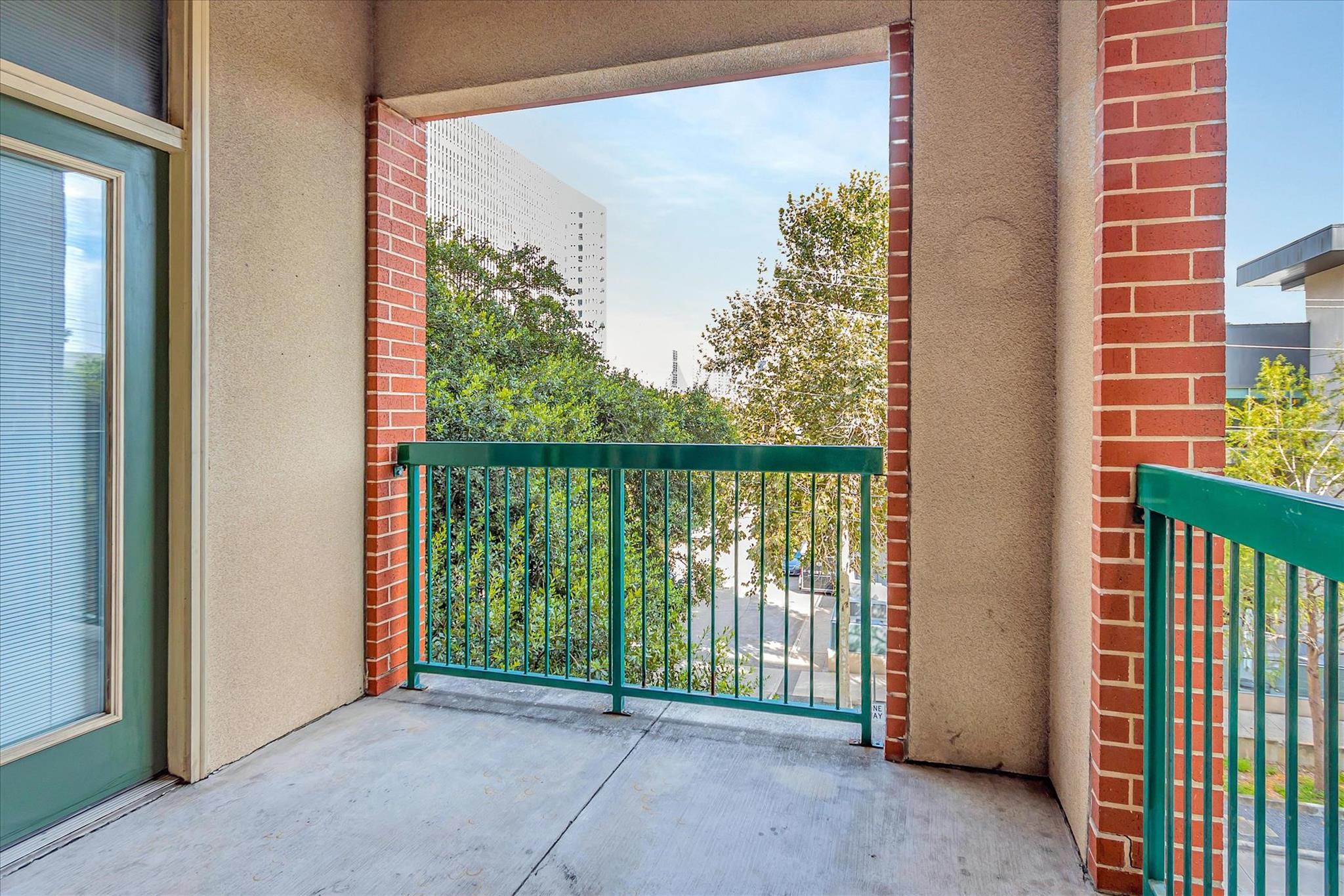 Experience urban living at The Edge in this spacious 2-bed, 2.5-bath Midtown condo offering 1,343 sq/ft of modern comfort and convenience. Updates include new HVAC, washer, dryer and dishwasher. This thoughtfully designed residence features an open-concept living and dining area with hardwood floors, a stylish kitchen with granite countertops, ss appliances, pantry storage, and a breakfast bar adjoining the main living space. Both bedrooms include ensuite baths and generous walk-in closets and custom shelving. Enjoy a large corner balcony off of the living space and a private balcony off of the primary suite. An on-site storage locker and two garage spaces are included. The building provides top-tier amenities including a fitness center, community lounge, outdoor courtyard, pool, and controlled garage parking. With easy access to Downtown, Montrose, and major freeways, this condo blends comfort, security, and unbeatable walkability in the heart of Houston, creating an ideal city abode.