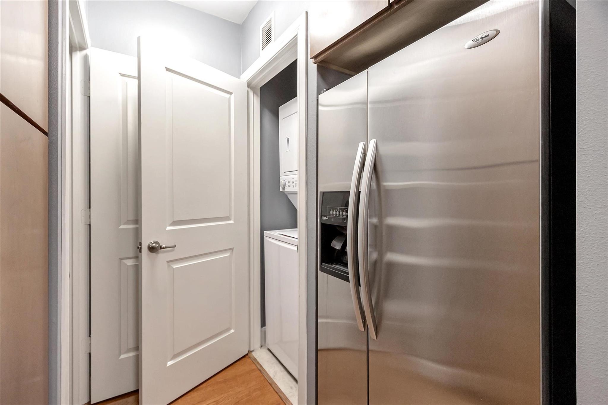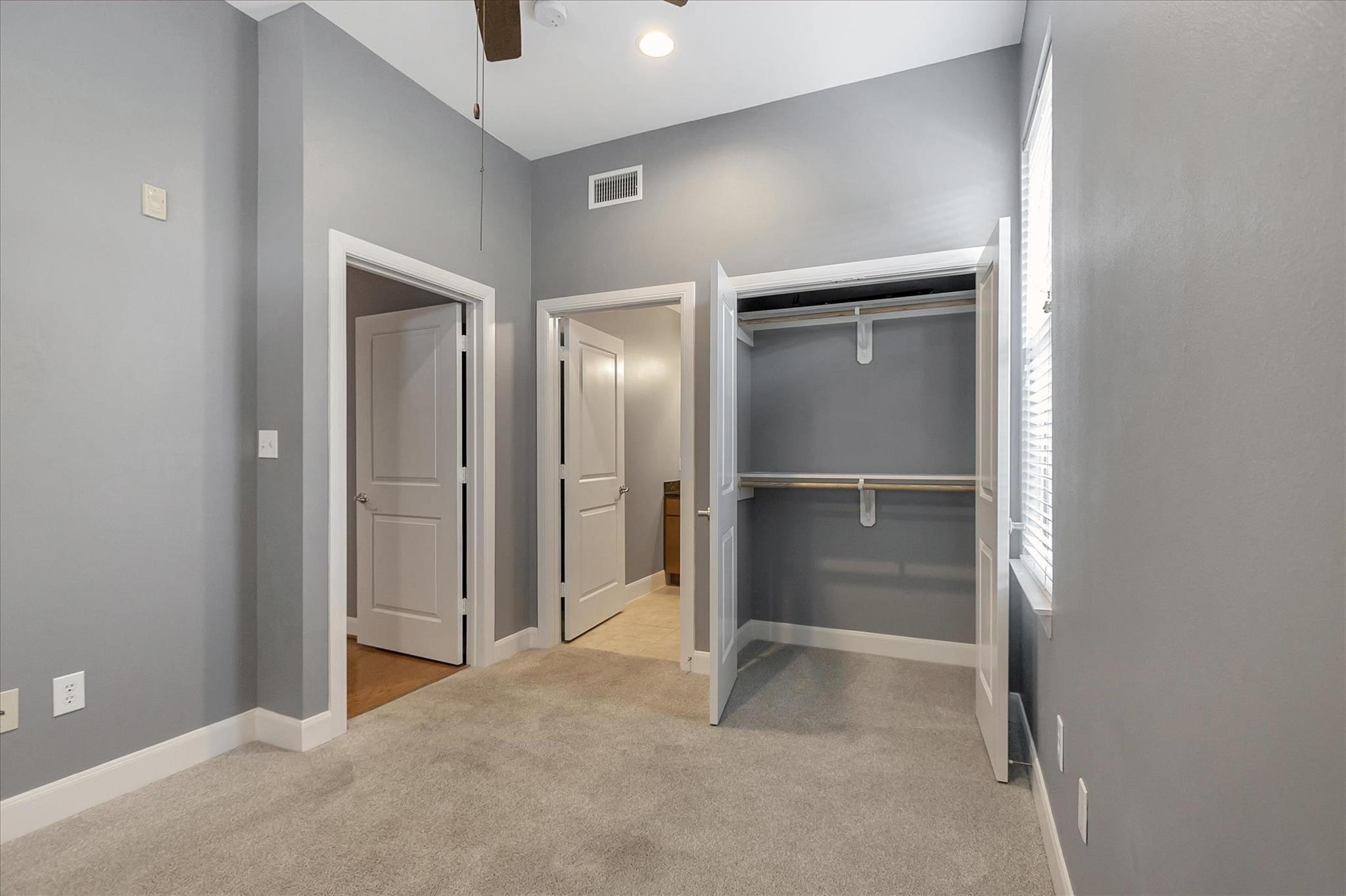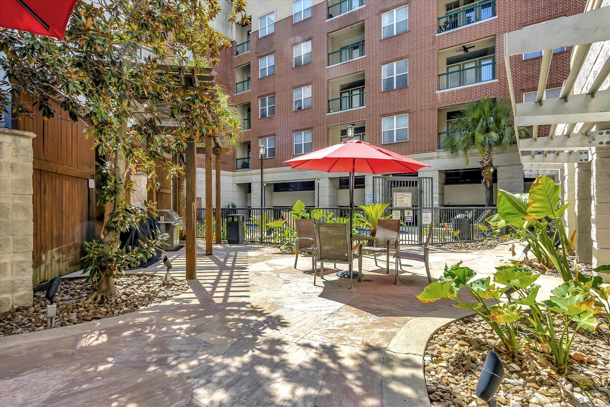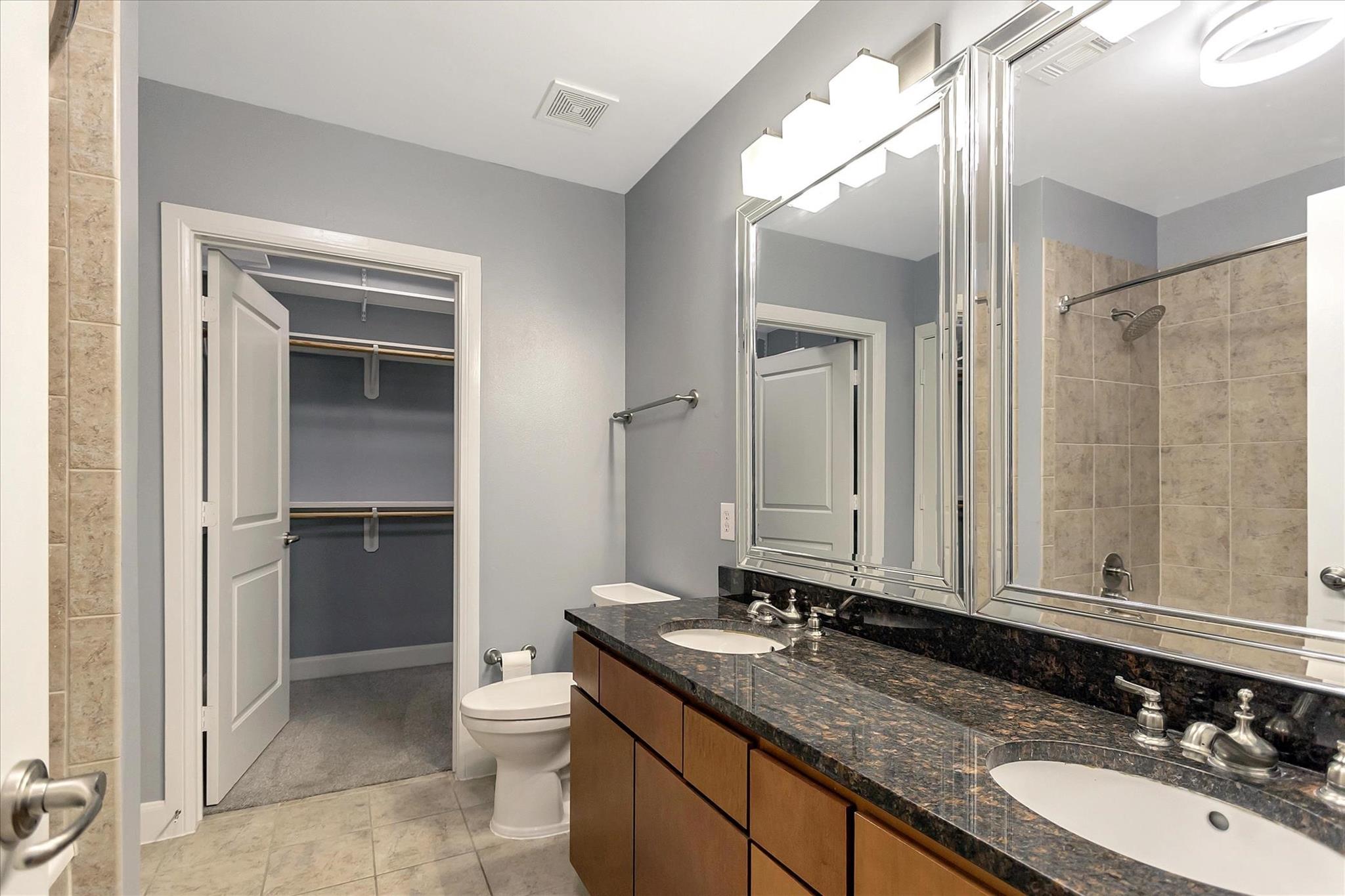 Experience urban living at The Edge in this spacious 2-bed, 2.5-bath Midtown condo offering 1,343 sq/ft of modern comfort and convenience. Updates include new HVAC, washer, dryer and dishwasher. This thoughtfully designed residence features an open-concept living and dining area with hardwood floors, a stylish kitchen with granite countertops, ss appliances, pantry storage, and a breakfast bar adjoining the main living space. Both bedrooms include ensuite baths and generous walk-in closets and custom shelving. Enjoy a large corner balcony off of the living space and a private balcony off of the primary suite. An on-site storage locker and two garage spaces are included. The building provides top-tier amenities including a fitness center, community lounge, outdoor courtyard, pool, and controlled garage parking. With easy access to Downtown, Montrose, and major freeways, this condo blends comfort, security, and unbeatable walkability in the heart of Houston, creating an ideal city abode.