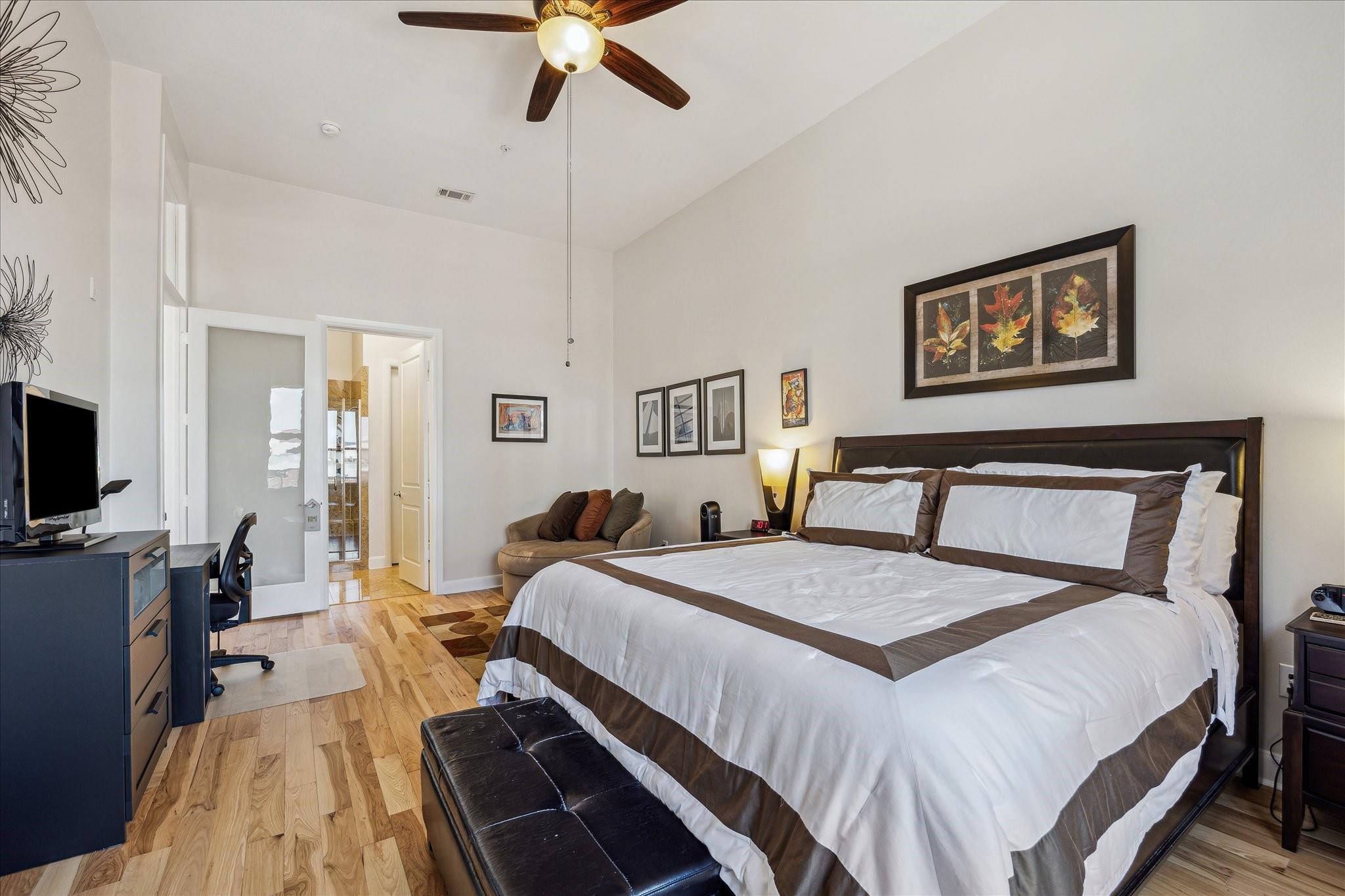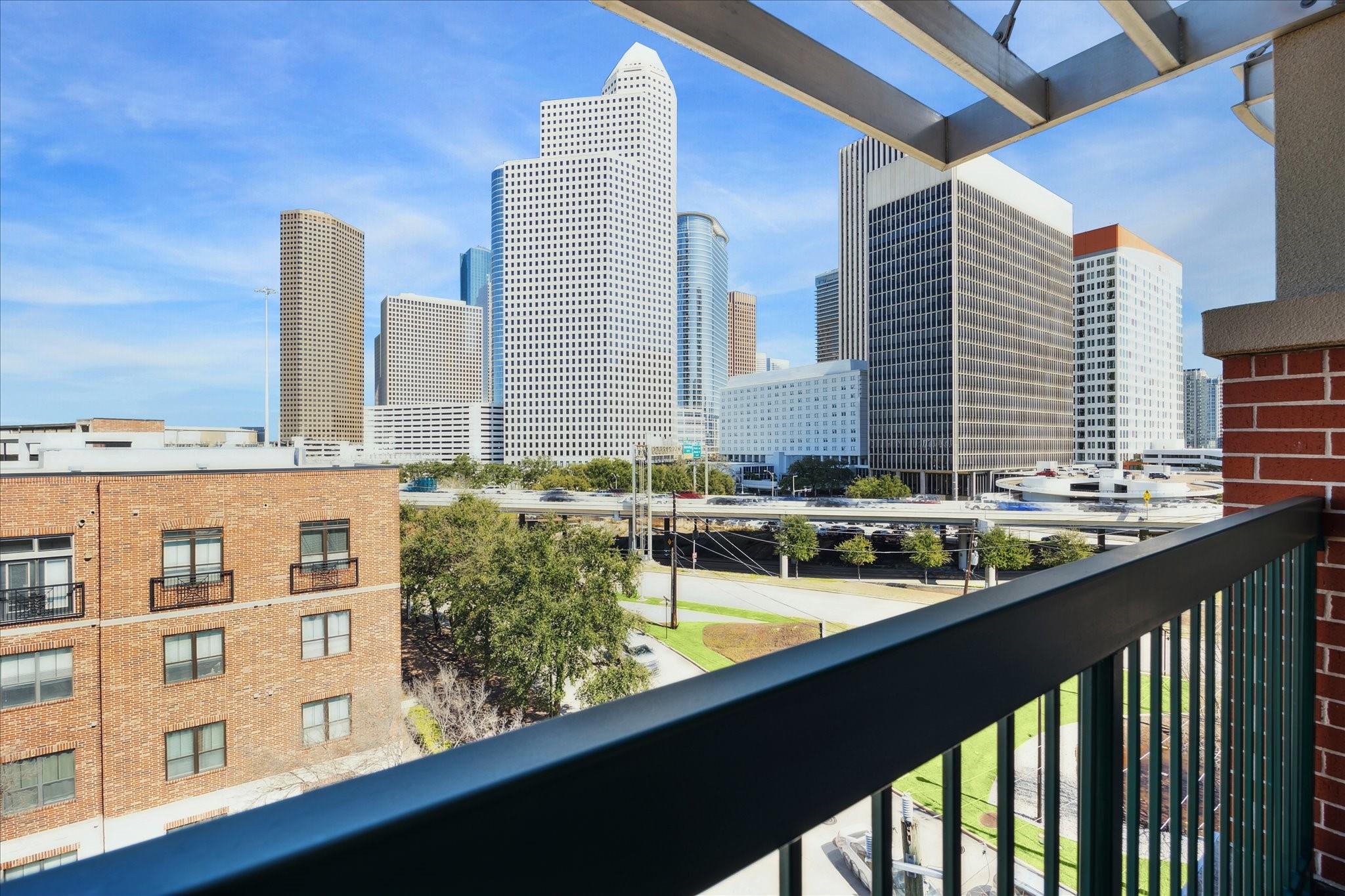 Unobstructed, panoramic views of downtown Houston! This 2 bed, 2.5 bath condo is located on the top floor of The Edge in Midtown. Step into this recently renovated unit to an open-concept living space filled with ample natural light, high ceilings, and beautiful hardwood floors. The spacious primary suite includes a large walk-in closet, a skylight for tons of natural light, and a spa-like ensuite bath. The second bedroom has its own private balcony, and an ensuite bathroom with a spacious closet. Enjoy your morning coffee on the private balcony with views of downtown that are hard to beat. This unit includes two assigned parking spaces in the secure garage. The Edge has fantastic amenities, including a resort-style pool, fitness center, lounge, and media room. Located just minutes from Downtown Houston, Buffalo Bayou Park, top-rated restaurants, nightlife, and shopping, this home offers incredible walkability and easy access to major highways and public transportation.