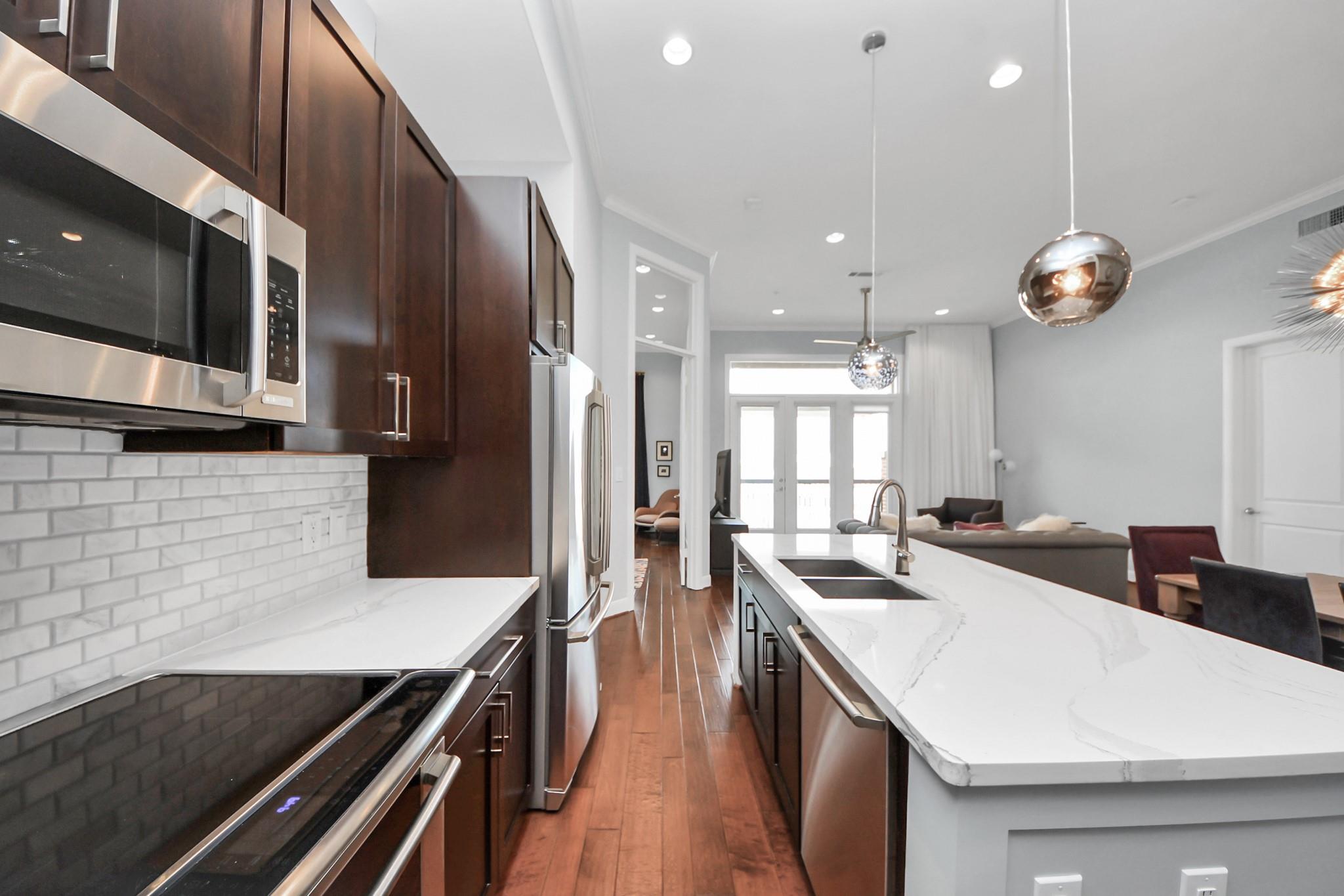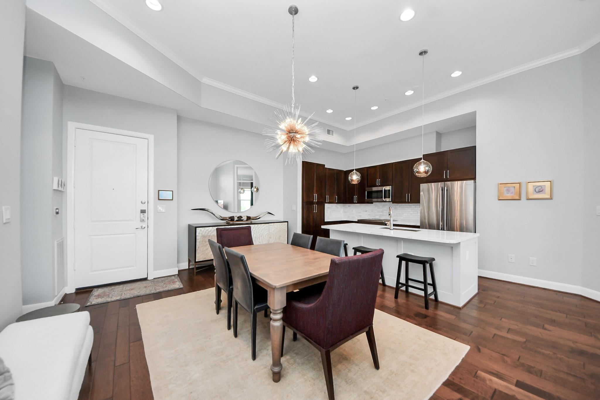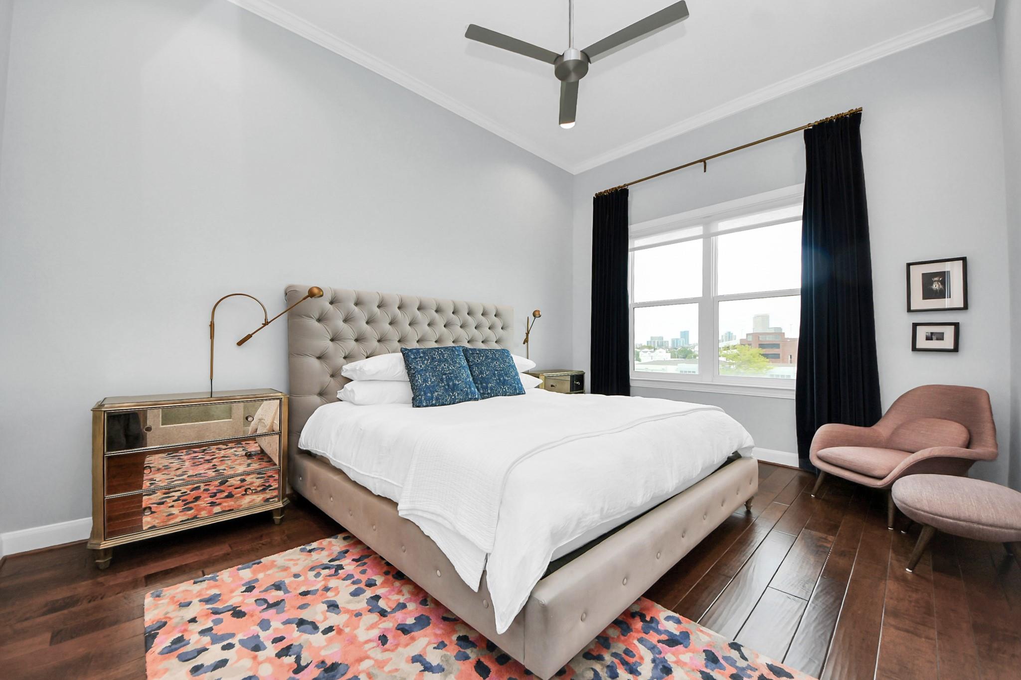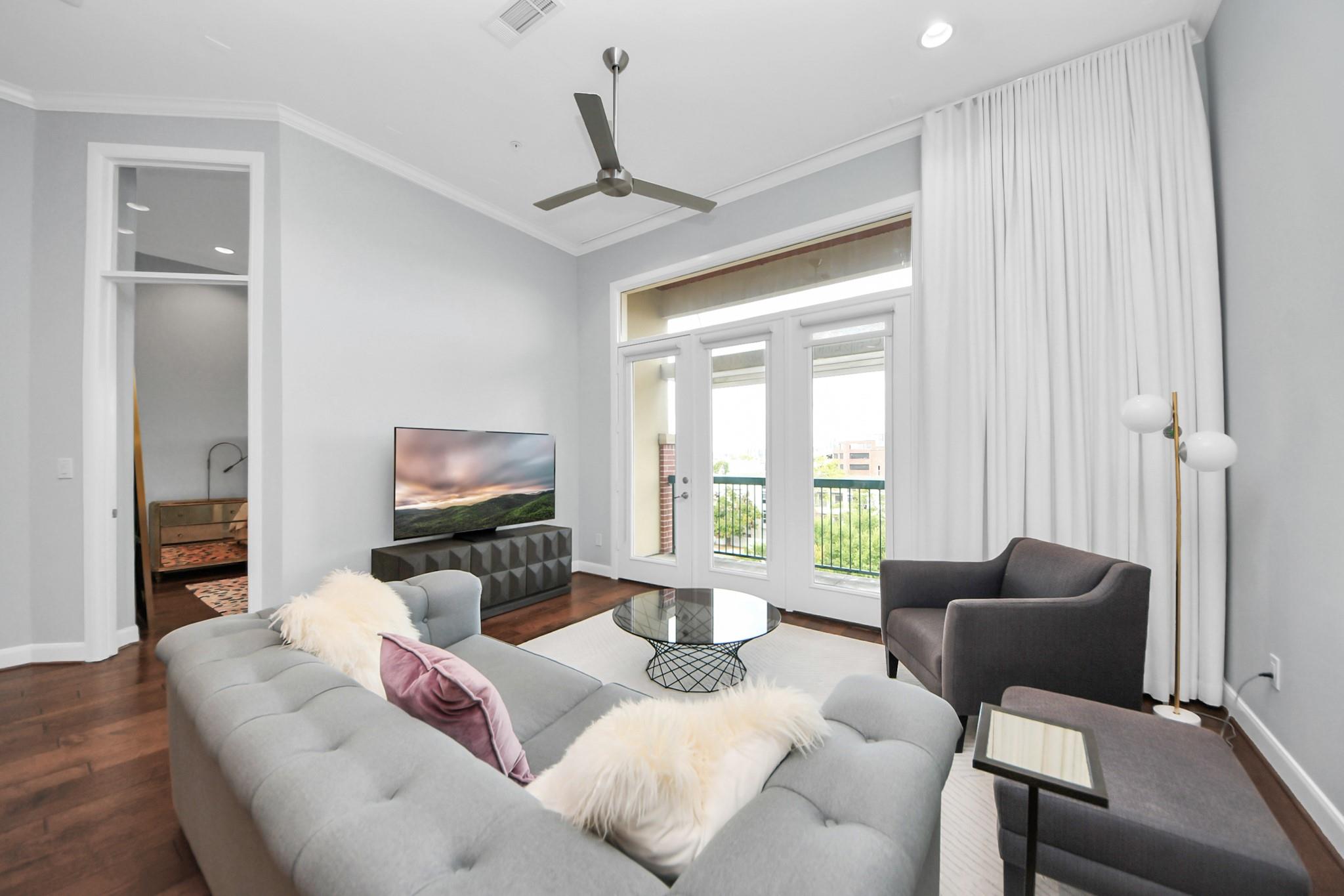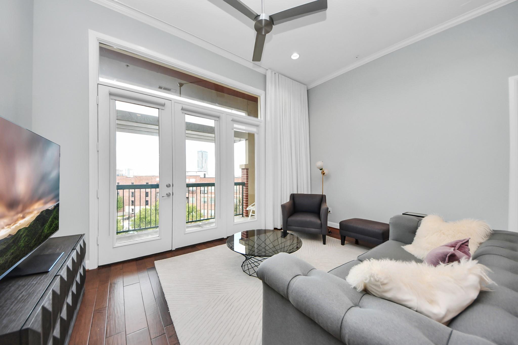 Experience upscale urban living in this beautiful 2-bedroom, 2-bath condominium in Houston’s vibrant Midtown neighborhood at The Edge Condominiums. Open-concept living space features soaring ceilings, hardwood floors, and designer finishes. The kitchen offers soft-close cabinetry, quartz countertops, marble backsplash, Electrolux appliances, an induction cooktop, and a large island perfect for entertaining. Primary suite includes a spa-inspired bath with granite countertops, dual vanities, a soaking tub/shower combo, and a walk-in closet with custom shelving. Secondary bedroom works well for guests/home office. Private balcony with Midtown skyline views, including an unobstructed view of Downtown Houston’s 4th of July fireworks. Additional features: two reserved garage spaces & private storage locker. Residents enjoy a pool, fitness center, theater, club lounge, and controlled-access lobby, steps from dining, nightlife, METRORail, and easy access to Downtown and the Medical Center.