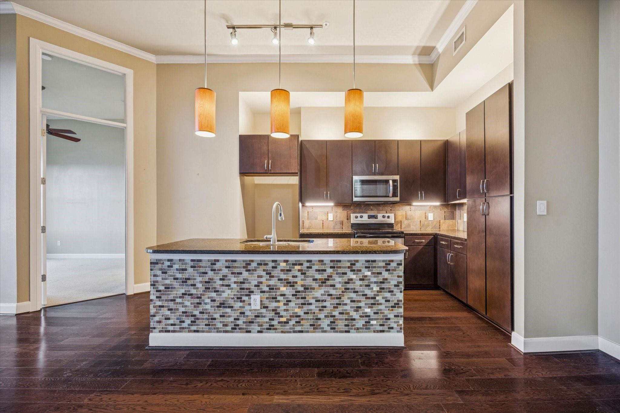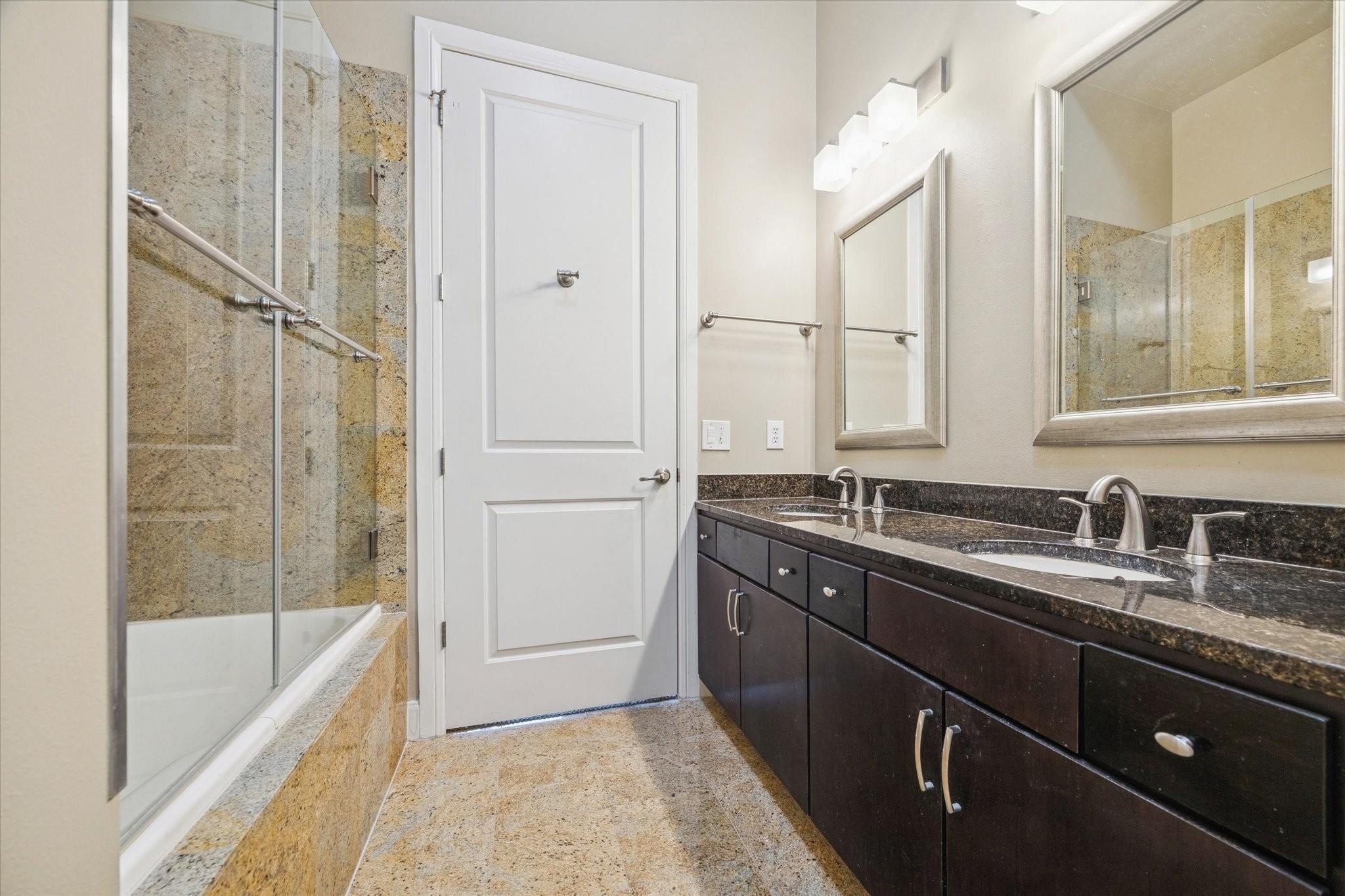 Gorgeous 2-bedroom, 2 bathroom condo, located on the 4rd floor in the middle of Houston DT, within walking distance to restaurants, coffee shops, and nightlife. Offers easy access to downtown, the Medical Center, freeways and METRO.The entry hall leads you to the open Living, Dining and beautiful Island Kitchen with 10 foot ceilings, granite in kitchen and bathrooms. One of the bathroom has been converted into a “walk in Showers” The split floorplan provides privacy for both bedrooms and a spacious open living area. Large balcony with pull down curtain. Two assigned garage parking spaces . Peace of mind with a secure building entrance and concierge/front desk services. Building amenities: swimming pool, fitness center, game room/lounge, theater room, grilling area. Come and see this beautiful condo today
