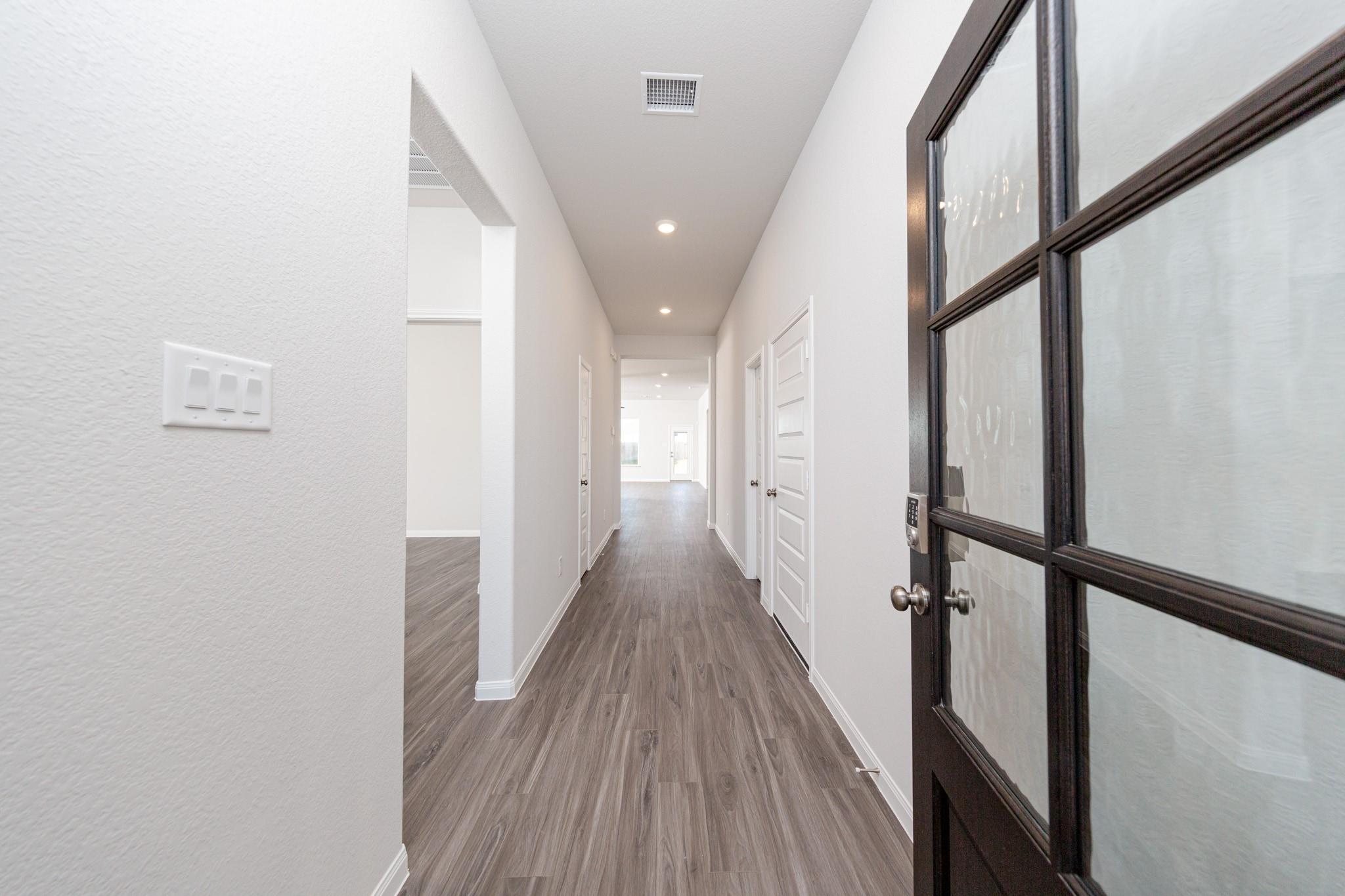 Welcome home to Bluestem in Brookshire, TX. The Highlands floor plan is a charming one-story home designed for comfortable living and easy entertaining. With 3 bedrooms, 2.5 bathrooms, a flex space, and a 3-car garage, there’s room to fit your lifestyle now and in the years ahead. Vinyl plank flooring runs through the main areas, creating a warm, cohesive feel. The gourmet kitchen features 42-inch white cabinetry, quartz countertops, stainless-steel appliances, and a large island overlooking the family and dining rooms—perfect for gathering with friends or enjoying everyday meals at home. The private Owner’s Suite includes a tray ceiling, double sinks with quartz countertops, a separate tub and shower, and a spacious walk-in closet. Secondary bedrooms and the flex space offer versatility for work, hobbies, or guests. Enjoy the covered patio and a full sprinkler system for added convenience. Discover modern design and relaxed living—schedule your visit today!