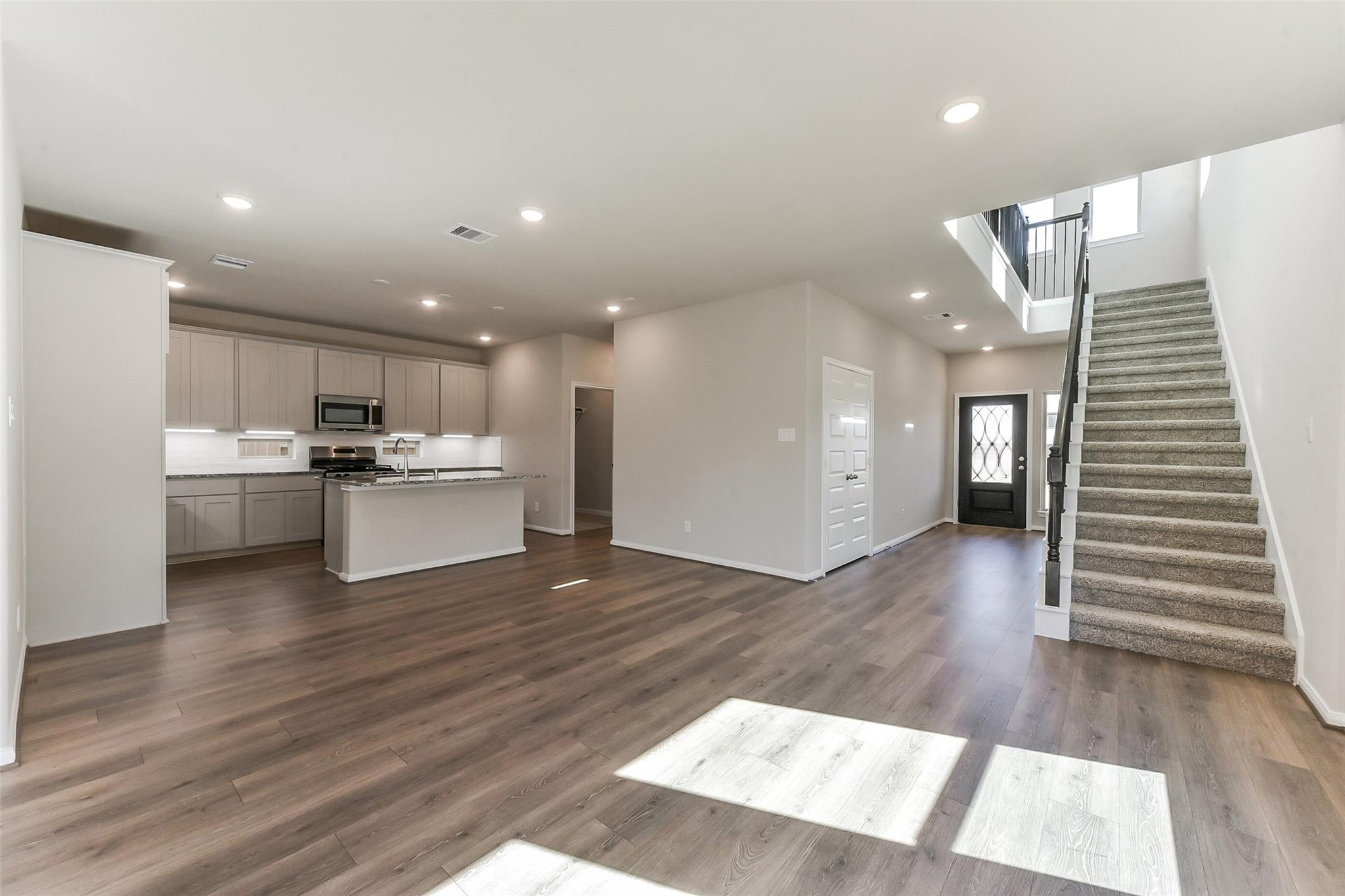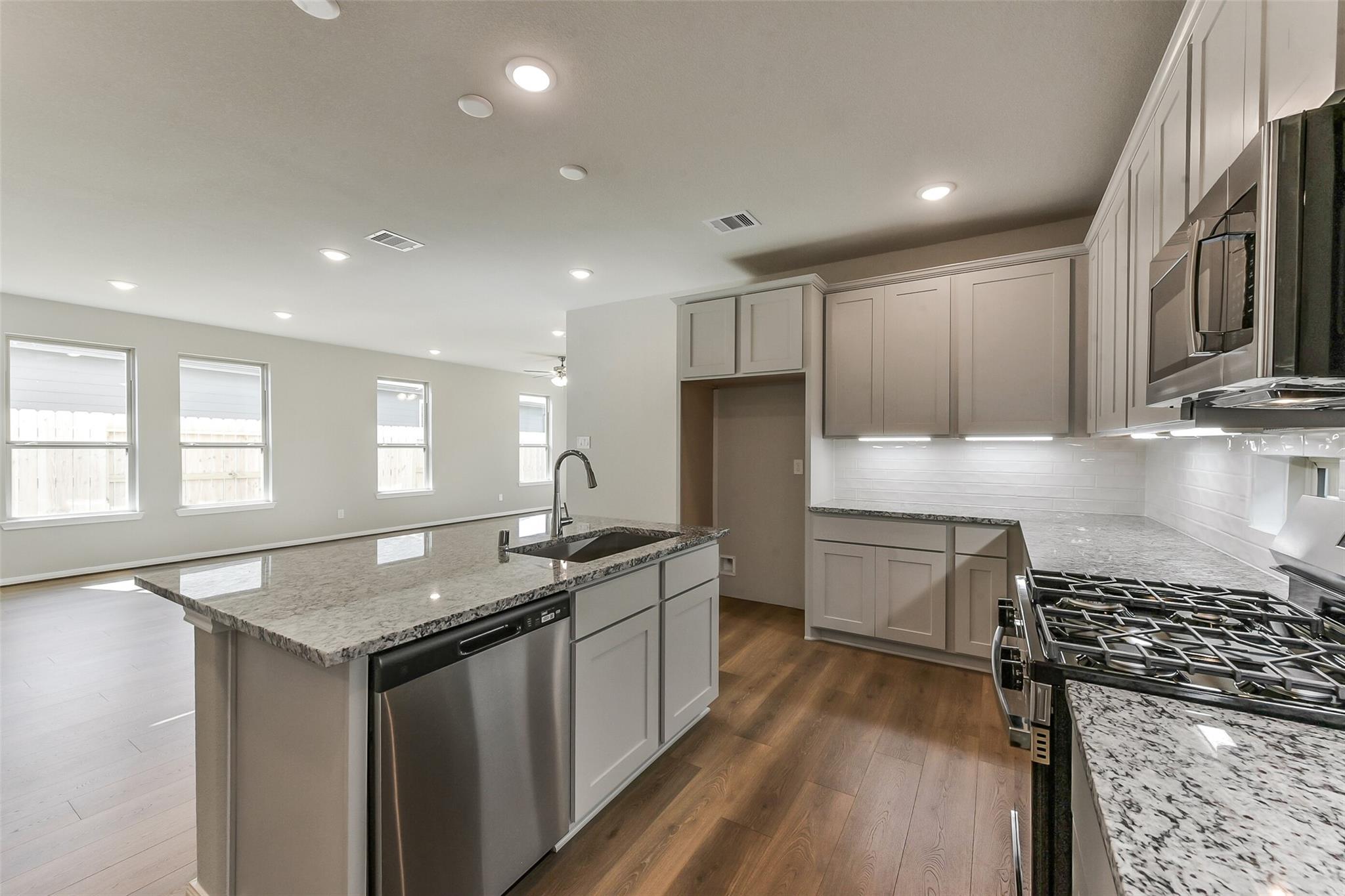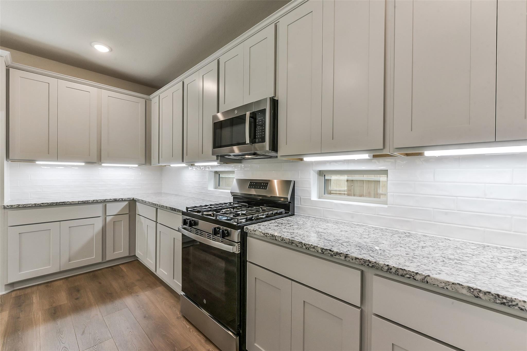 New Construction - McKinley Homes – Trenton Plan – 2719 sqft. – 2 Story – 5 bed, 3.5 baths & Game Room, 2 Car Garage w/ Covered patio, Primary Bedroom with Bay Window, Tile @ Family Room, Entry/Extended Entry, Kitchen/Breakfast/Powder Bath/Utility Room, Tile Floors @ Primary Bath, Tile Floors Bathroom 2, 42” Kitchen Cabinets –, Granite Counter Tops w/Stainless Steel Sink & Backsplash w/Undermount Cabinet Lighting, (3) Pedant Lighting @ Kitchen Island, GE Stainless Steel Appliances, Full Wrap Wrought Iron Spindles at Stairs, Spa Walk-In Mud Set Shower w/Rain Shower Fixtures in Primary Bath, Front/Back Full Irrigation Sprinkler System w/Fully Sodded Front/Back yard. Brick/Stone Front Elevation, 2” Designer White Blinds, Wi-Fi Garage Door Opener, 30-Year Roof Composite Shingles