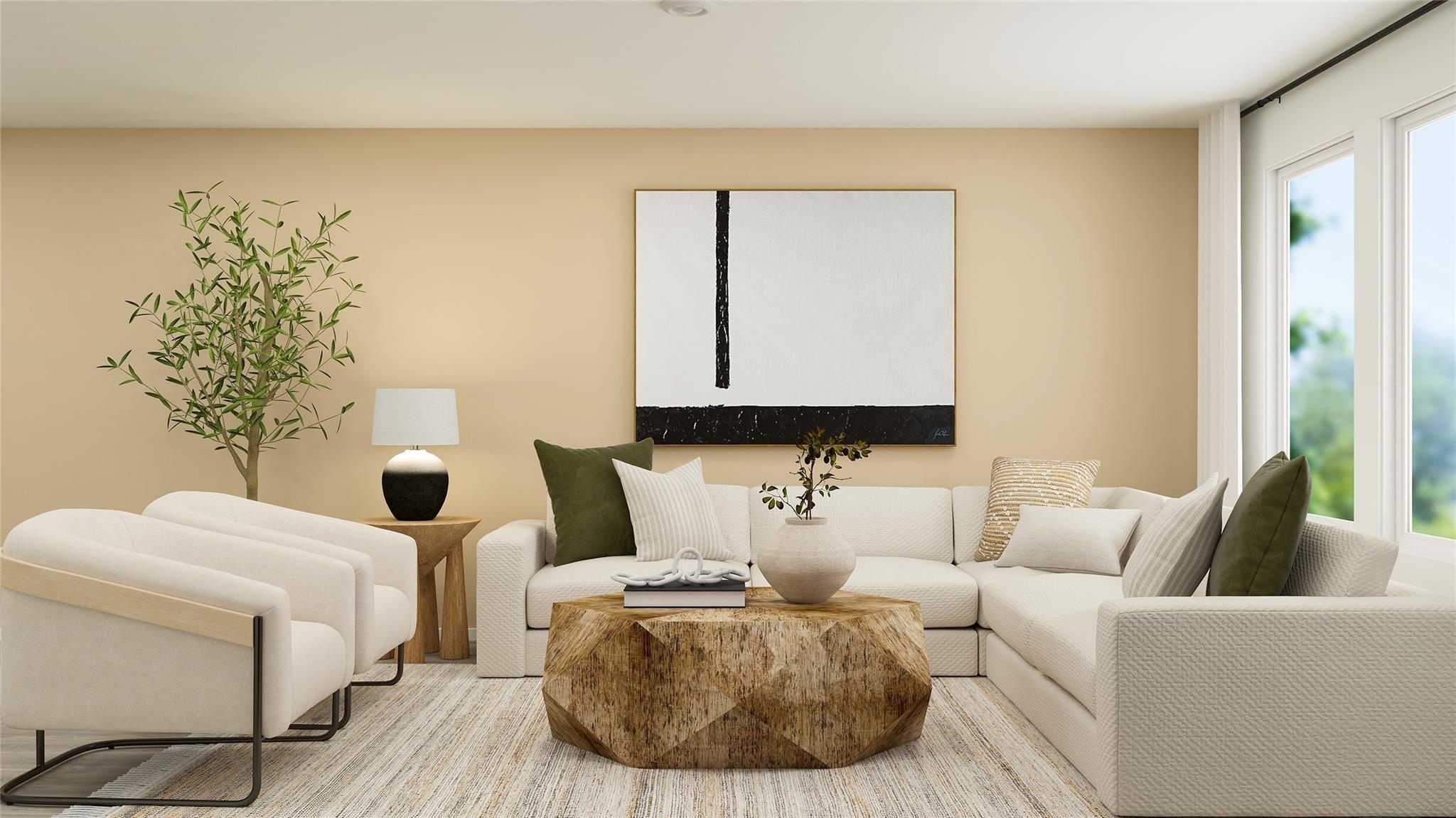 NEW! Core Cottage Collection by Lennar, Sentosa plan elevation "K4" in Sunterra! This new home offers simple living with a convenient single-level layout. An open-concept floorplan combines the kitchen, living and dining areas for simple entertaining and multitasking. Three secondary bedrooms are tucked away to the side of the home, and the owner’s suite is nestled into a private rear corner, offering access to a spa-inspired bathroom and walk-in closet.