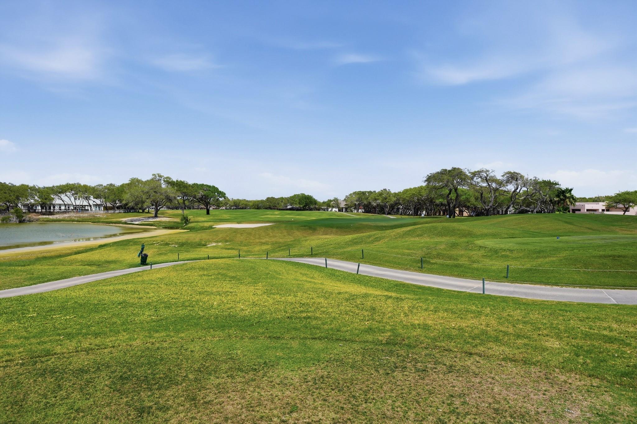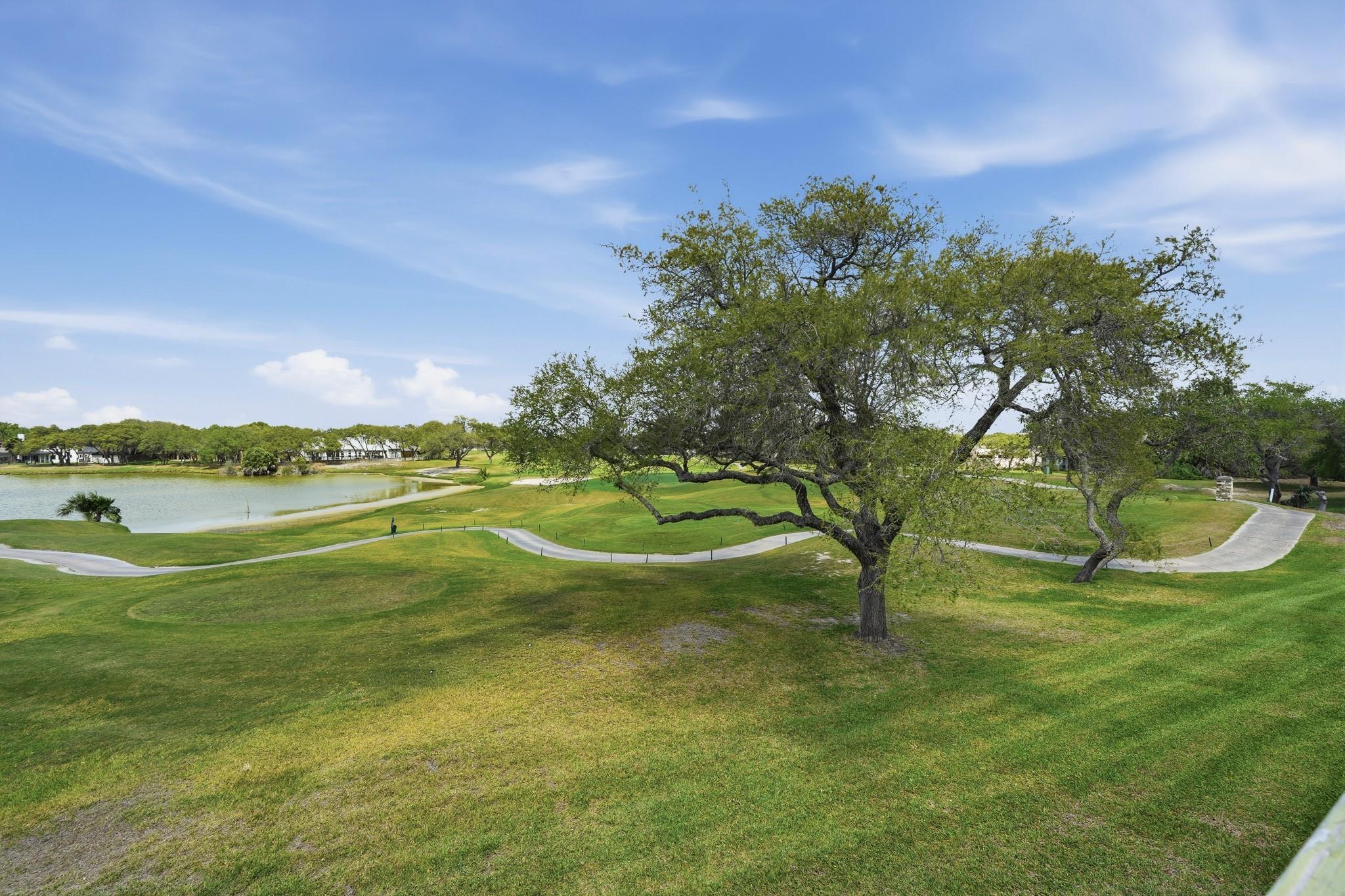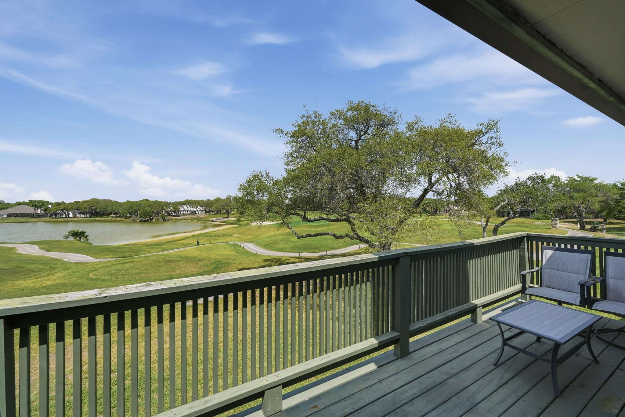 2-bedroom, 2-bath condo in the desirable Rockport Country Club community! This second-floor unit offers beautiful golf course and water views from a private balcony—perfect for relaxing mornings or evenings. The interior features an open layout with wood-look flooring, neutral tones, and a bright living and dining area. The kitchen includes a breakfast bar and ample cabinet space for everyday convenience. Both bedrooms are comfortably sized, with the primary suite offering added privacy. Covered parking and access to community amenities, including two pools, a clubhouse, and boat parking, add to the appeal. Conveniently located near shopping, dining, fishing, and coastal attractions in Rockport, this condo is ideal for full-time living, a weekend getaway, or investment.