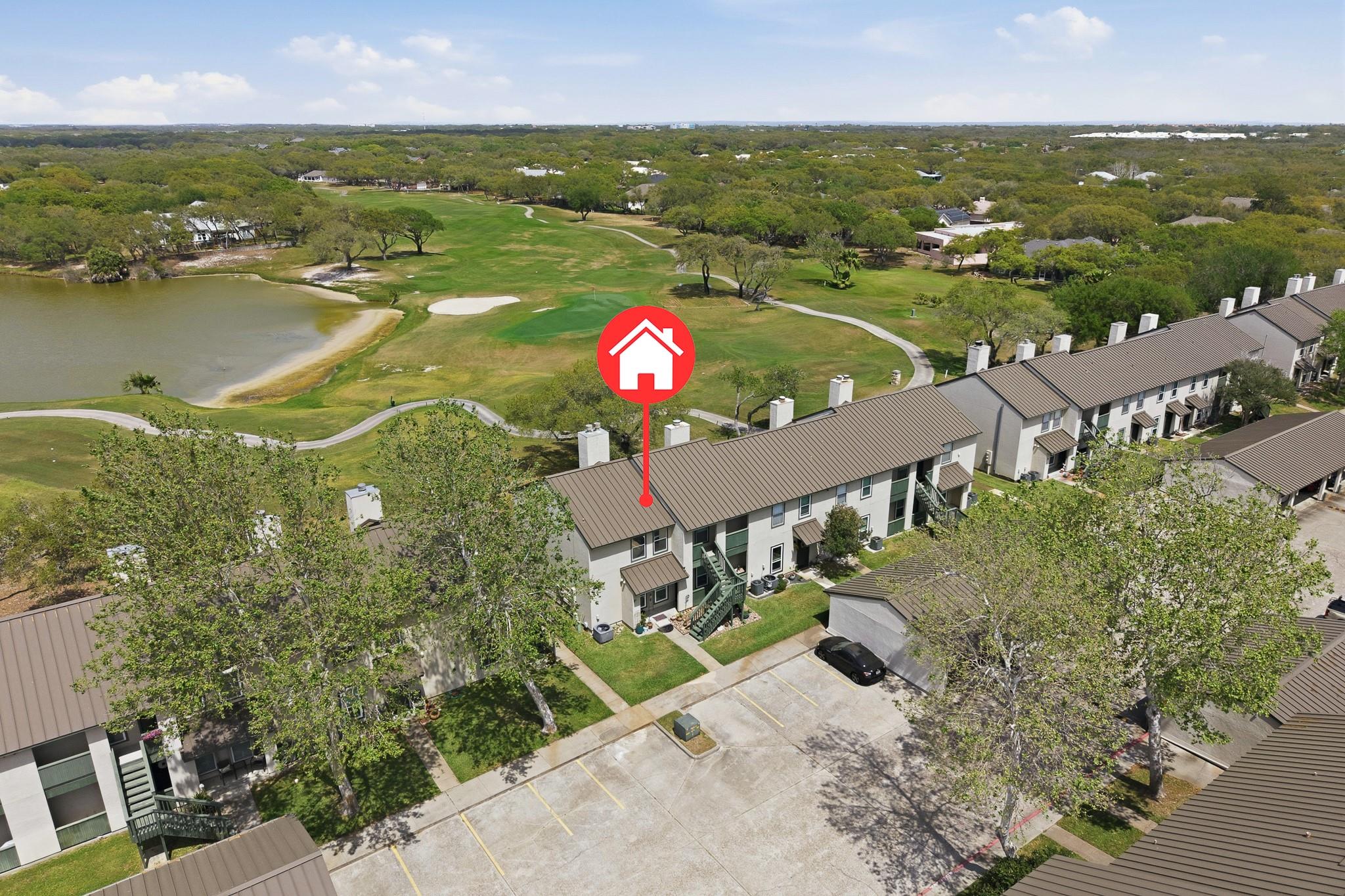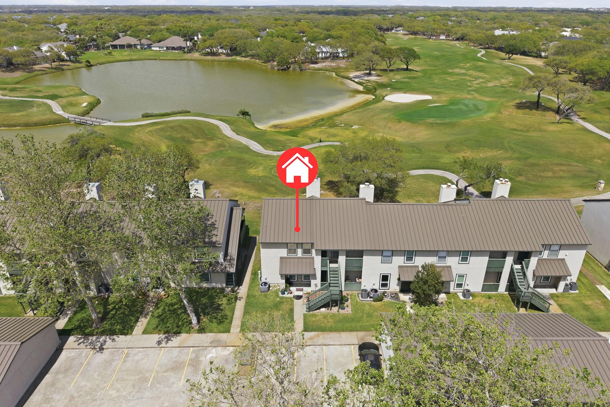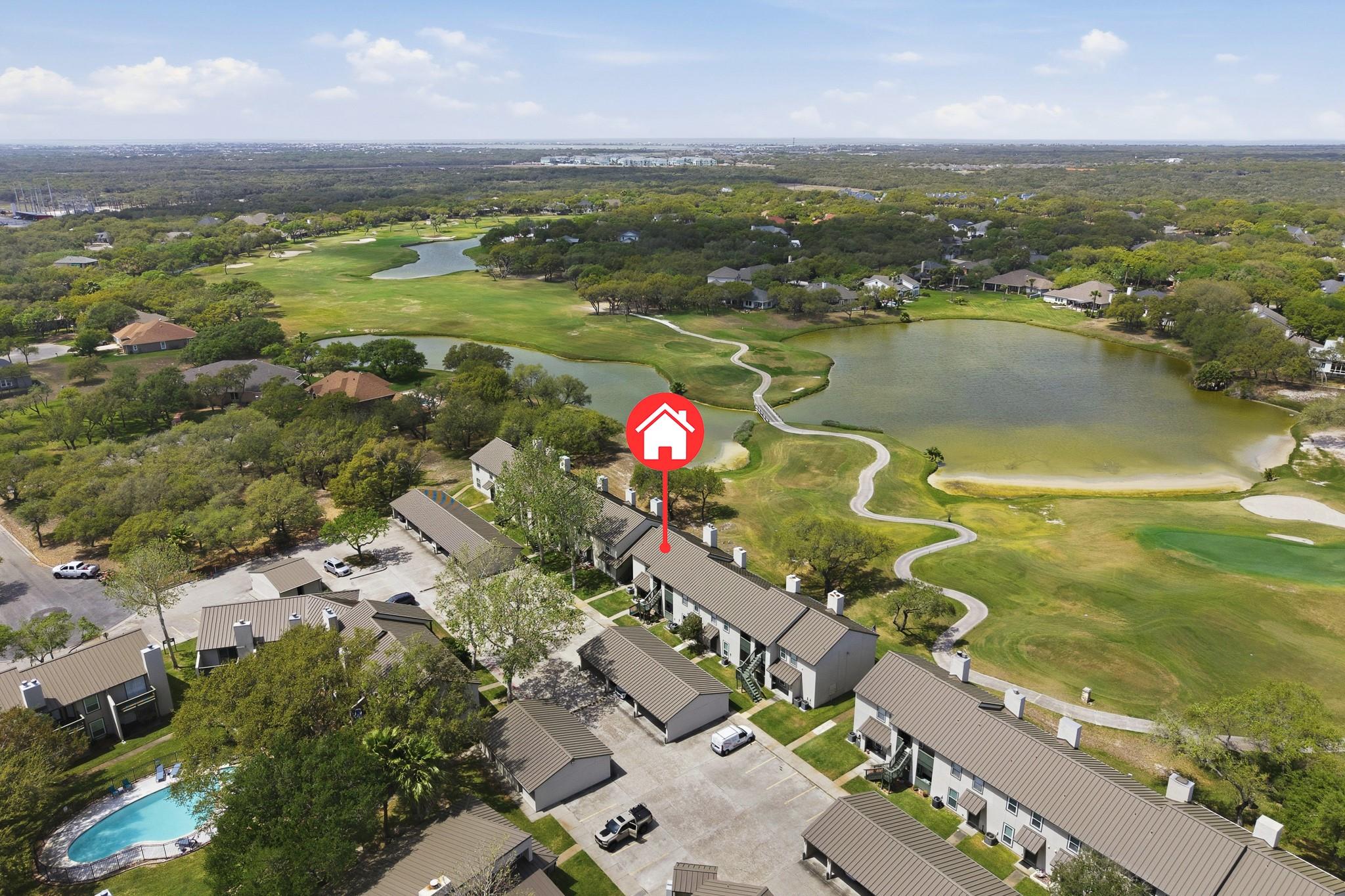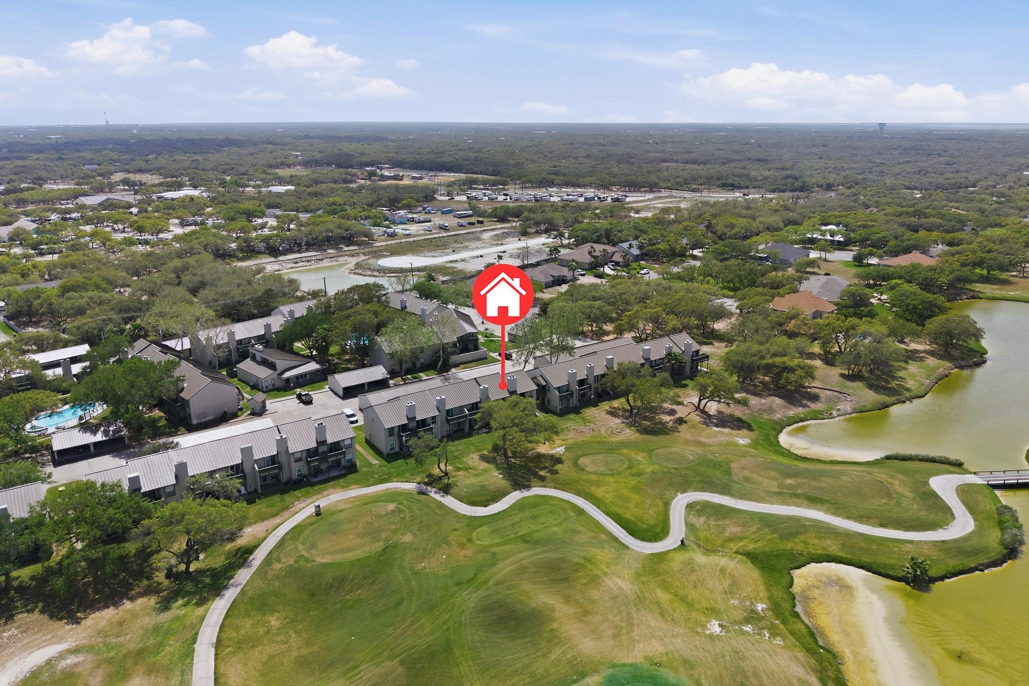 2-bedroom, 2-bath condo in the desirable Rockport Country Club community! This second-floor unit offers beautiful golf course and water views from a private balcony—perfect for relaxing mornings or evenings. The interior features an open layout with wood-look flooring, neutral tones, and a bright living and dining area. The kitchen includes a breakfast bar and ample cabinet space for everyday convenience. Both bedrooms are comfortably sized, with the primary suite offering added privacy. Covered parking and access to community amenities, including two pools, a clubhouse, and boat parking, add to the appeal. Conveniently located near shopping, dining, fishing, and coastal attractions in Rockport, this condo is ideal for full-time living, a weekend getaway, or investment.