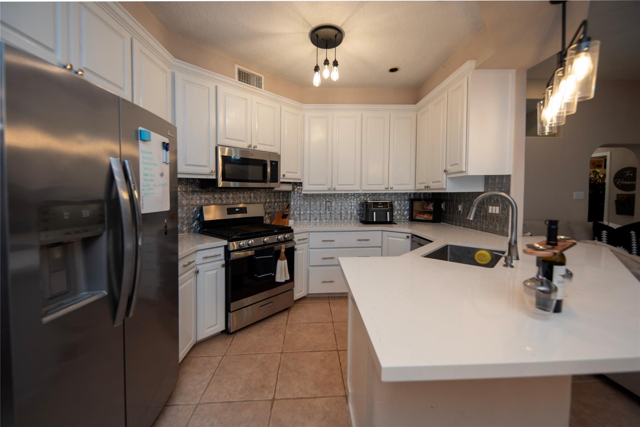 InteriorFloors:Laminate,Tile,WoodBathroom Description:Disabled Access,Primary Bath: Double Sinks,Primary Bath: Separate Shower,Primary Bath: Shower Only,Secondary Bath(s): Double Sinks,Secondary Bath(s): Tub/Shower Combo,Vanity AreaBedroom Desc:All Bedrooms Down,En-Suite Bath,Split Plan,Walk-In ClosetKitchen Desc:Breakfast Bar,Kitchen open to Family Room,PantryRoom Description:1 Living Area,Breakfast Room,Formal Dining,Gameroom Up,Garage Apartment,Guest Suite,Guest Suite w/Kitchen,Home Office/Study,Kitchen/Dining Combo,Living Area - 1st Floor,Living/Dining Combo,Quarters/Guest House,Utility Room in HouseHeating:Central ElectricCooling:Central ElectricConnections:Electric Dryer Connections,Washer ConnectionsDishwasher:YesDisposal:YesMicrowave:YesRange:Electric Range,Freestanding RangeOven:Electric Oven,Freestanding OvenEnergy Feature:Ceiling Fans,Digital Program ThermostatInterior:Disabled Access,Dry Bar,High Ceiling,Split Level,Water Softener - Owned,Window Coverings