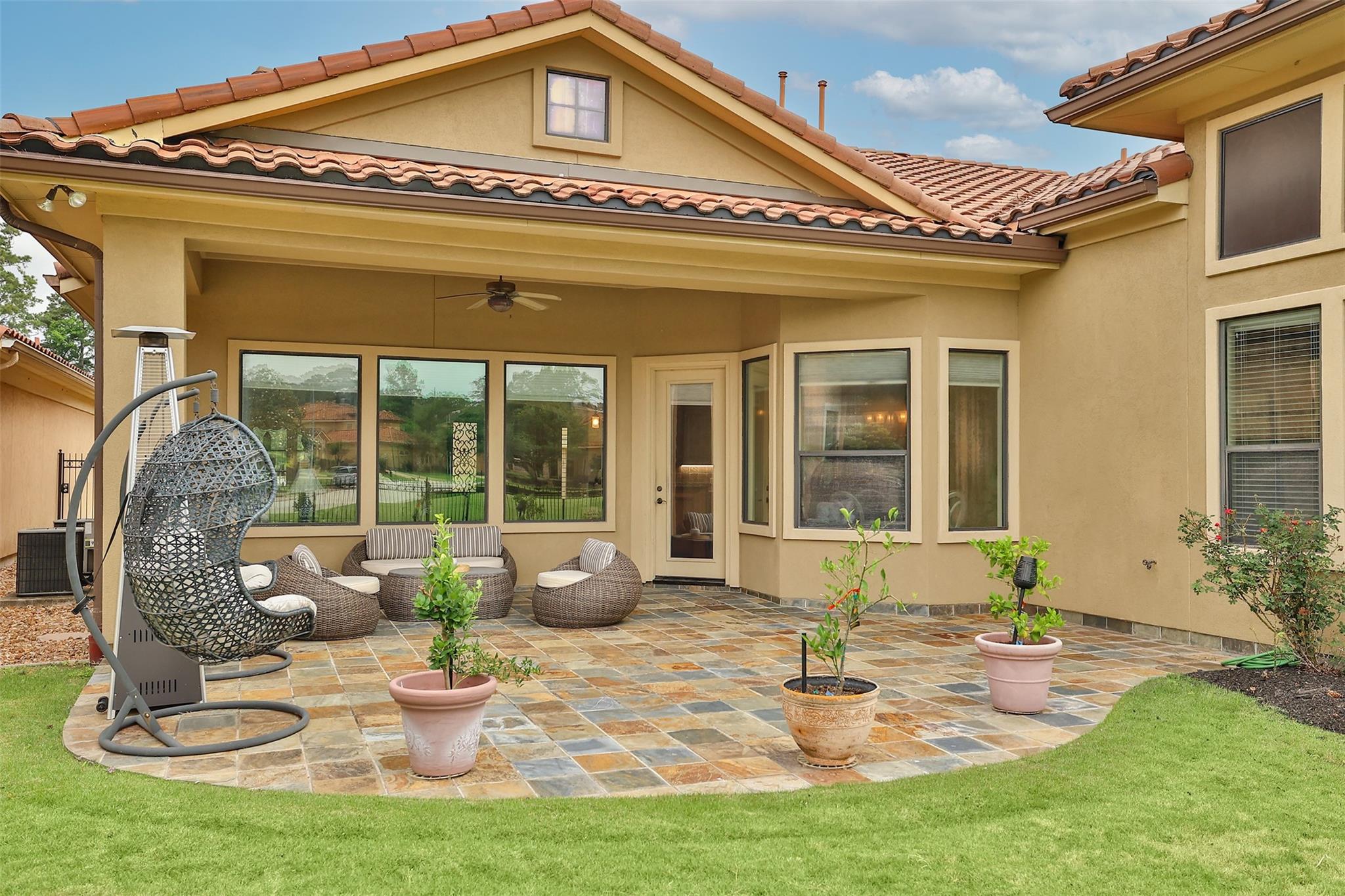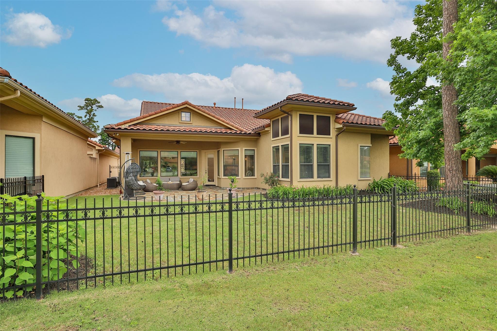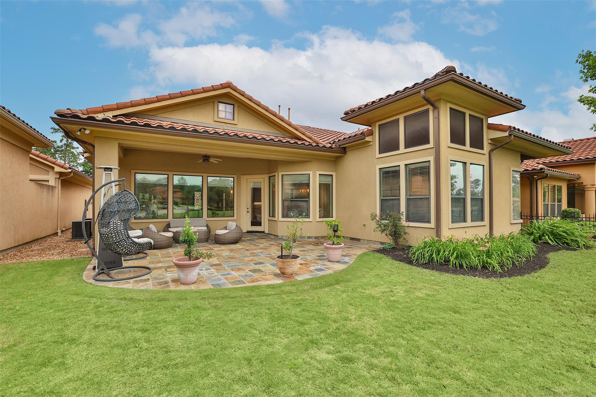 WELCOME HOME TO GRACIOUS GOLF COURSE LIVING IN THIS STUNNING MEDITERRANEAN VILLA*THIS METICULOUSLY MAINTAINED BEAUTY IS NESTLED IN THE PRIVATE GATED SEC OF NORTHGATE FOREST*ARCHITECTURAL DETAILS THROUGHOUT THIS MASTERPIECE PROPERTY COMPLIMENT THE OPEN CONCEPT & SOARING CEILINGS W ELEGANT TRAY DETAILING INVITE A FEELING OF SPACIOUSNESS*EXPANSE OF WINDOWS OFFERS BACKYARD VIEWS FROM EVERY ANGLE LOOKING OUT ONTO YOUR PRIVATE PATIO W VIEWS OF THE SERENE LAKE W FOUNTAIN, STATUARY & GREENBELT*ITALIAN TRAVERTINE FLOORING IS FOUND THROUGHOUT MOST OF THE MAIN LIVING AREAS W ENGINEERED WOOD IN THE PRIMARY BEDROOM AS WELL AS THE HOME OFFICE*THE CHEFS KITCHEN IS WELL APPOINTED W SS KITCHENAID APPLIANCES W A 5 BURNER GAS COOKTOP IN THE ISLAND, DOUBLE CONVECTION OVENS & A BUILT IN FRIDGE*UNDER CABINET LIGHTING MAKES MEAL PREP A BREEZE!THE AMPLE COVERED PATIO GIVES PLENTY OF SHADE W ITS CUSTOM SLATE FLOORING FOR EASY SUMMER ENJOYMENT*HOA COVERS ALL LAWN CARE SO ENJOY WEEKENDS PLAYING GOLF, NOT MOWING!