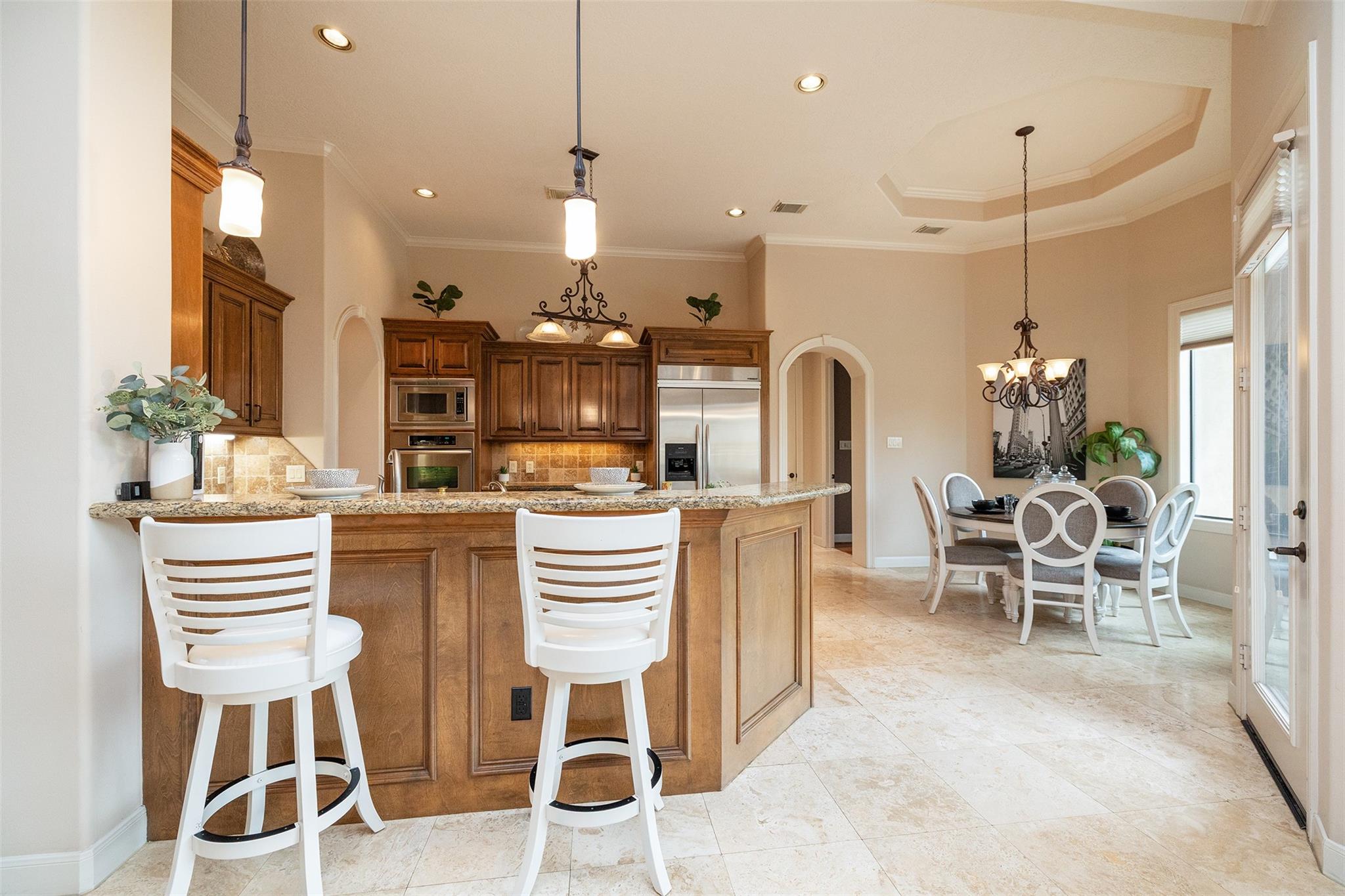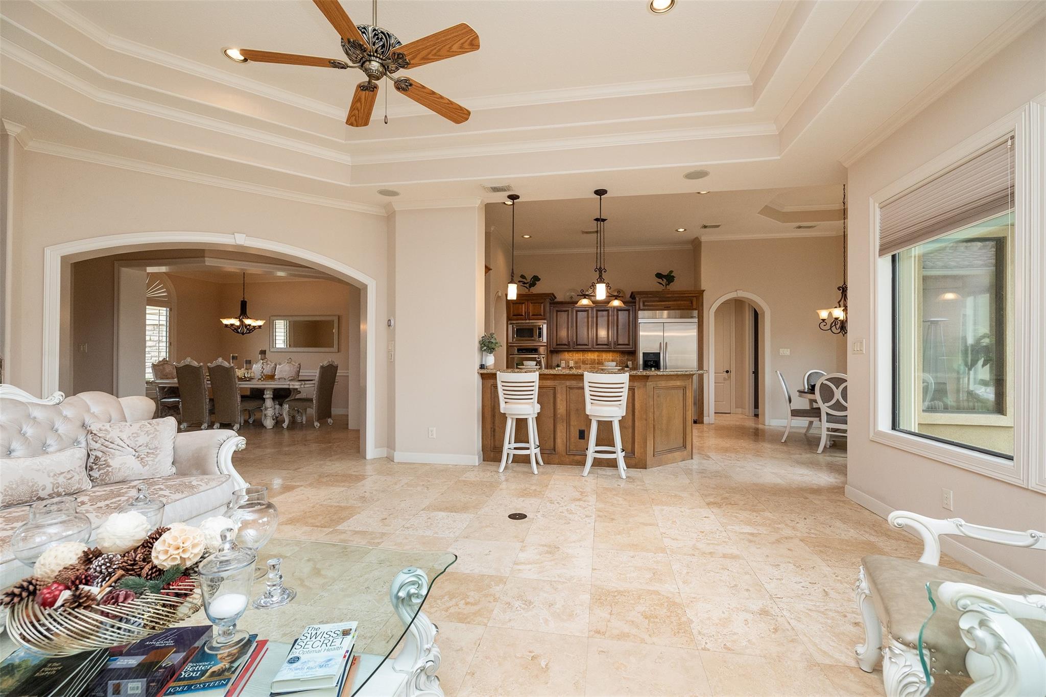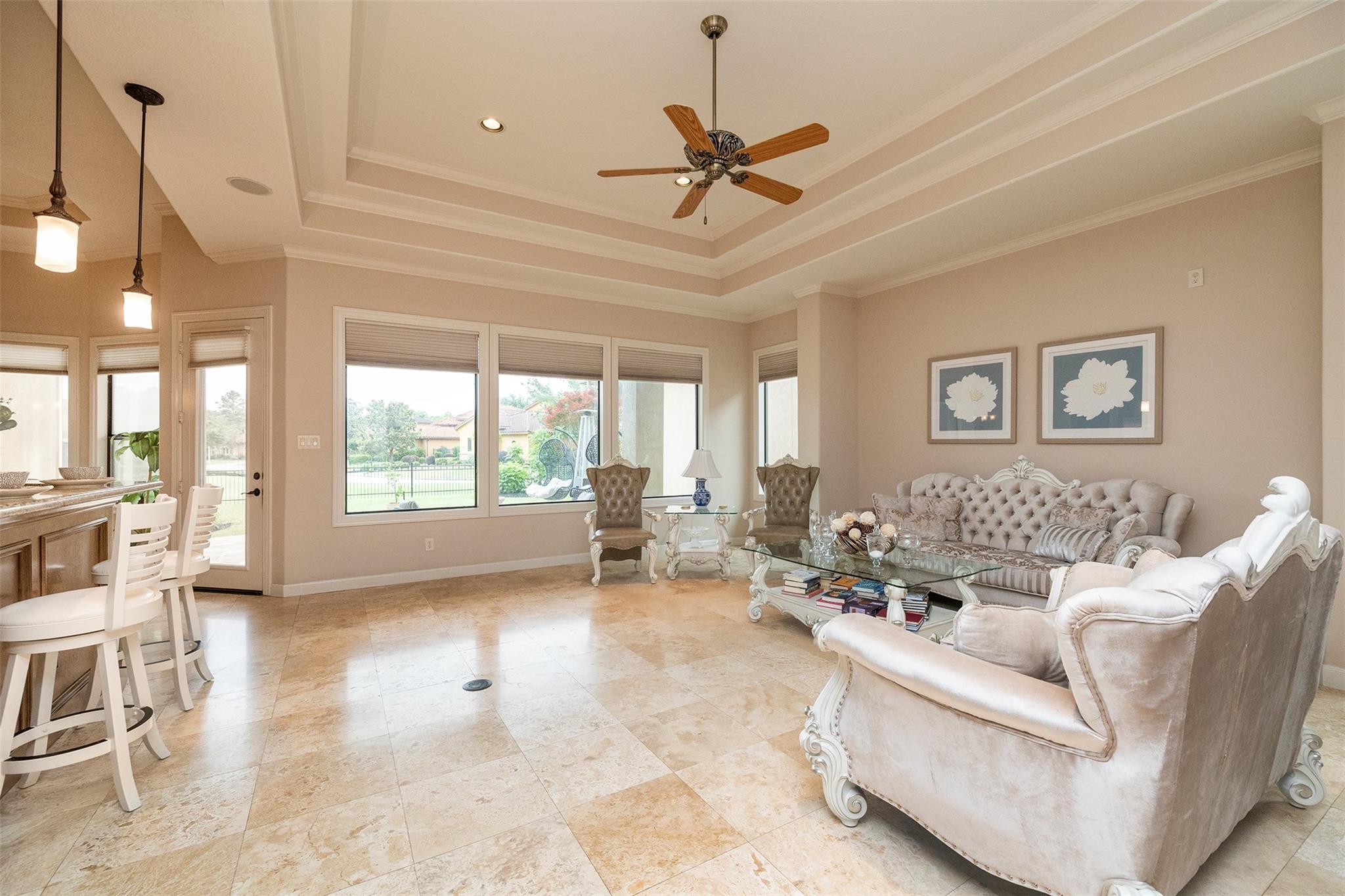 WELCOME HOME TO GRACIOUS GOLF COURSE LIVING IN THIS STUNNING MEDITERRANEAN VILLA*THIS METICULOUSLY MAINTAINED BEAUTY IS NESTLED IN THE PRIVATE GATED SEC OF NORTHGATE FOREST*ARCHITECTURAL DETAILS THROUGHOUT THIS MASTERPIECE PROPERTY COMPLIMENT THE OPEN CONCEPT & SOARING CEILINGS W ELEGANT TRAY DETAILING INVITE A FEELING OF SPACIOUSNESS*EXPANSE OF WINDOWS OFFERS BACKYARD VIEWS FROM EVERY ANGLE LOOKING OUT ONTO YOUR PRIVATE PATIO W VIEWS OF THE SERENE LAKE W FOUNTAIN, STATUARY & GREENBELT*ITALIAN TRAVERTINE FLOORING IS FOUND THROUGHOUT MOST OF THE MAIN LIVING AREAS W ENGINEERED WOOD IN THE PRIMARY BEDROOM AS WELL AS THE HOME OFFICE*THE CHEFS KITCHEN IS WELL APPOINTED W SS KITCHENAID APPLIANCES W A 5 BURNER GAS COOKTOP IN THE ISLAND, DOUBLE CONVECTION OVENS & A BUILT IN FRIDGE*UNDER CABINET LIGHTING MAKES MEAL PREP A BREEZE!THE AMPLE COVERED PATIO GIVES PLENTY OF SHADE W ITS CUSTOM SLATE FLOORING FOR EASY SUMMER ENJOYMENT*HOA COVERS ALL LAWN CARE SO ENJOY WEEKENDS PLAYING GOLF, NOT MOWING!