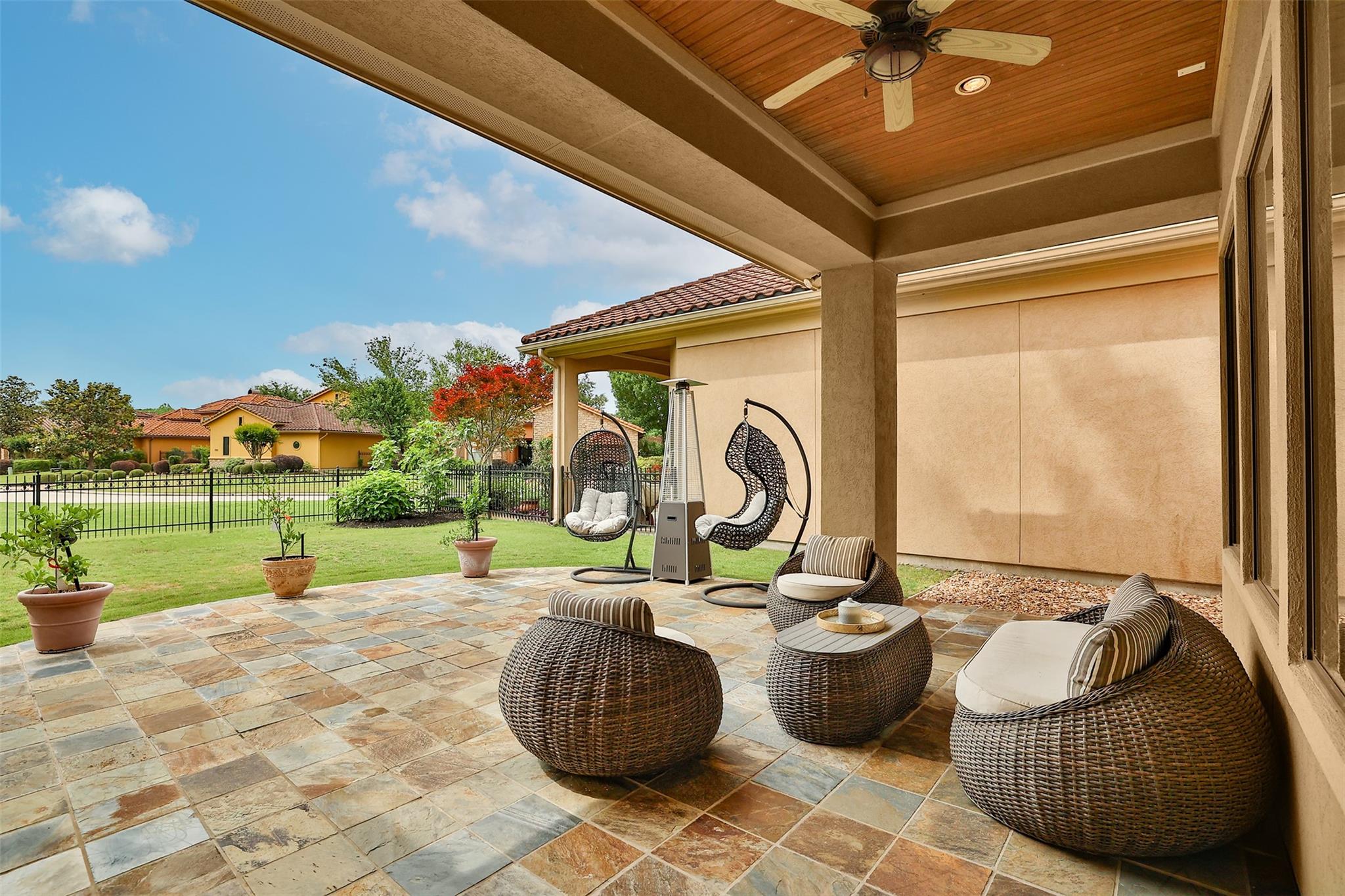 ExteriorRoof:TileFoundation:SlabPrivate Pool:NoExterior Type:Stone,StuccoLot Description:Greenbelt,In Golf Course Community,Subdivision Lot,Water ViewWater Amenity:Lake View,PondGarage Carport:Additional Parking,Auto Garage Door Opener,Golf Cart GarageAccess:Automatic GateWater Sewer:Water DistrictArea Pool:YesExterior:Back Green Space,Back Yard Fenced,Controlled Subdivision Access,Covered Patio/Deck,Exterior Gas Connection,Fully Fenced,Side Yard,Sprinkler System