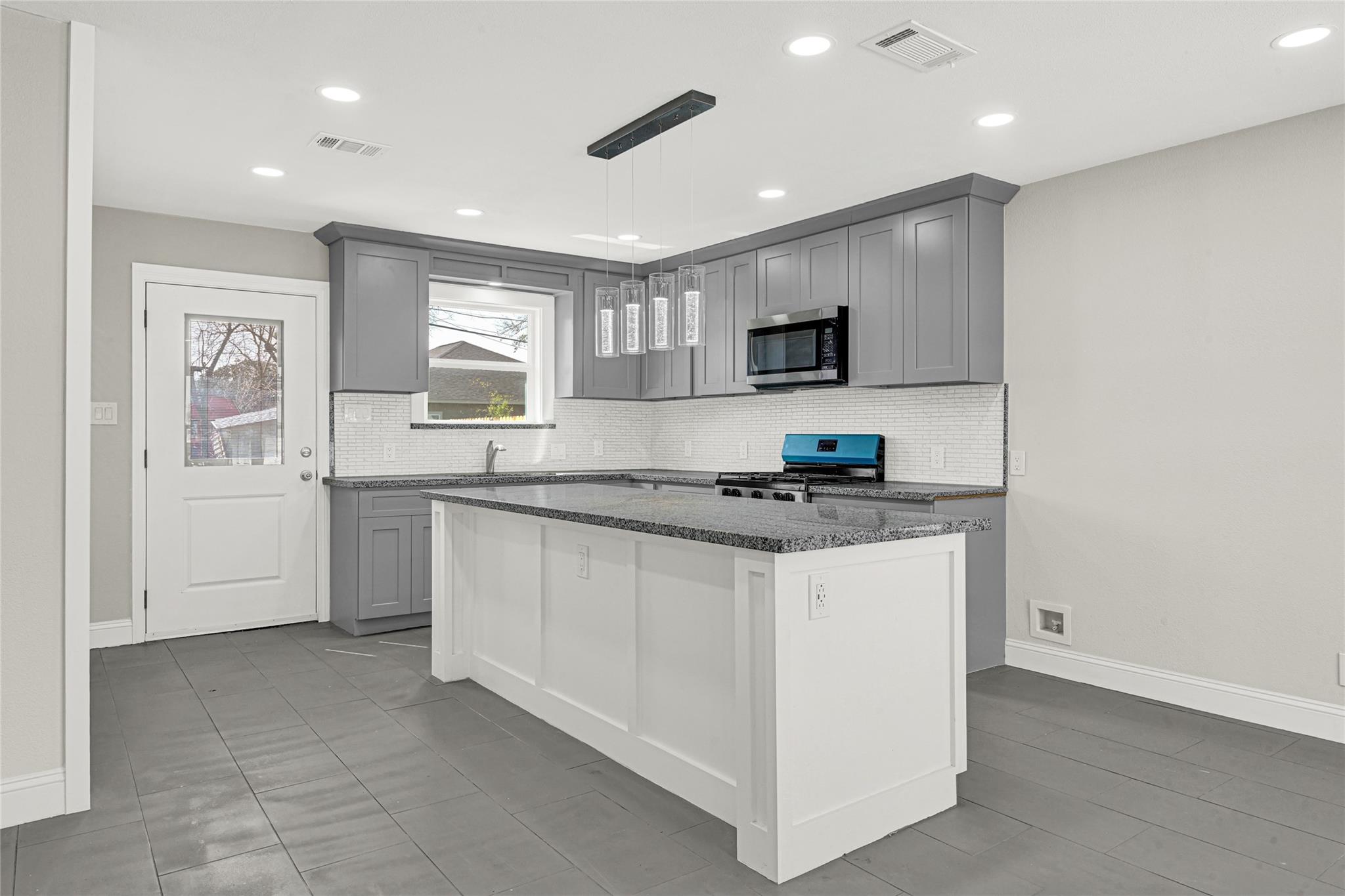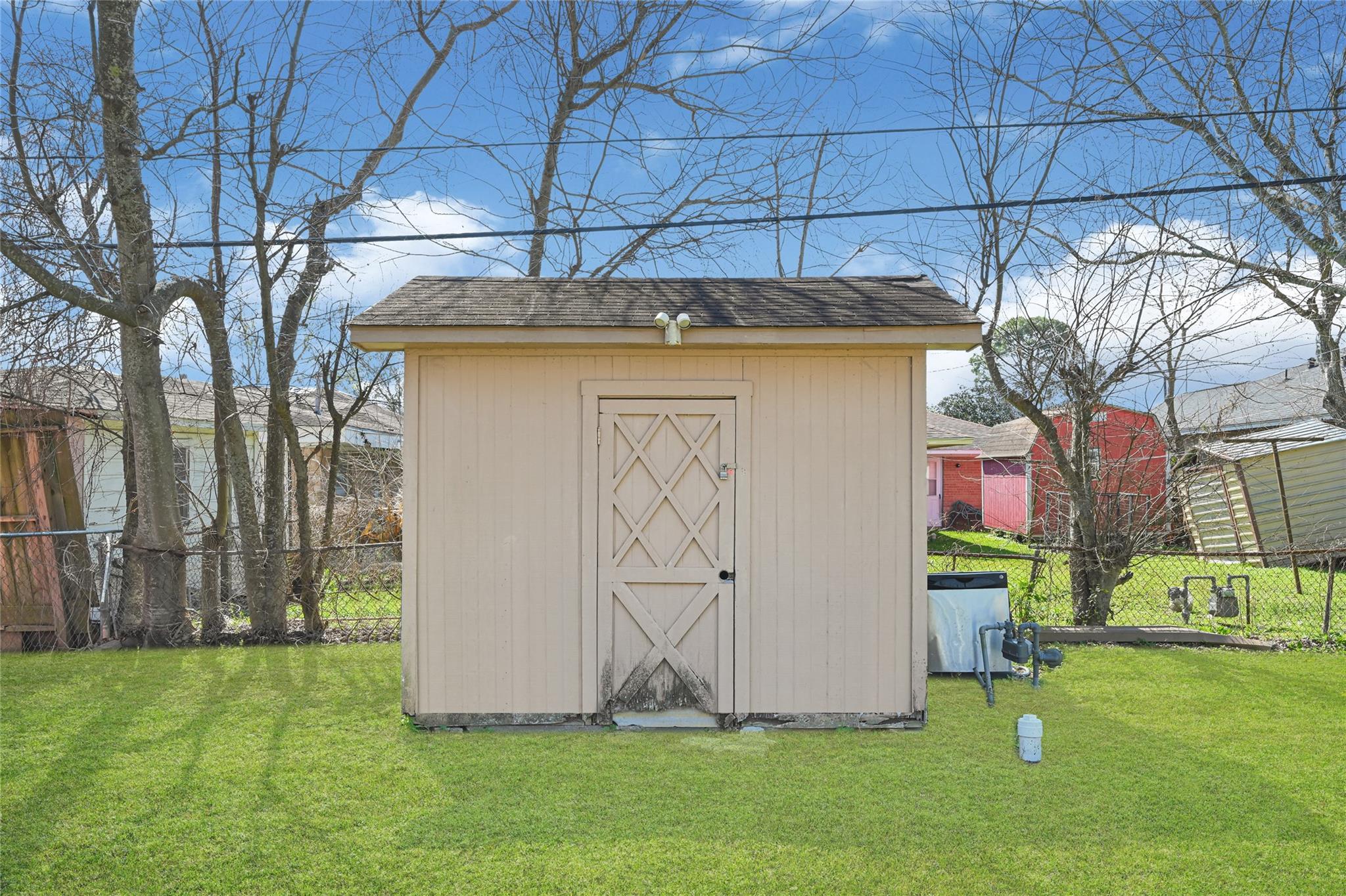 Completely remodeled, this move-in ready 3-bedroom, 2-bath home blends charm with modern style. Originally a 3-bedroom, 1-bath, a full second bathroom has been thoughtfully added to enhance functionality and value. Fresh paint, updated flooring, modern lighting, and stylish fixtures create a bright, welcoming feel throughout. The eat-in kitchen has been fully updated with refreshed cabinetry, countertops, and ample space for everyday dining. The living room flows into a versatile bonus space ideal for a formal dining room, game room, office, or additional sitting area. The spacious laundry room offers excellent workspace and includes an extra closet for added storage. Outside, a backyard storage building provides space for tools and equipment. With updates throughout the entire home, this property is truly turnkey. Measurements are approximate.