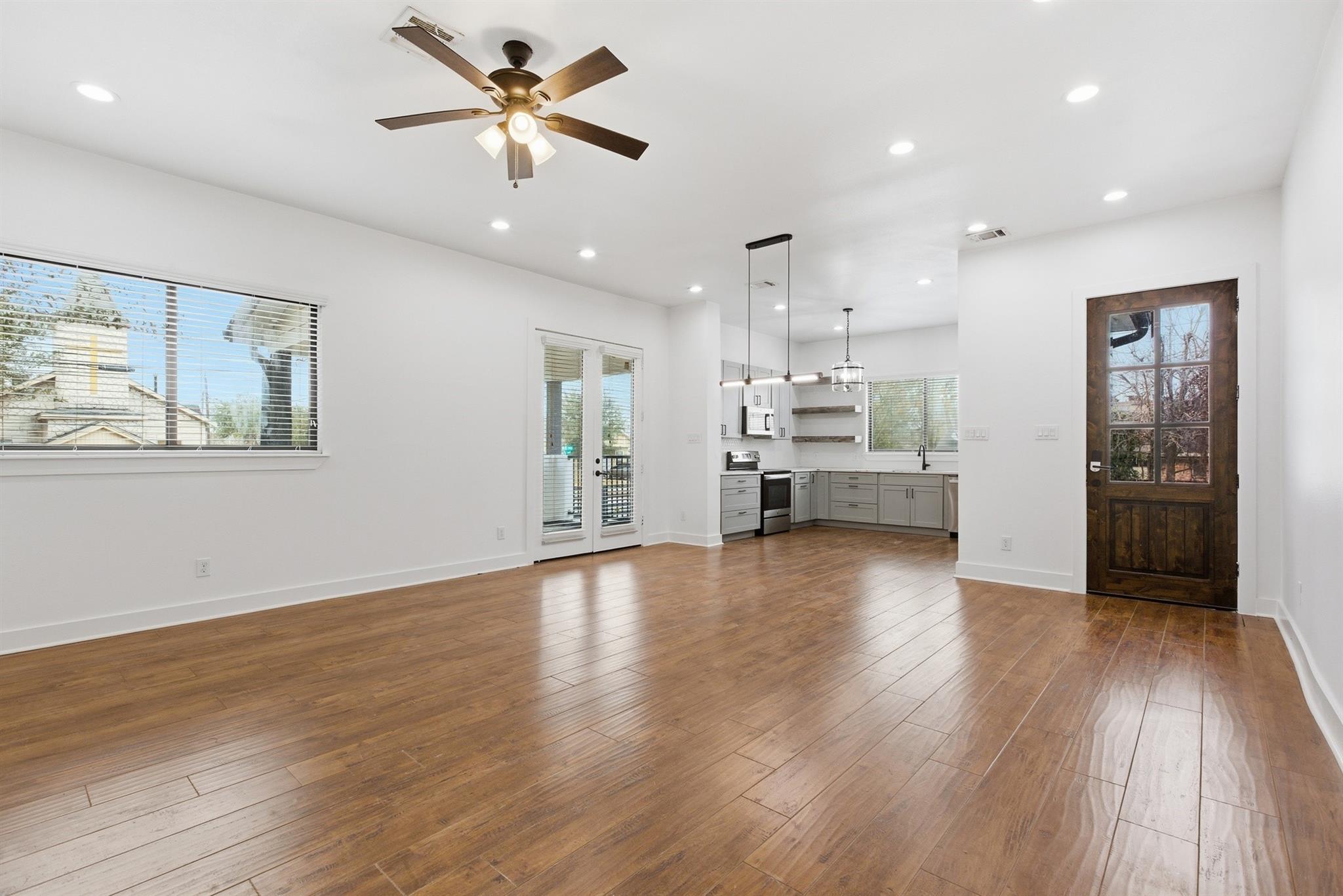 Modern duplex opportunity in a growing Houston location! This duplex offer a well-designed two-story layout with contemporary finishes and strong income potential. Each unit features open-concept living and dining areas, stylish wood-look flooring, recessed lighting, and abundant natural light. The kitchens are equipped with sleek cabinetry, quartz-style countertops, stainless steel appliances, and open shelving. Spacious bedrooms include ceiling fans and generous closet space, while updated bathrooms showcase modern fixtures and clean design. Private covered balconies and fenced outdoor areas provide added comfort and functionality. Attached garages and extended driveways offer convenient parking. Conveniently located near Downtown, major highways, dining, and entertainment. This property is perfect for investors or buyers seeking a versatile multi-family opportunity.