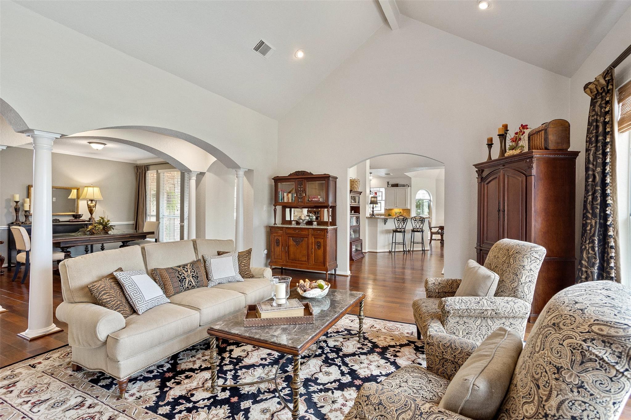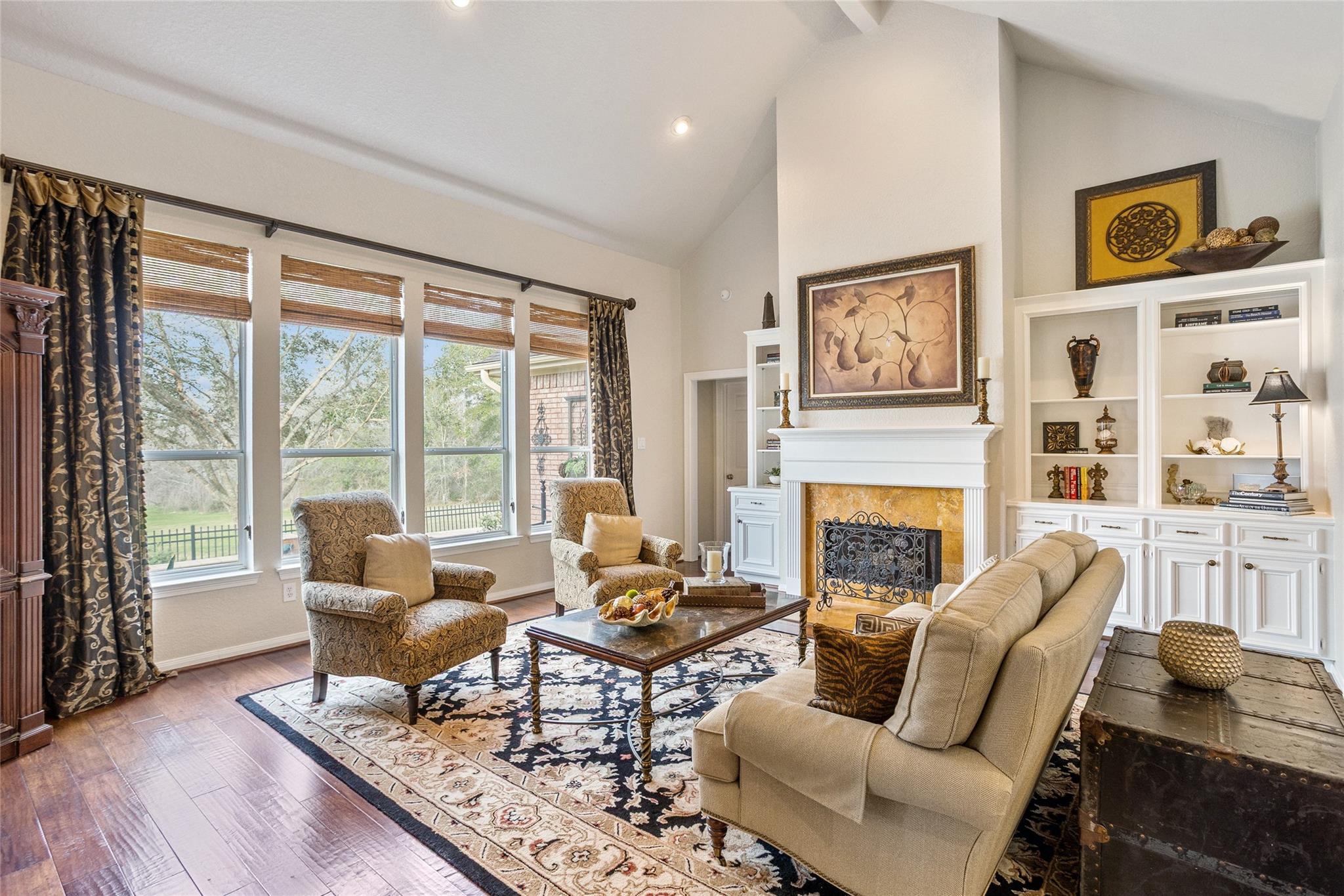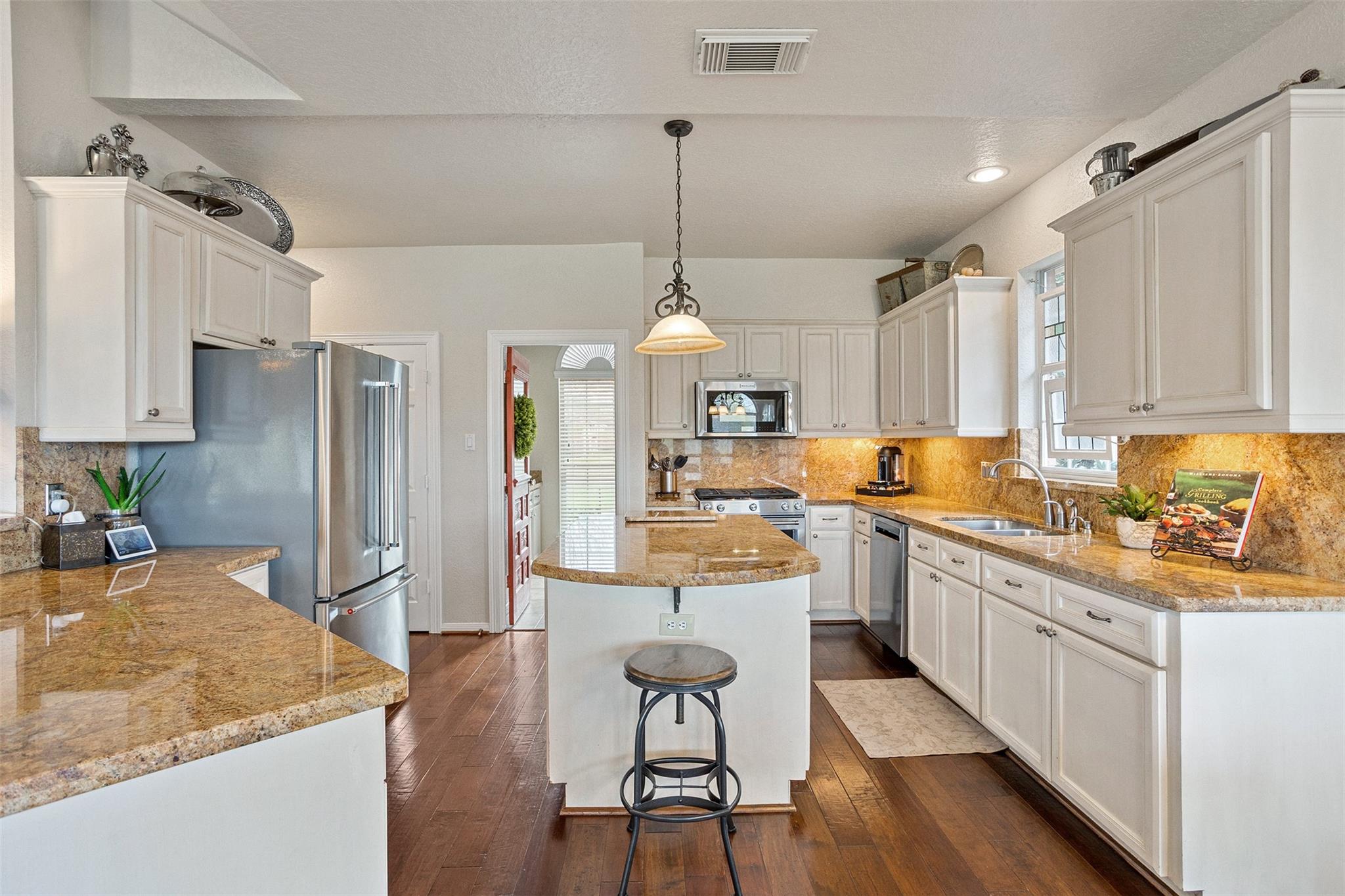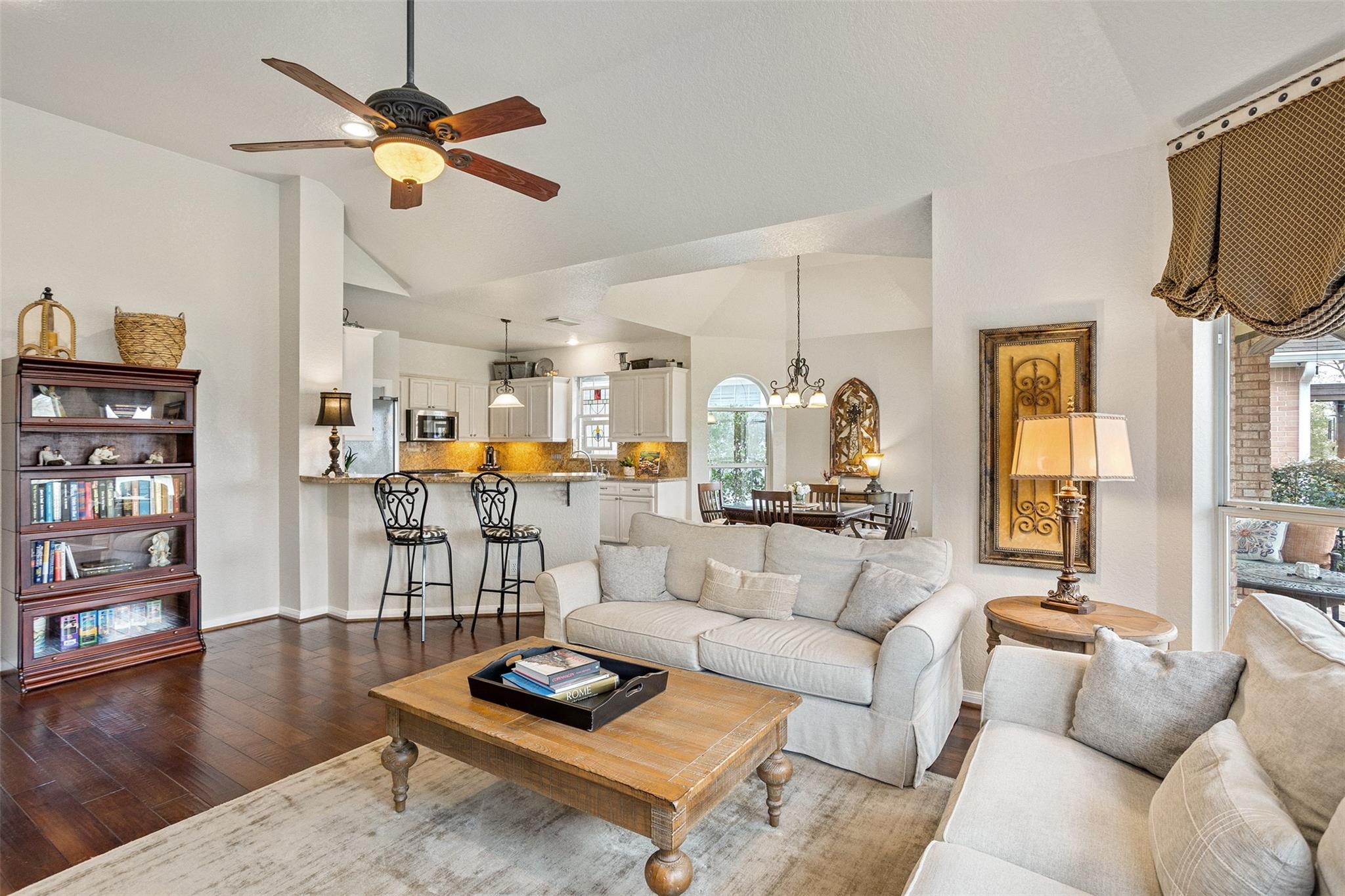 InteriorFireplace:1/Gas Connections,Gaslog FireplaceFloors:WoodCountertop:GraniteBathroom Description:Primary Bath: Double Sinks,Primary Bath: Shower Only,Secondary Bath(s): Double SinksBedroom Desc:1 Bedroom Up,Primary Bed - 1st Floor,Walk-In ClosetKitchen Desc:Butler PantryRoom Description:Breakfast Room,Family Room,Formal Dining,Formal Living,Gameroom UpHeating:Central GasCooling:Central ElectricConnections:Electric Dryer Connections,Gas Dryer Connections,Washer ConnectionsDishwasher:YesDisposal:YesMicrowave:YesRange:Gas CooktopOven:Gas OvenEnergy Feature:Ceiling Fans,Digital Program Thermostat,High-Efficiency HVAC,HVAC>13 SEERInterior:Alarm System - Owned,Fire/Smoke Alarm,High Ceiling,Refrigerator Included,Window Coverings