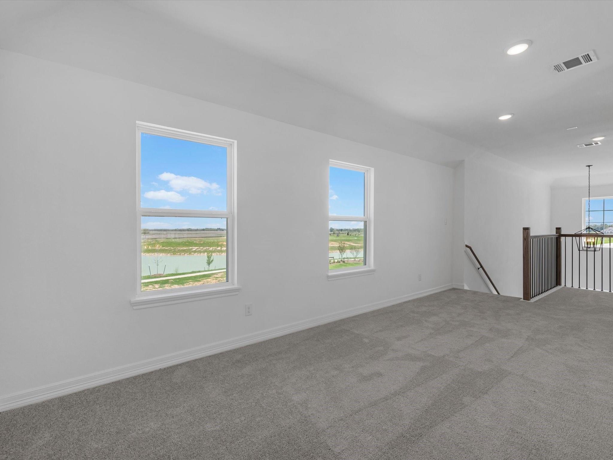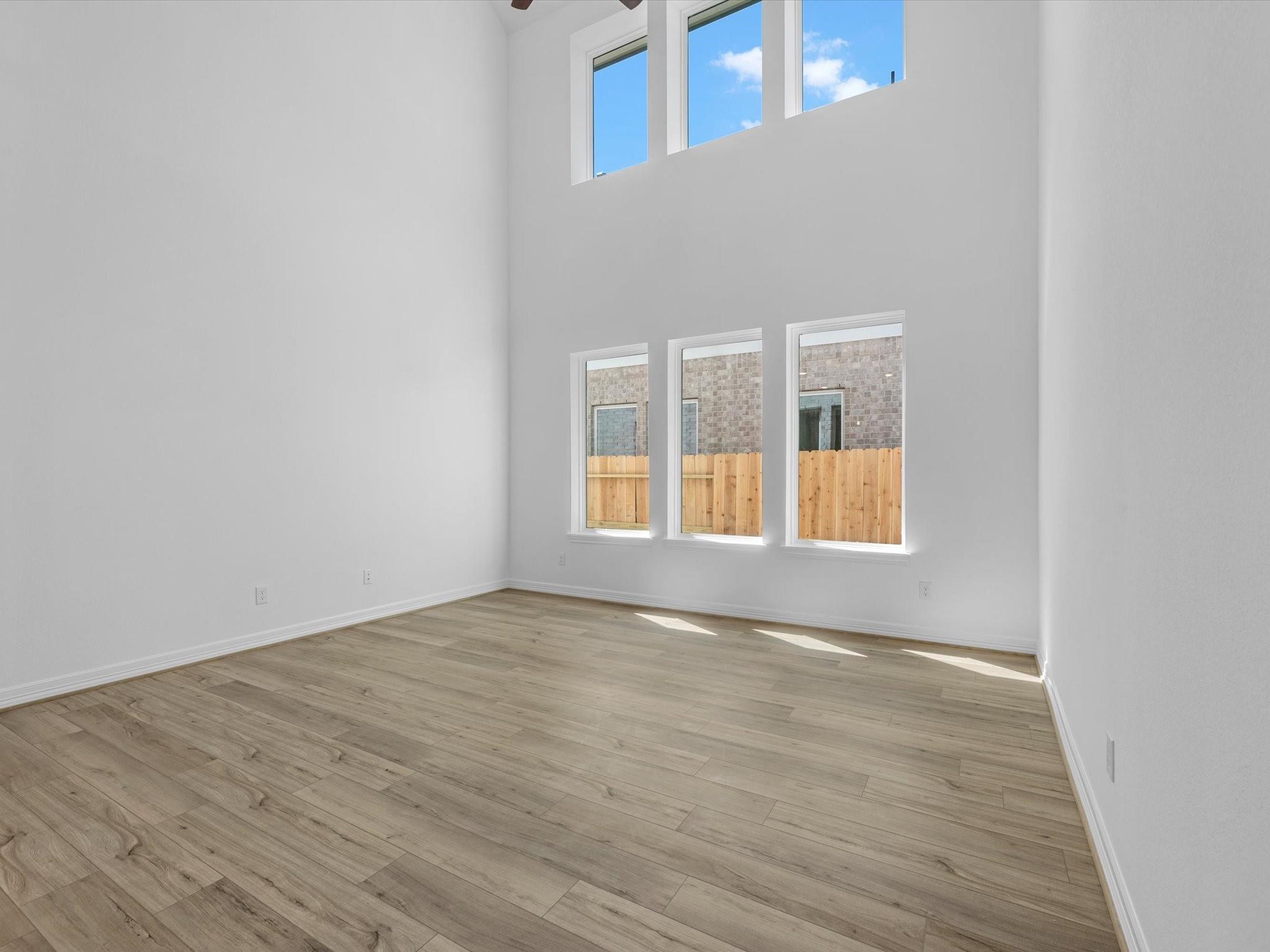 The Magnolia plan is a 4-bedroom, 3-bathroom two-story residence combining everyday functionality with charm. It features a two-story family room with soaring ceilings effortlessly connecting to the open kitchen and generous walk-in pantry. The first-floor primary suite includes a private bath with an enclosed glass-framed shower. A main-floor guest room adds convenience, while two upstairs bedrooms share a bath alongside a versatile loft overlooking the family room below. This home features the Serene Collection, blending muted earth tones and natural textures to create interiors that breathe. Located in Wildrye by Starwood Land in Waller, TX, this master-planned community offers over 130 acres of green space, a recreation center, a resort-style pool, a dog park, and scenic walking trails.