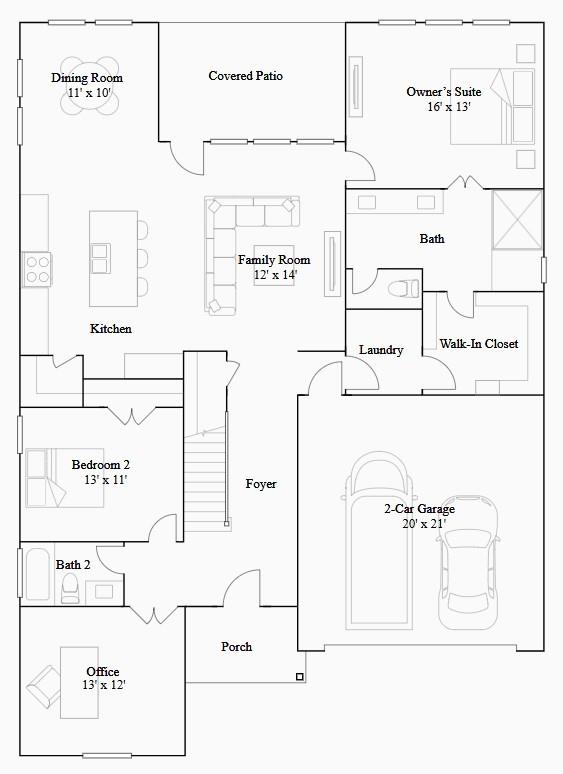 First FloorFamily Room:12x14Dining:11x10Kitchen:13x16Primary Bedroom:16x13Bedroom:13x11Home Office/Study:13x12