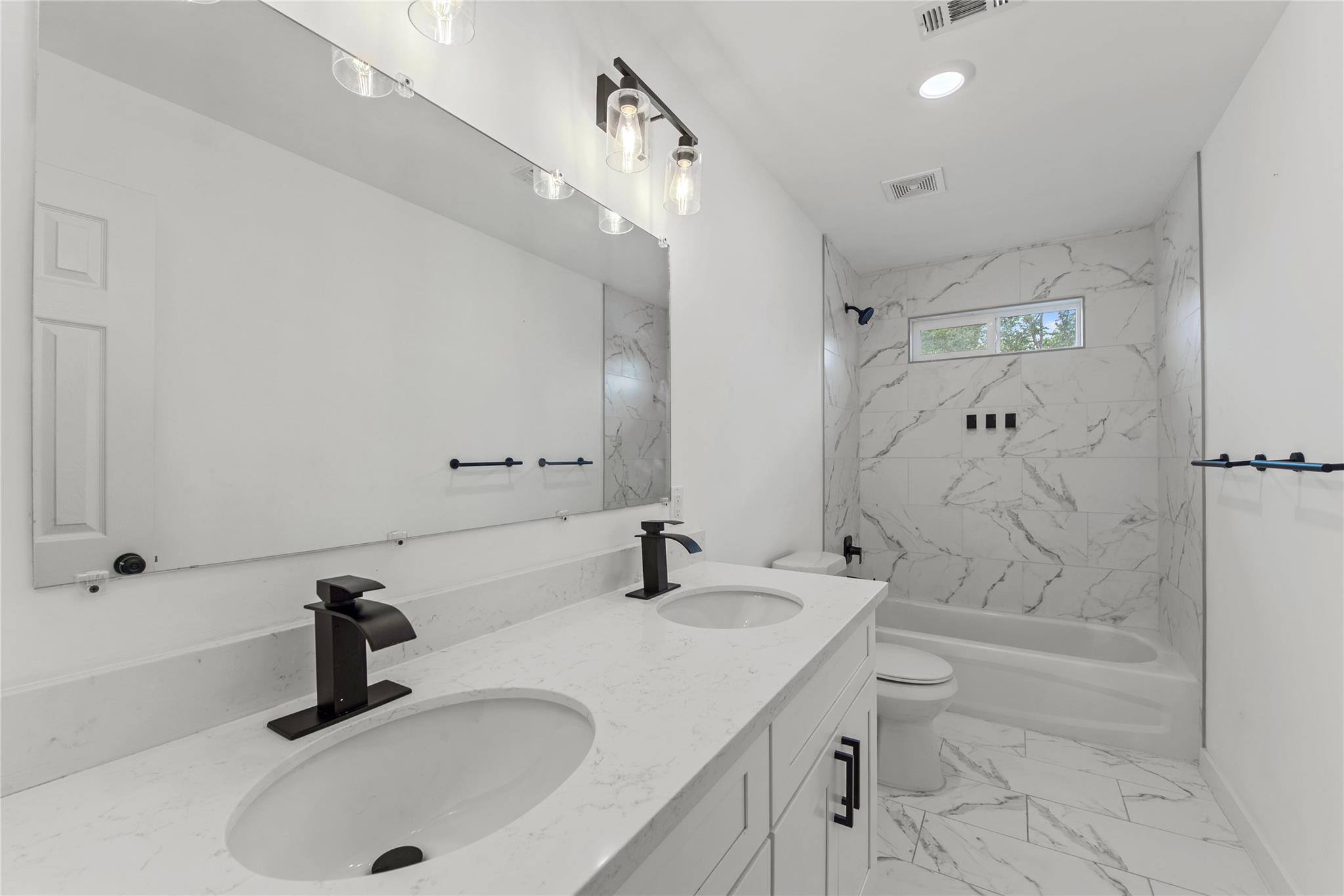 Welcome to 8211 Barlow Street—a newly constructed duplex that seamlessly blends contemporary design with functional living. Located in the rapidly developing Settegast neighborhood, this property offers both comfort and convenience, just minutes from Downtown Houston. Spacious Layout: Each of the two units boasts 3 bedrooms and 2.5 bathrooms, providing ample space for families or tenants. Modern Finishes: Enjoy luxury vinyl flooring, quartz countertops, and stainless-steel appliances that add a touch of elegance to every room. Open-Concept Design: The 1,190 sq ft per unit layout promotes a seamless flow between living, dining, and kitchen areas, perfect for entertaining or everyday living. Energy Efficiency: Equipped with central electric heating and cooling systems to ensure year-round comfort.
