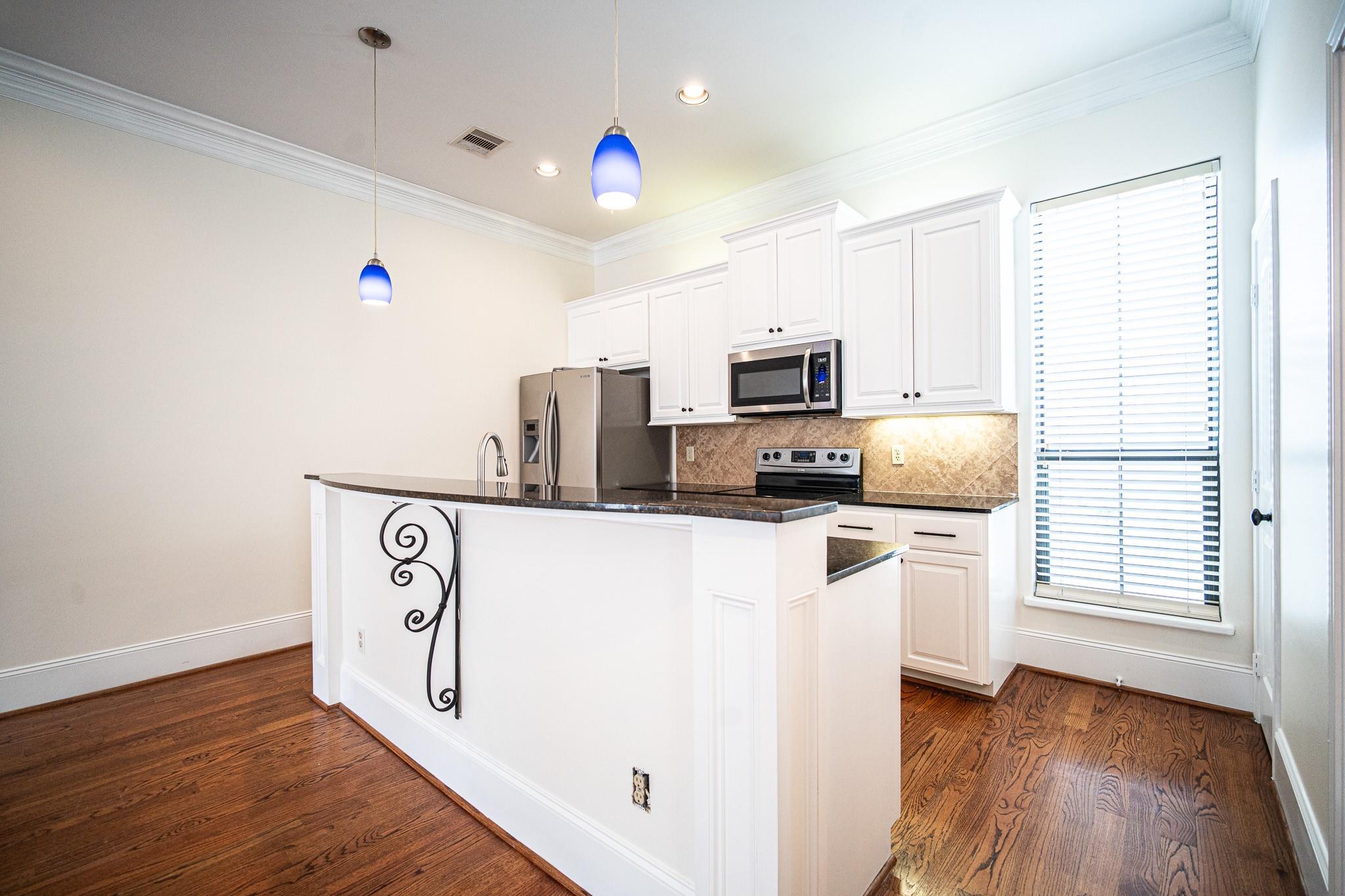 Experience modern comfort in this recently refreshed 3-story, 2-bedroom, 2.5-bathroom townhome located in a secure gated complex, Galleria area. Featuring fresh paint & recent flooring, it boasts a convenient full-sized washer & dryer on the first floor. Second floor showcases modern vinyl flooring, a well-appointed kitchen with granite countertops, large breakfast bar, stainless steel appliances,4 burner gas range & a generously sized living room flooded w natural light. Balcony off the living area with room for sitting. On third floor, discover a second bedroom with an ensuite bath and a master bedroom complete with a spacious walk-in closet & tub/shower. Enjoy the convenience of proximity to all amenities, making this townhome an ideal & inviting living space. Single car garage & tandem with open carport. Green Space to the left of the front door close to the pedestrian gate