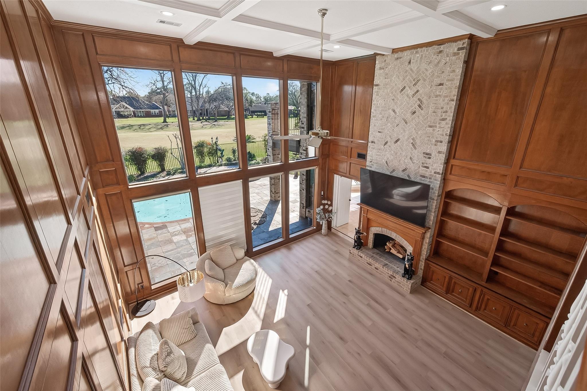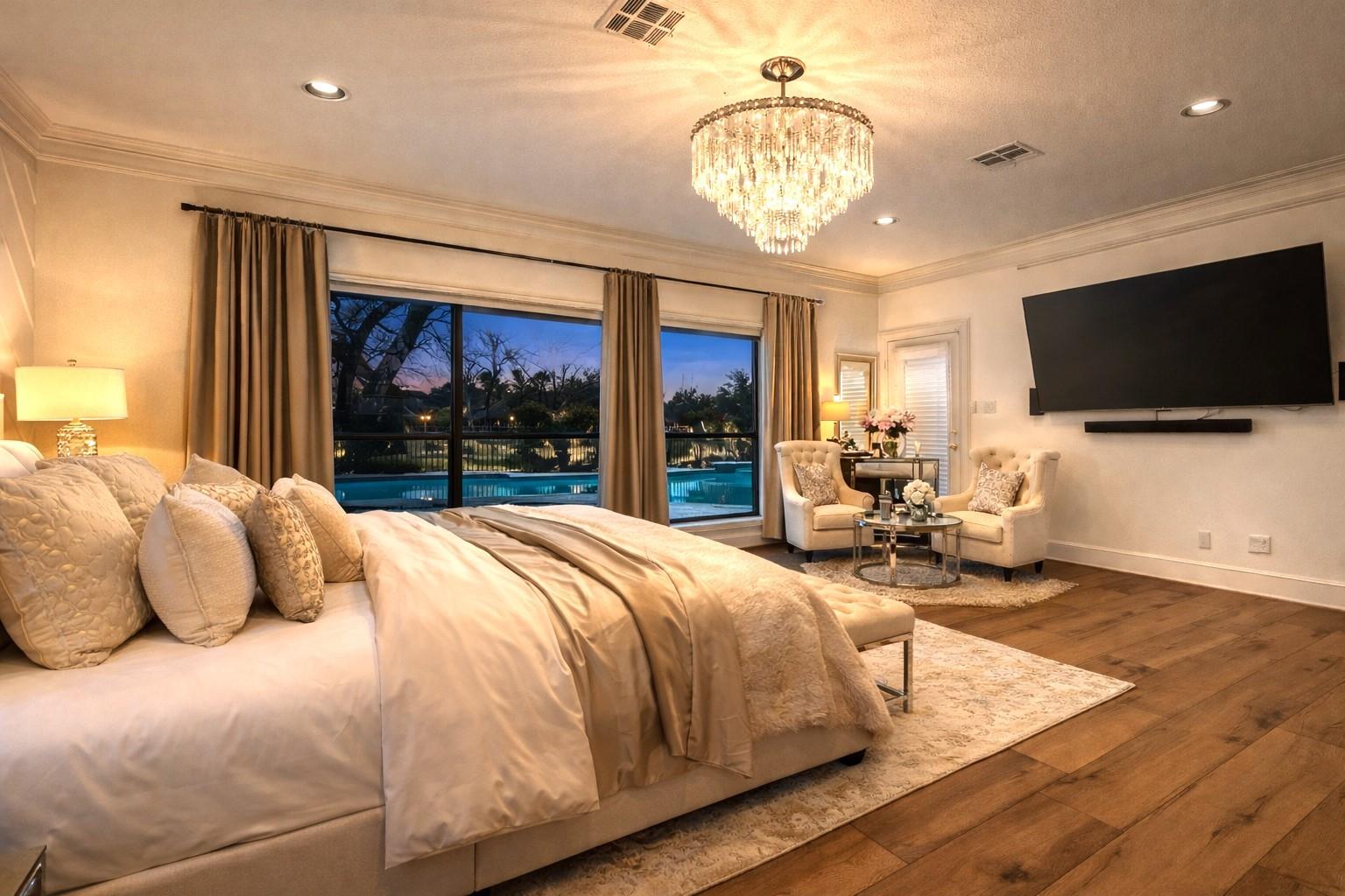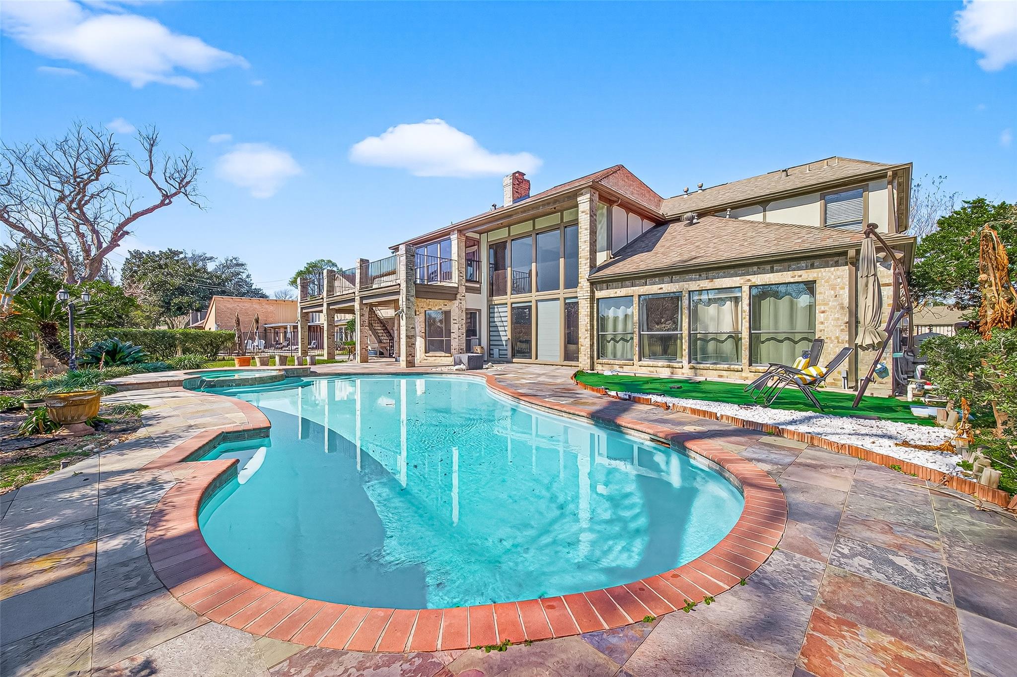 Brick two-story home in highly sought-after Quail Valley, located on the 3rd hole of the Quail Valley El Dorado Golf Course. Resort-style backyard with heated pool, jacuzzi, upgraded sauna, BBQ area, and upstairs patio deck overlooking the golf course. Spacious layout with downstairs primary suite and large bath with private sauna. Chef’s kitchen features two oversized islands, granite counters, white & gold brick backsplash, gas cooktop, double ovens, stainless appliances, and refrigerator. UPGRADED: 2023 upgrades include flooring, kitchen, sauna room, hidden terrace room electric panel system, and two water filtration systems. Parking for up to 7 cars. HVACs: 3 tons AC replaced in 07/23 and ones replaced in 2020. 3 water heaters were replaced in the following years: 2022, 05/2024, and 01/2026, proof was replaced in 2021.