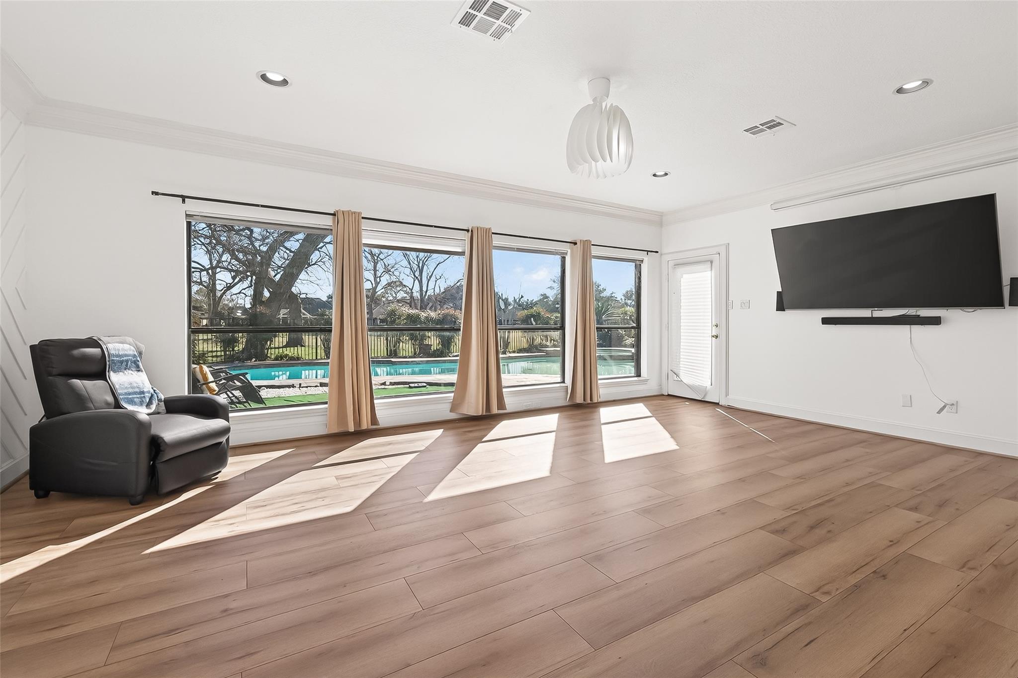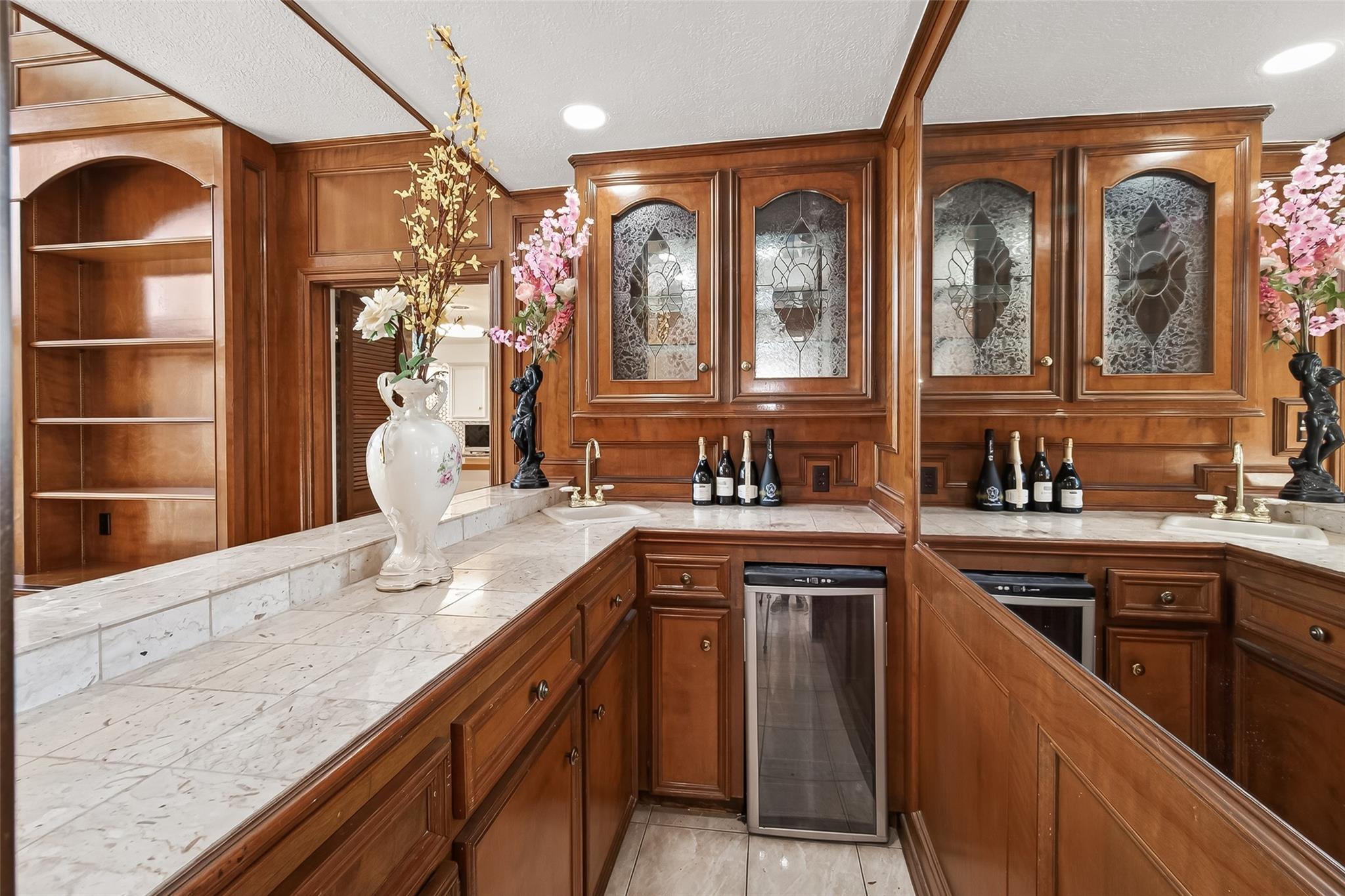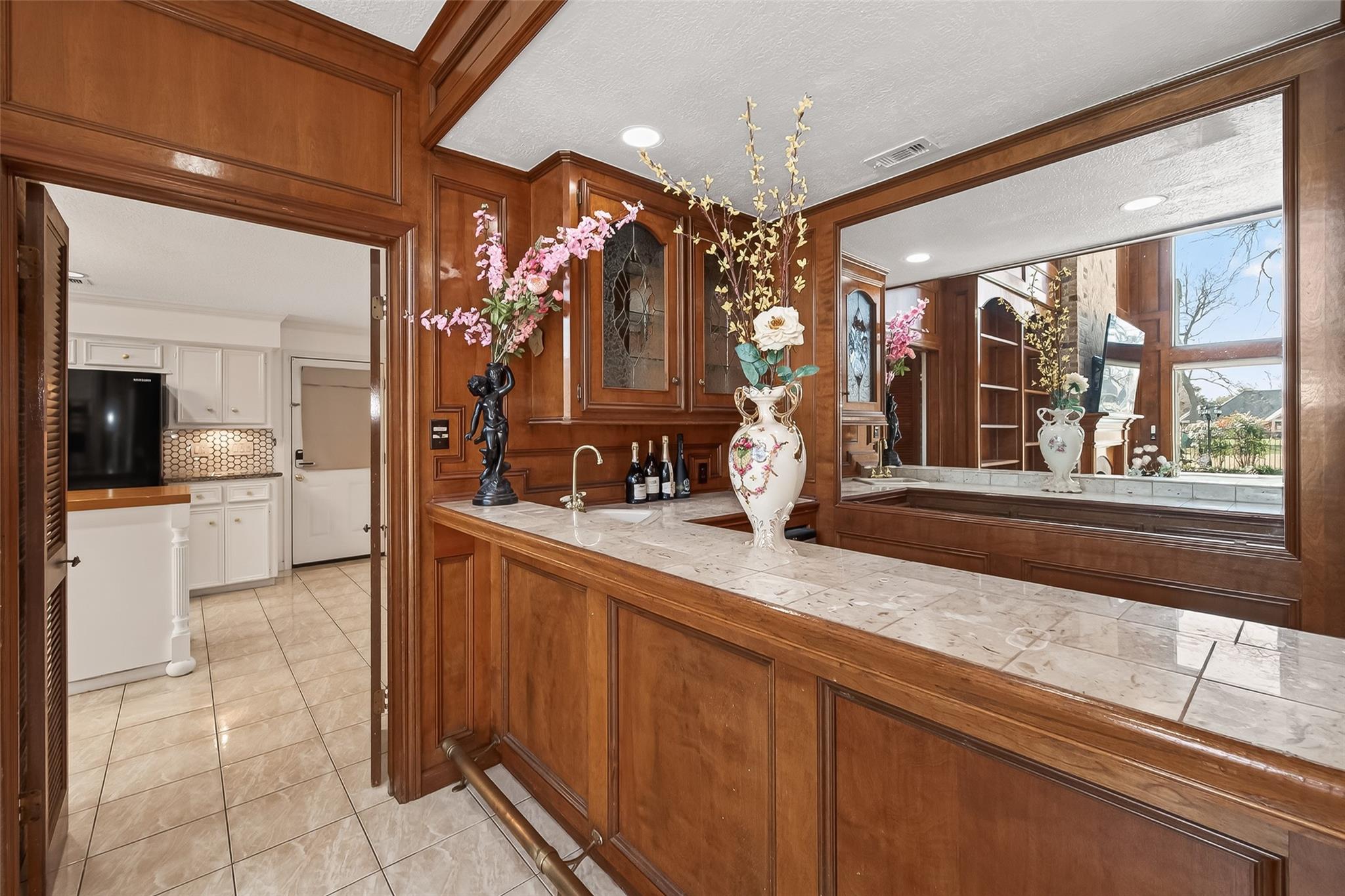 Brick two-story home in highly sought-after Quail Valley, located on the 3rd hole of the Quail Valley El Dorado Golf Course. Resort-style backyard with heated pool, jacuzzi, upgraded sauna, BBQ area, and upstairs patio deck overlooking the golf course. Spacious layout with downstairs primary suite and large bath with private sauna. Chef’s kitchen features two oversized islands, granite counters, white & gold brick backsplash, gas cooktop, double ovens, stainless appliances, and refrigerator. UPGRADED: 2023 upgrades include flooring, kitchen, sauna room, hidden terrace room electric panel system, and two water filtration systems. Parking for up to 7 cars. HVACs: 3 tons AC replaced in 07/23 and ones replaced in 2020. 3 water heaters were replaced in the following years: 2022, 05/2024, and 01/2026, proof was replaced in 2021.