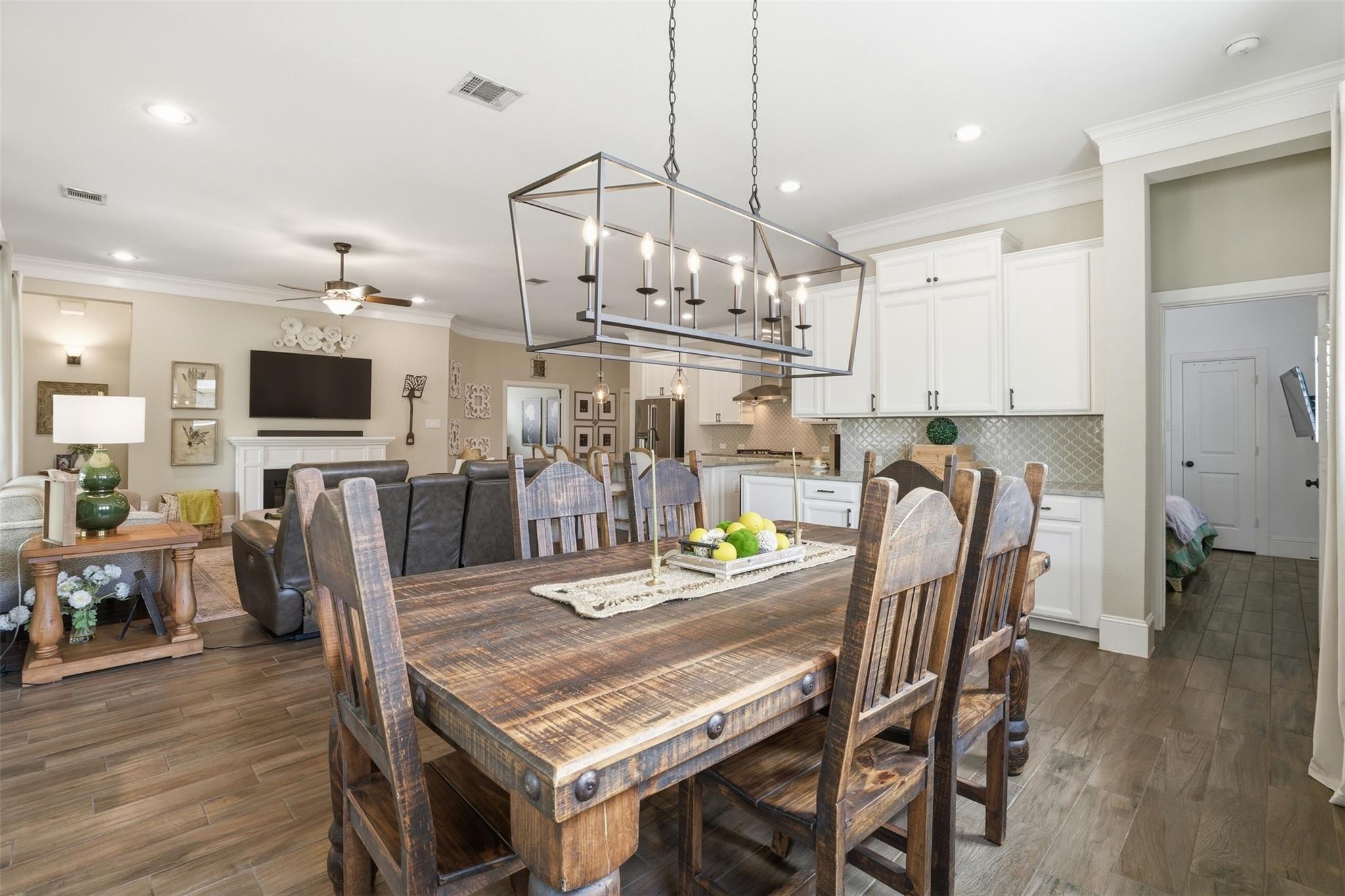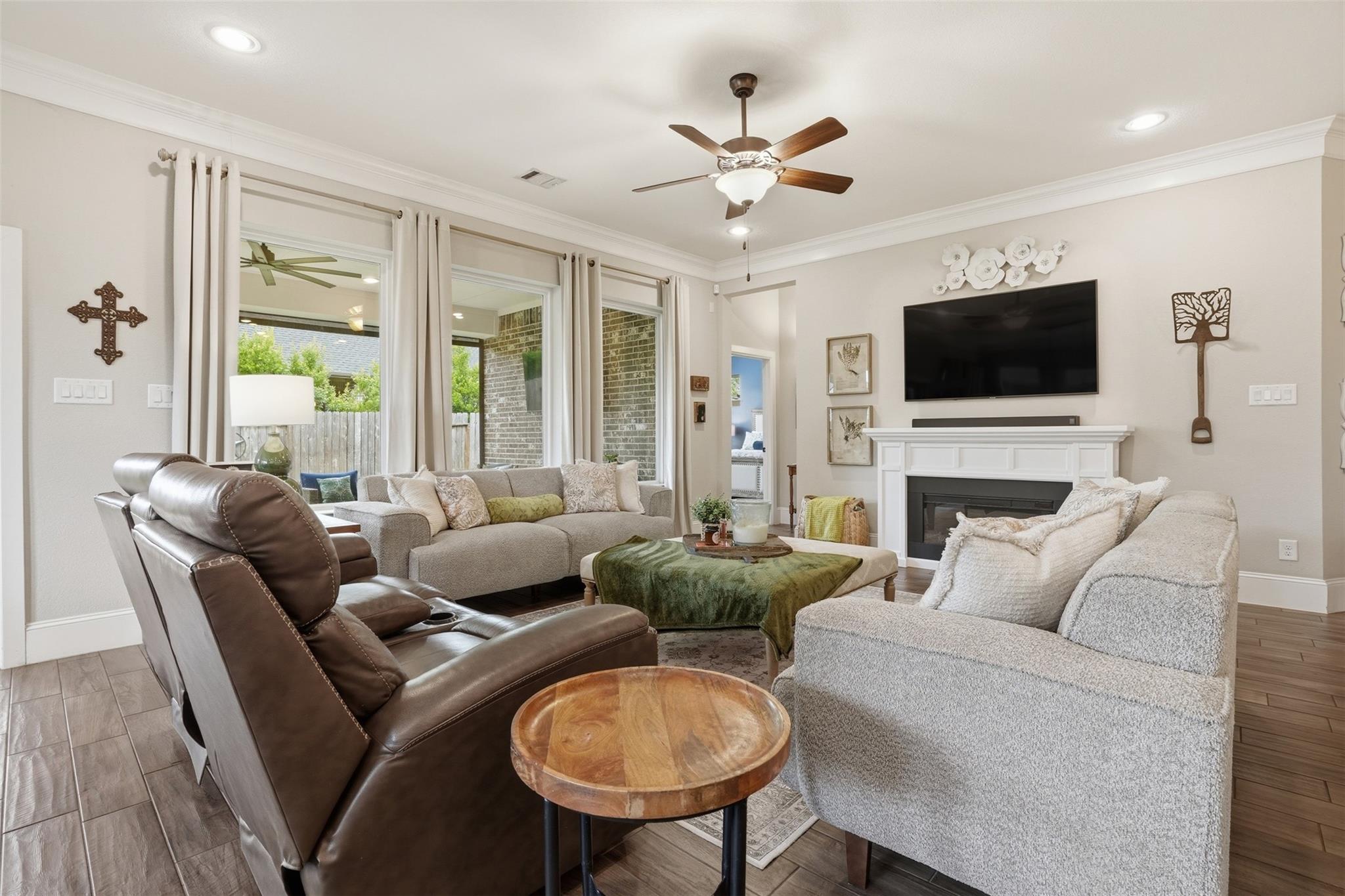 Beautiful 4-bedroom, 3.5-bath home in The Falls of Imperial Oaks featuring an open-concept layout with kitchen overlooking the living room. The kitchen includes a large island, farmhouse sink, wine and beverage refrigerator, and GE Café stainless steel appliances with a 6-burner gas cooktop. Upstairs offers a spacious game room perfect for entertaining or relaxing. Enjoy outdoor living on the covered patio with a motorized screen and low-maintenance turf backyard. Additional upgrades include a 3-car garage with professionally installed overhead storage and the home is gas and electric generator ready. A perfect blend of comfort, style, and functionality in a highly desirable community.