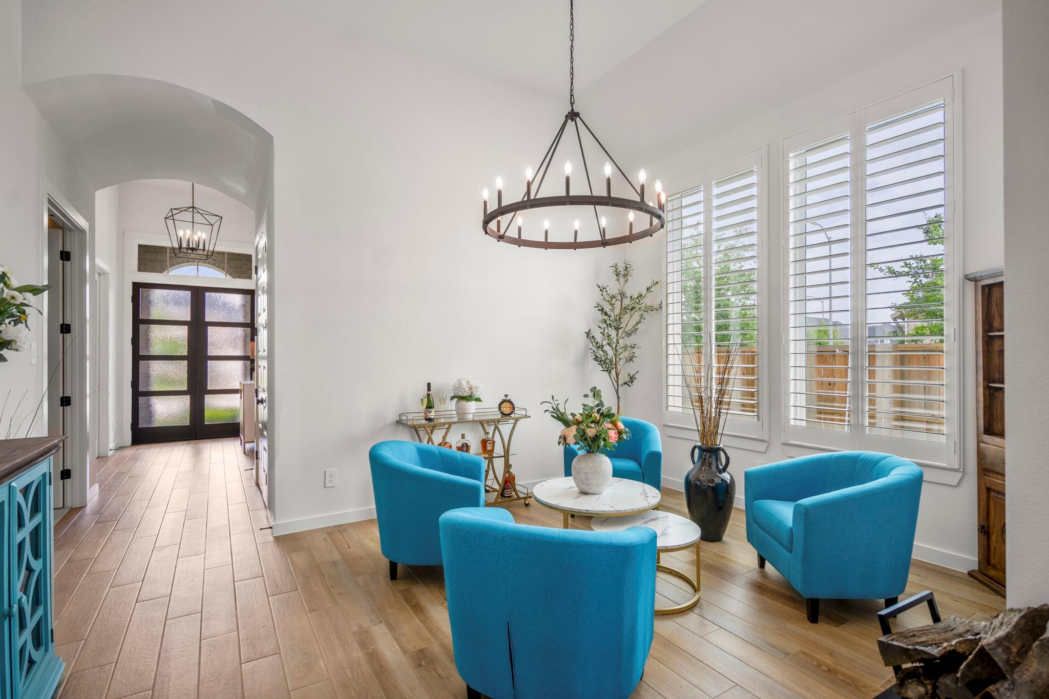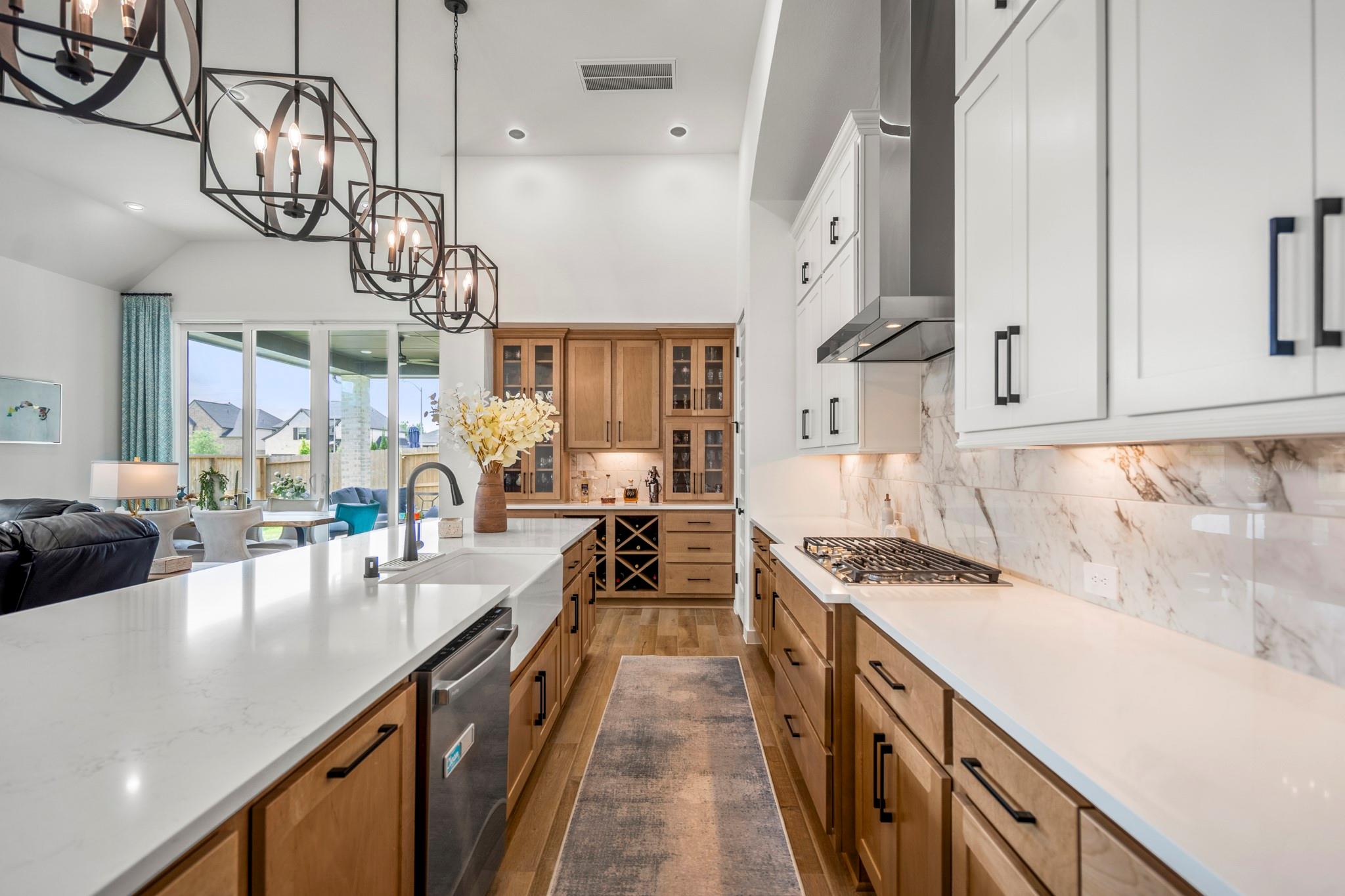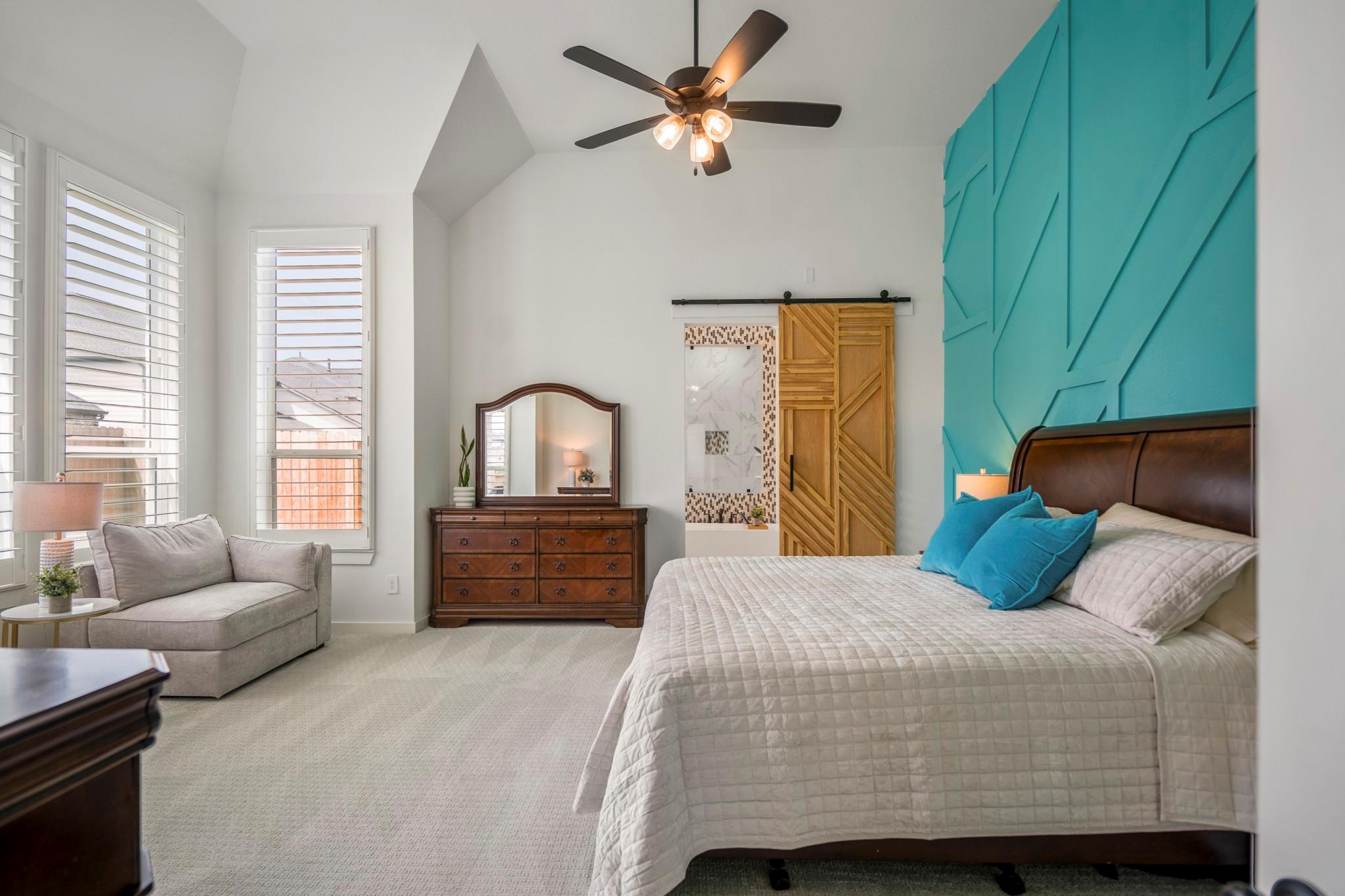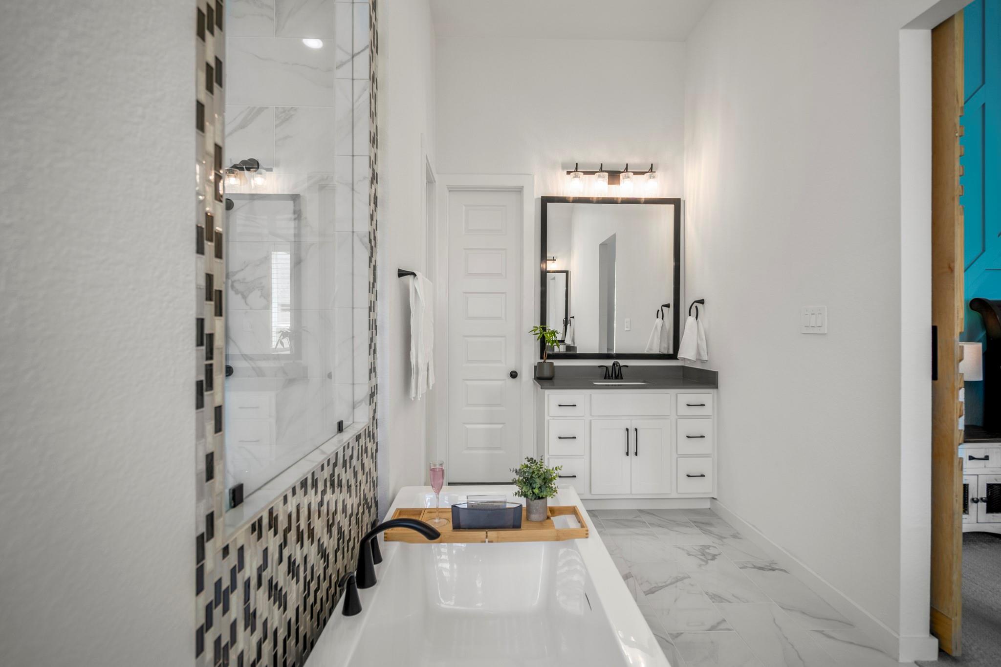 Welcome to your dream home in Fulshear, TX! This stunning 4-bedroom, 3-bath luxury residence spans 3,002 sq ft on a premium corner lot in one of the Houston area’s most sought-after communities. The elegant family room, anchored by a cozy fireplace, flows into a gourmet kitchen with double ovens, quartz countertops, glass-front hutch cabinets, upgraded pendants, and a Blanco sink. The extended primary suite stuns with a freestanding 67” soaking tub, custom barn door, tile-to-ceiling shower, and a custom closet with soft-close drawers. Matte black fixtures, 8’ interior doors, and hardwood-look tile add designer flair throughout. Entertain effortlessly on the extended covered patio with spray deck, gas drop, pre-plumbed water line for outdoor kitchen, and flood lights, plus a tandem garage with epoxy floors. Extras include plantation shutters, water softener, and full gutters with French drains. See attachments for a list of the home’s many upgrades and standout features.