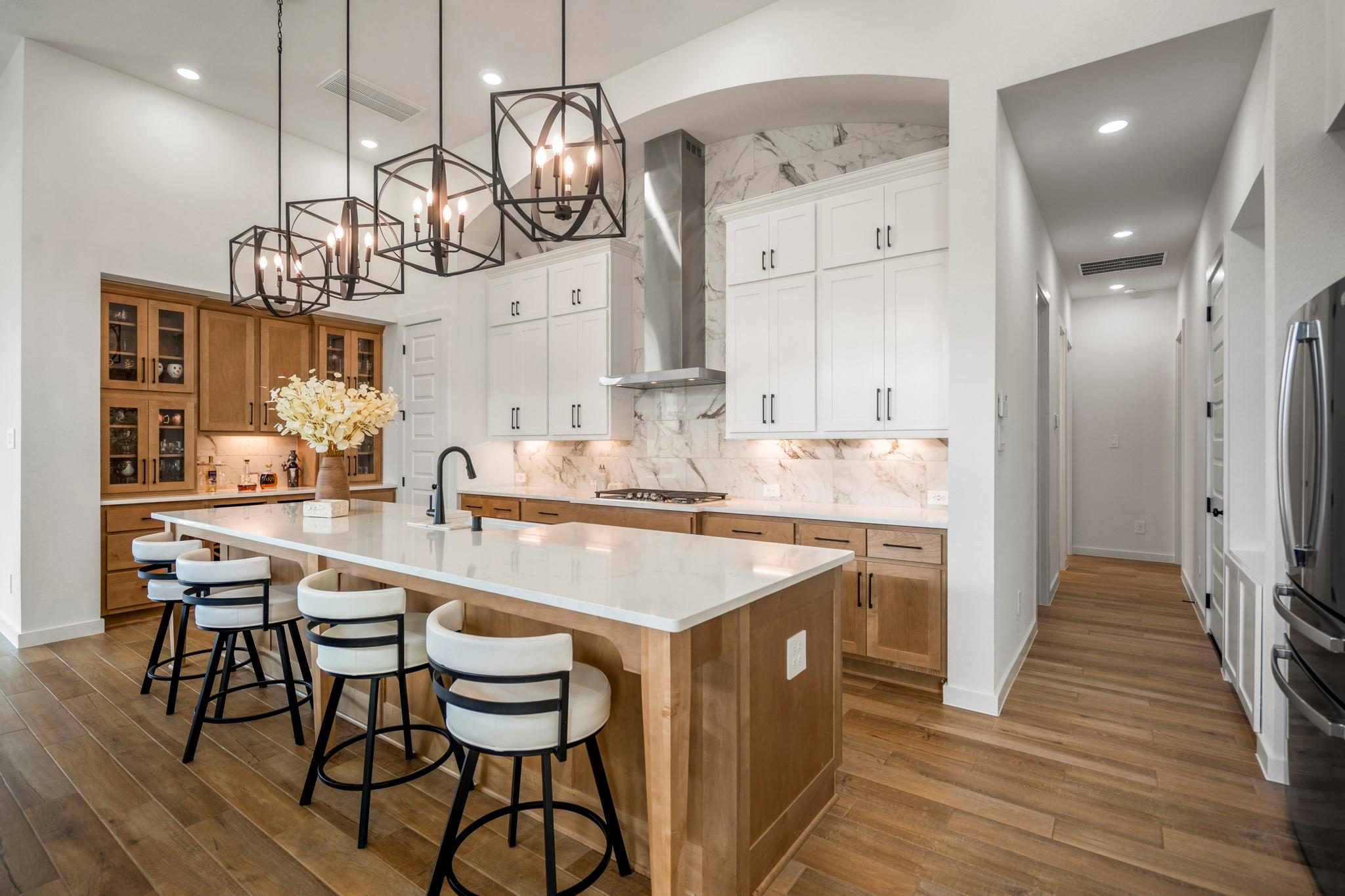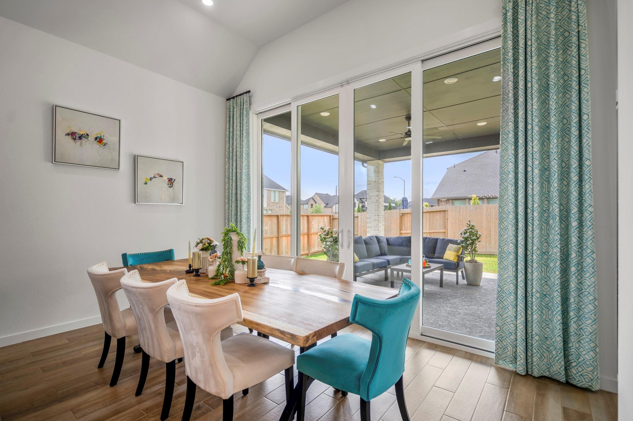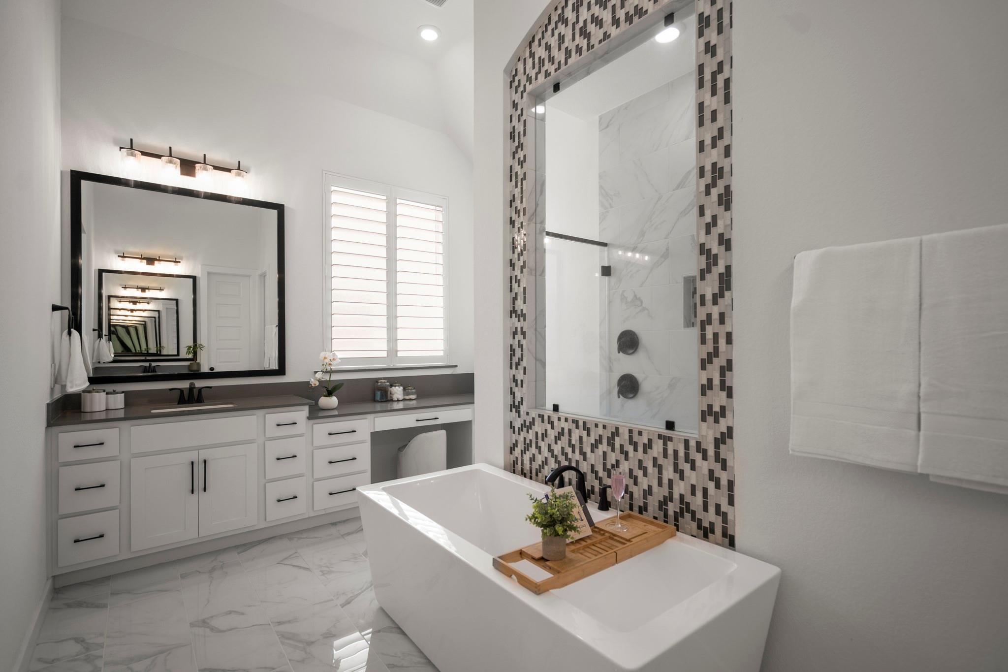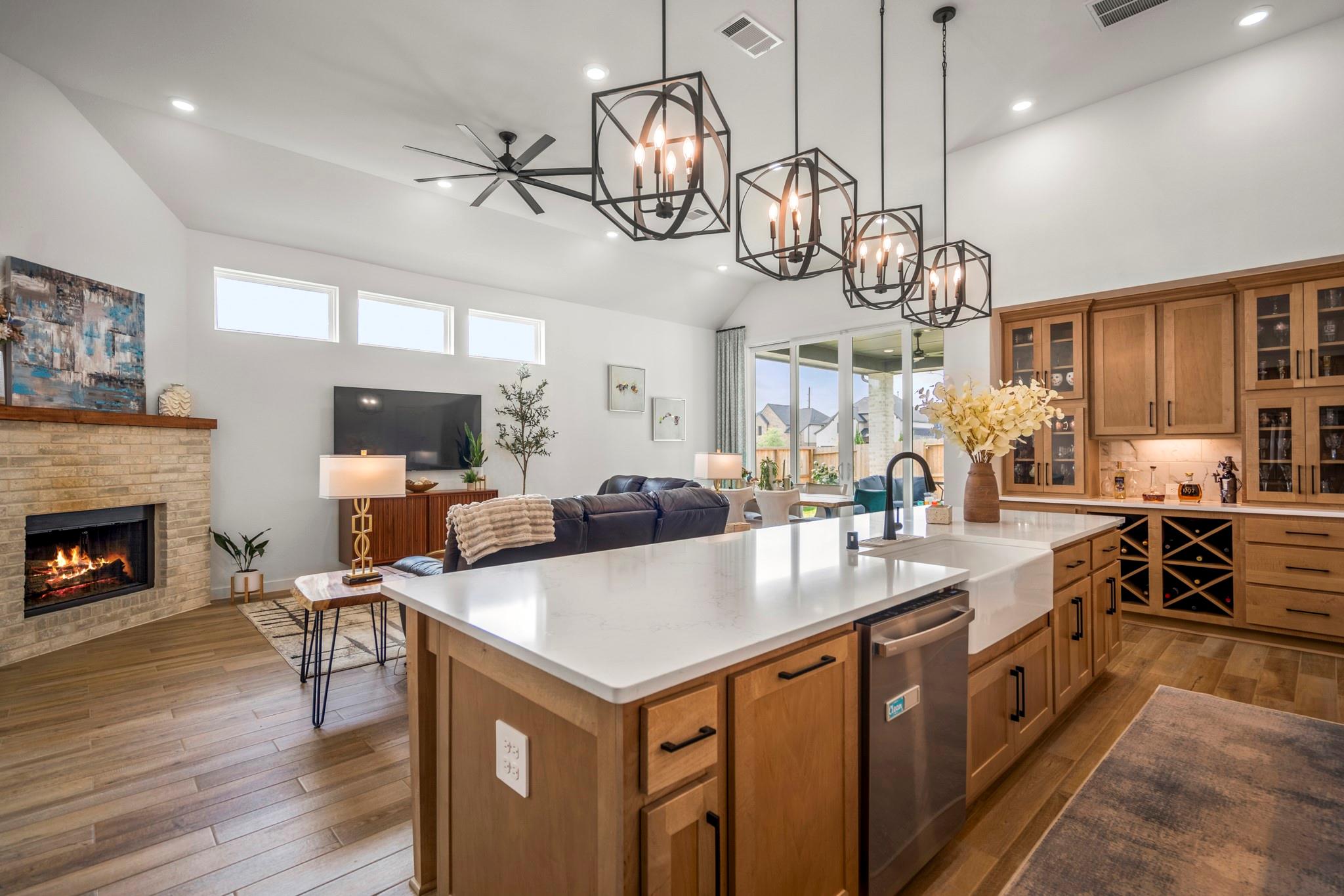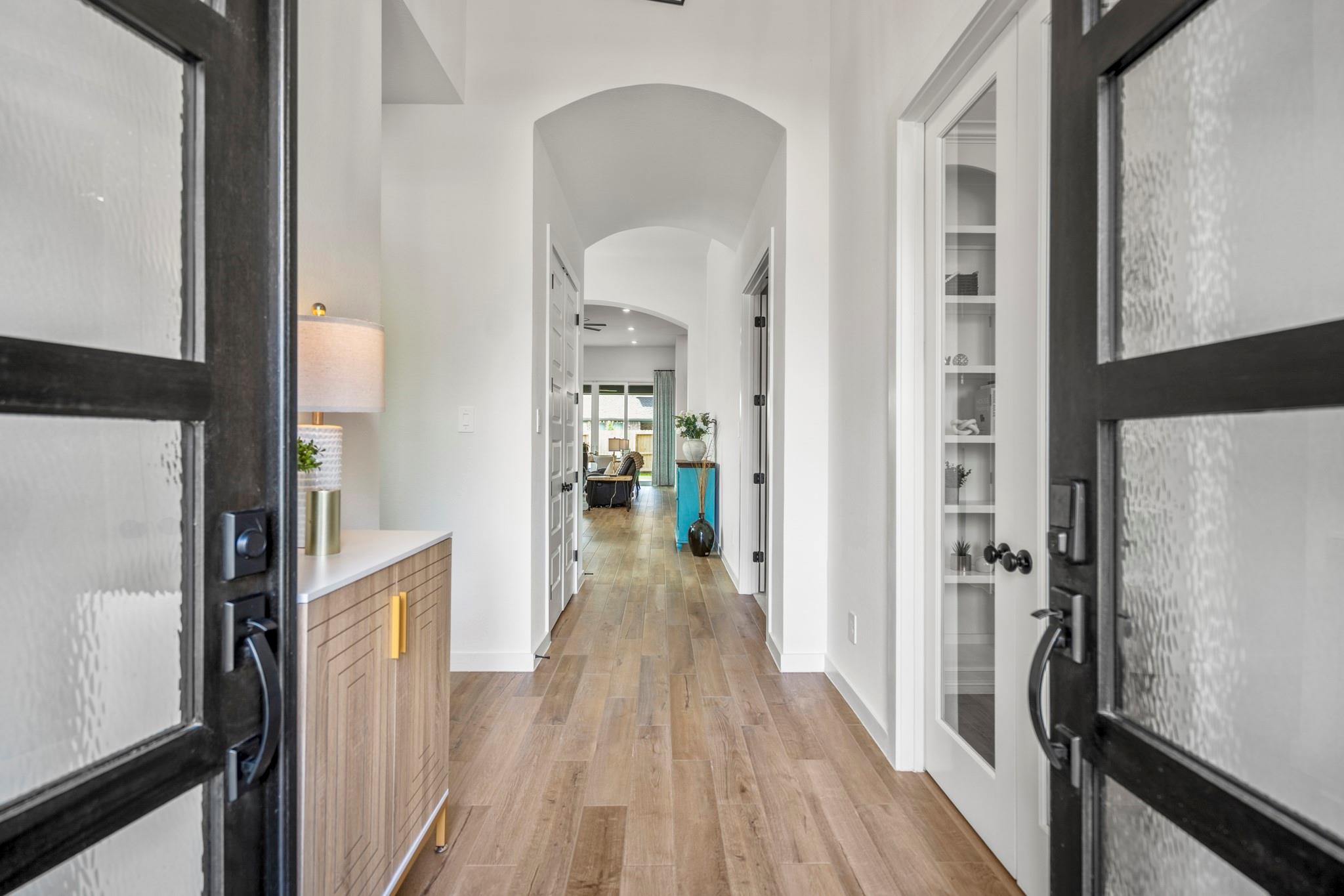 Welcome to your dream home in Fulshear, TX! This stunning 4-bedroom, 3-bath luxury residence spans 3,002 sq ft on a premium corner lot in one of the Houston area’s most sought-after communities. The elegant family room, anchored by a cozy fireplace, flows into a gourmet kitchen with double ovens, quartz countertops, glass-front hutch cabinets, upgraded pendants, and a Blanco sink. The extended primary suite stuns with a freestanding 67” soaking tub, custom barn door, tile-to-ceiling shower, and a custom closet with soft-close drawers. Matte black fixtures, 8’ interior doors, and hardwood-look tile add designer flair throughout. Entertain effortlessly on the extended covered patio with spray deck, gas drop, pre-plumbed water line for outdoor kitchen, and flood lights, plus a tandem garage with epoxy floors. Extras include plantation shutters, water softener, and full gutters with French drains. See attachments for a list of the home’s many upgrades and standout features.