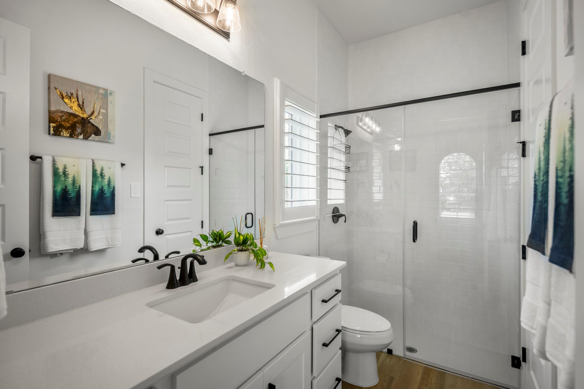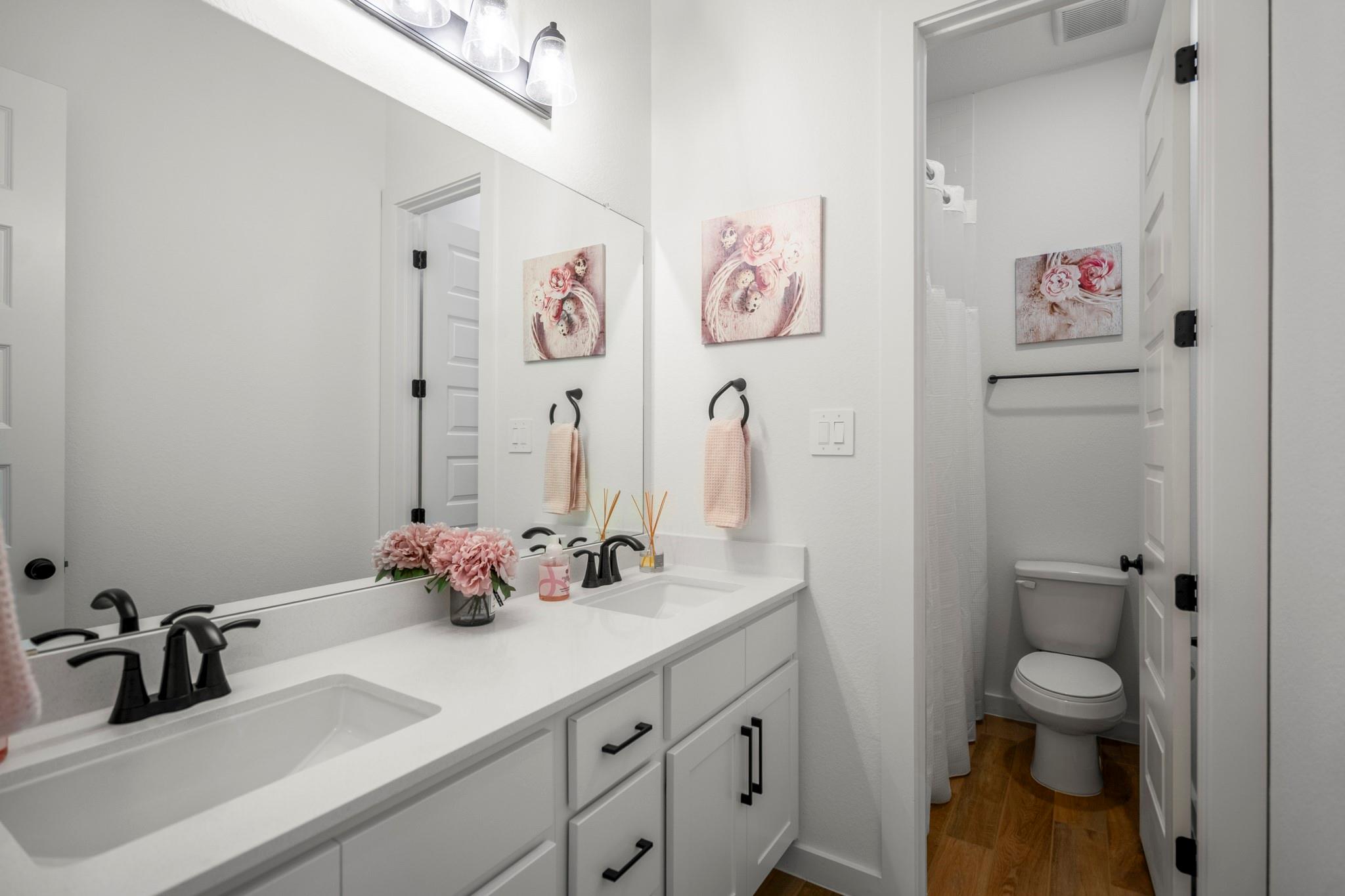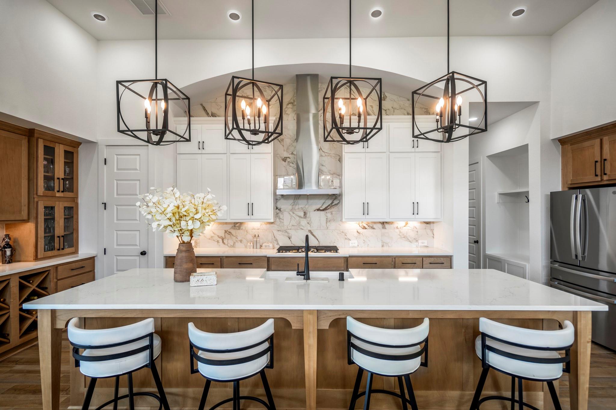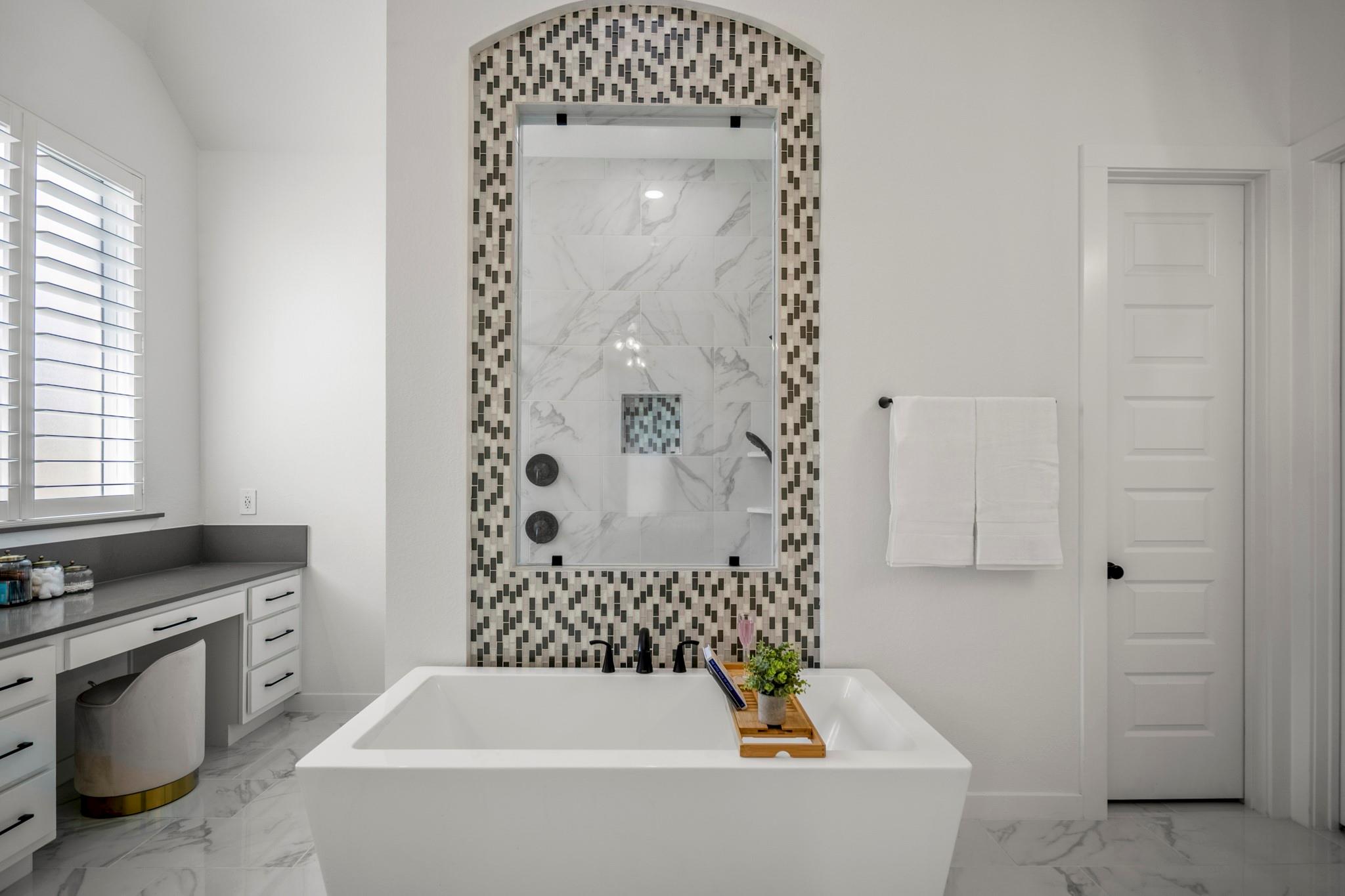 Welcome to your dream home in Fulshear, TX! This stunning 4-bedroom, 3-bath luxury residence spans 3,002 sq ft on a premium corner lot in one of the Houston area’s most sought-after communities. The elegant family room, anchored by a cozy fireplace, flows into a gourmet kitchen with double ovens, quartz countertops, glass-front hutch cabinets, upgraded pendants, and a Blanco sink. The extended primary suite stuns with a freestanding 67” soaking tub, custom barn door, tile-to-ceiling shower, and a custom closet with soft-close drawers. Matte black fixtures, 8’ interior doors, and hardwood-look tile add designer flair throughout. Entertain effortlessly on the extended covered patio with spray deck, gas drop, pre-plumbed water line for outdoor kitchen, and flood lights, plus a tandem garage with epoxy floors. Extras include plantation shutters, water softener, and full gutters with French drains. See attachments for a list of the home’s many upgrades and standout features.