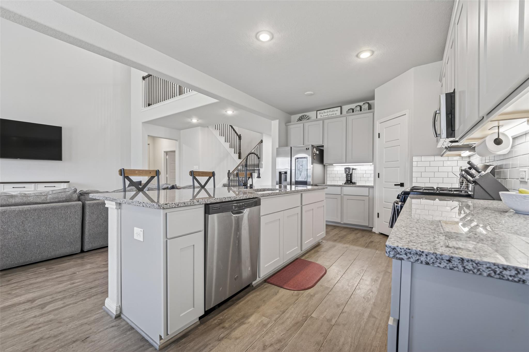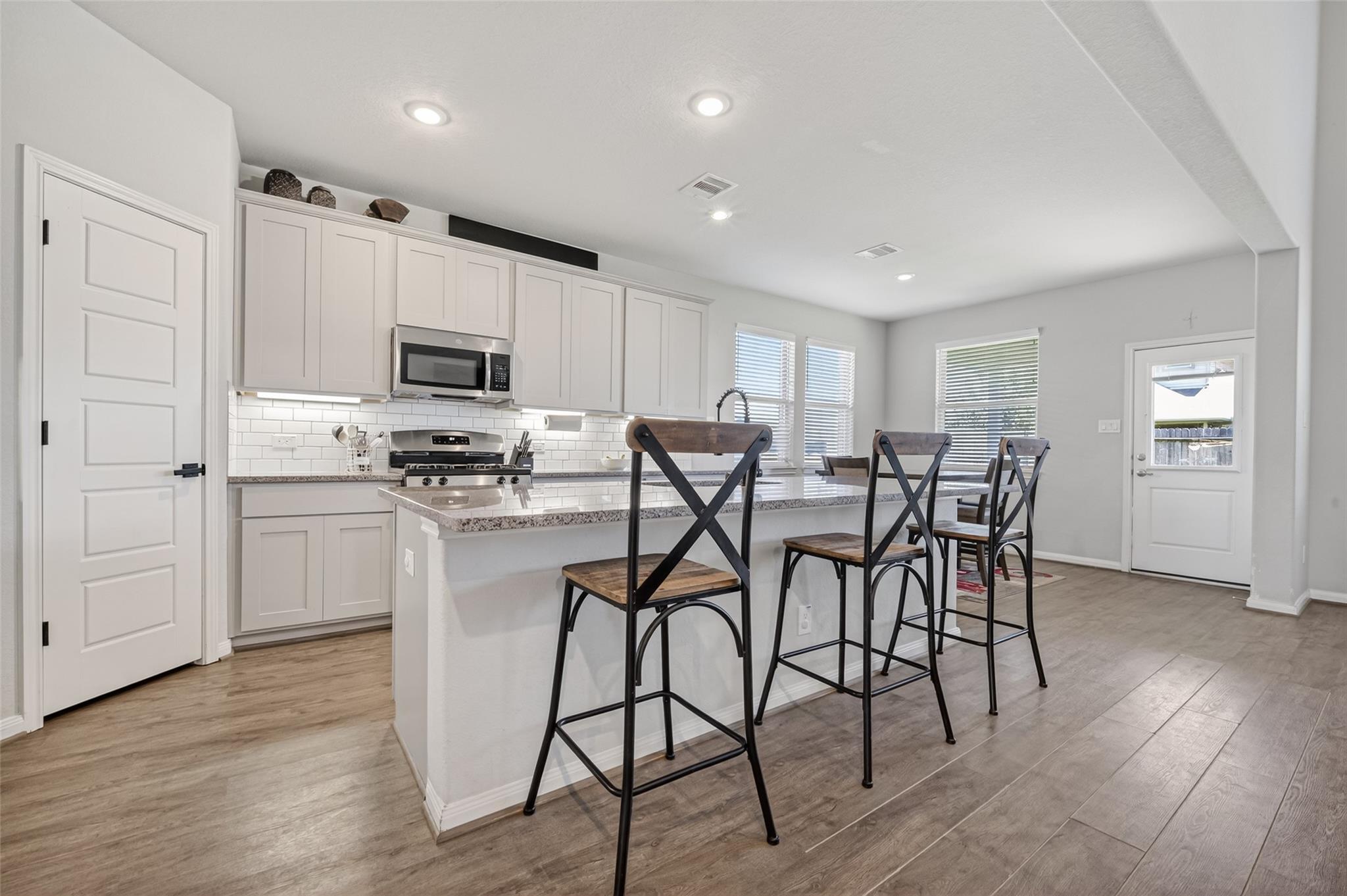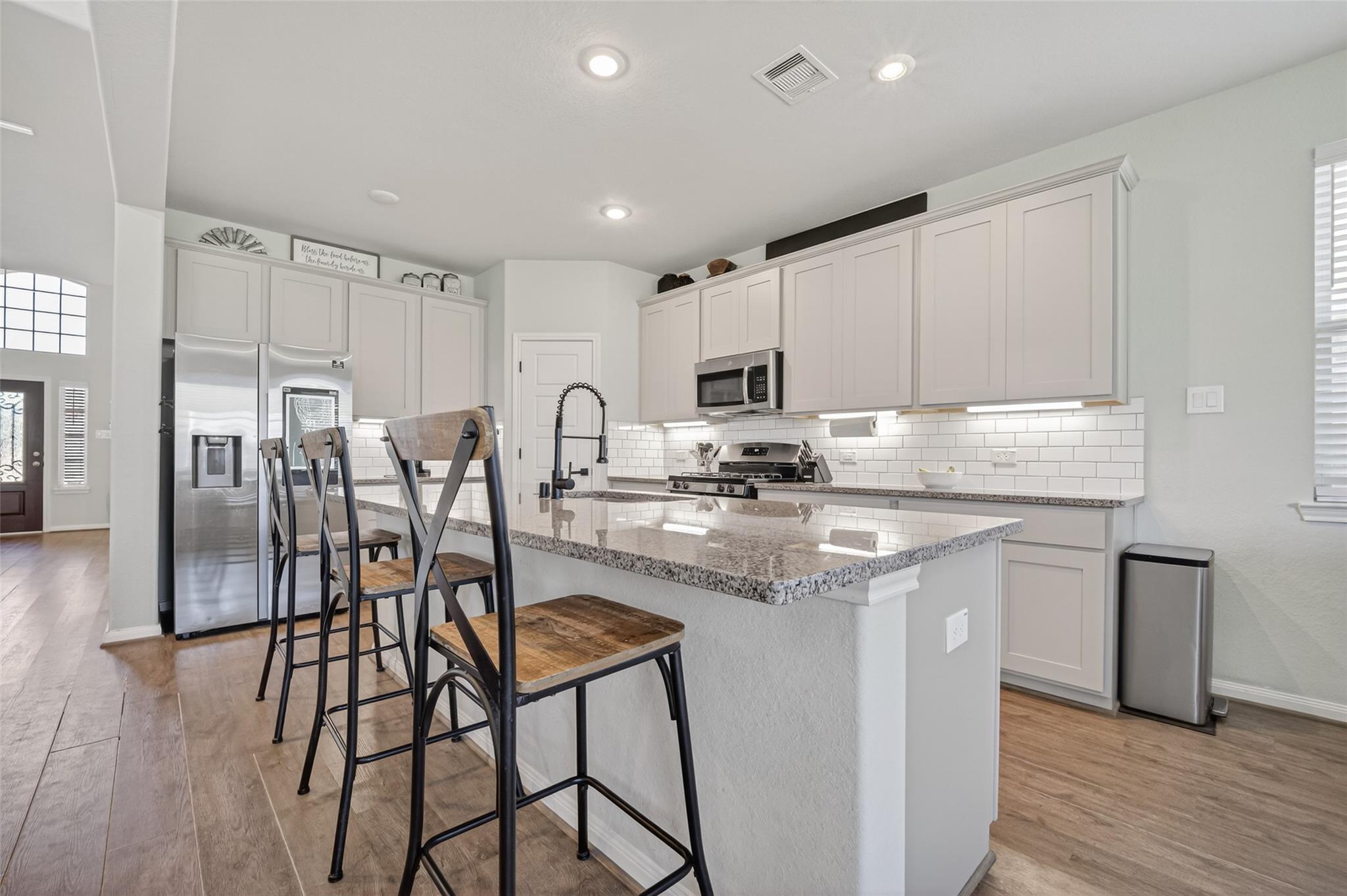 Spacious and refined 5-bedroom, 3.5-bath residence ideally positioned within the desirable Stone Creek Ranch community, offering a thoughtfully designed open-concept layout for comfortable living and effortless entertaining. The light-filled family room features soaring two-story ceilings, while the private primary suite provides a relaxing retreat with a bay window and spa-inspired bath with dual vanities, soaking tub, and separate shower. A dedicated home office adds flexibility for remote work or study, and the extended covered patio overlooks a fully fenced backyard perfect for outdoor gatherings. Conveniently located with easy access to Highway 290 and the Grand Parkway, and close to shopping, dining, and neighborhood amenities, this home delivers an exceptional blend of space, comfort, and lifestyle.