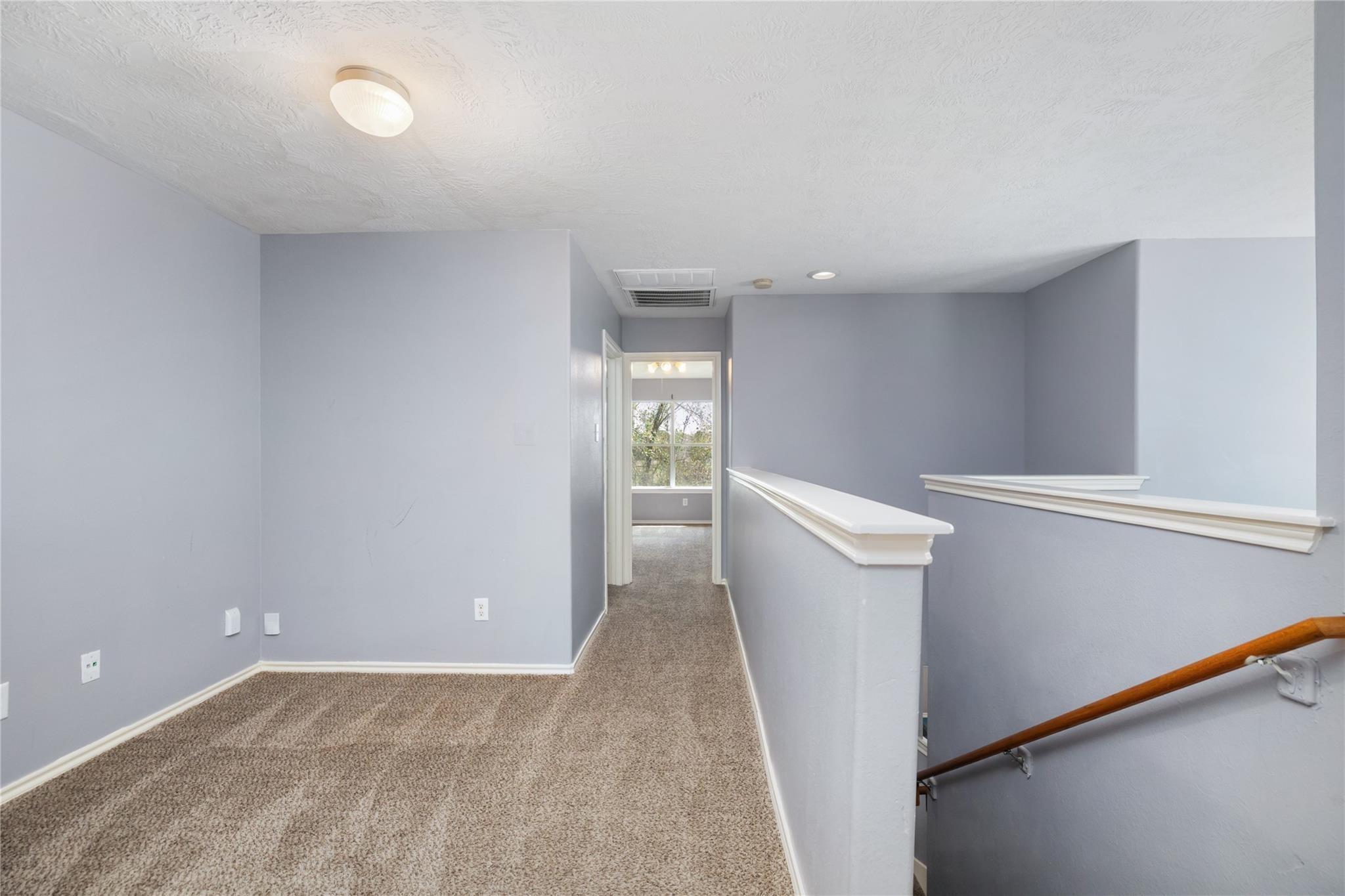 Step into this bright and welcoming townhome, perfectly nestled Villas at Northpark. With 3 bedrooms, 2.5 baths, and 1,756 sqft of thoughtful living space, this home is designed for both everyday life and entertaining. The main level features a spacious family room with new carpet, a sunny breakfast nook, a half bath, and a well-appointed kitchen, while all bedrooms and full baths are upstairs for privacy. The primary suite is a true retreat, complete with dual sinks, a separate tub and shower, and a generous walk-in closet. An upstairs bonus space offers flexible space for work, play, or hobbies. High ceilings enhance the open, airy feel throughout, and the fenced backyard backs to a peaceful greenbelt with no neighbors behind, providing both space and serenity. Enjoy community amenities including a clubhouse and pool, plus a 2-car garage. This home blends comfort, style, and lifestyle in one move-in-ready package—come see why Villas at Northpark is such a special place to call home