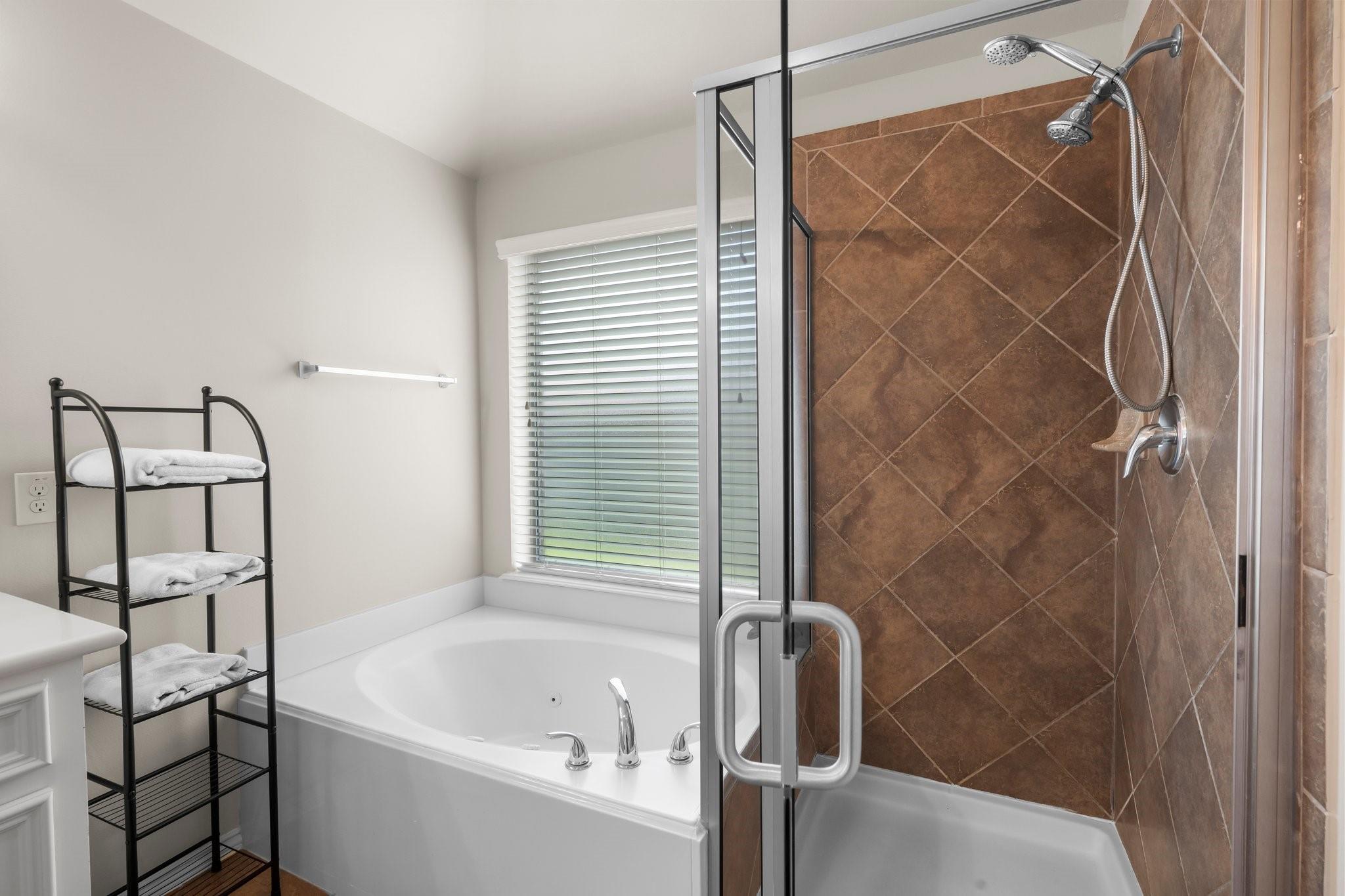 Welcome to 31870 Forest Park Trail, a move-in-ready 4-bedroom home tucked at the end of a quiet cul-de-sac in The Meadows at Imperial Oaks. Backing to a peaceful greenbelt with no rear neighbors and within walking distance to Kaufman Elementary, this home offers privacy, comfort, and convenience. Inside, enjoy a bright open layout with fresh interior paint and stylish updates throughout. The kitchen features granite countertops, stainless steel appliances, ample cabinetry, and space to gather. The oversized primary suite offers a relaxing retreat with spa-inspired finishes and generous closet space, while three additional bedrooms provide flexibility for a home office, guests, or playroom. The private backyard overlooks the greenbelt and includes a Tuff Shed that conveys. Zoned to highly regarded Conroe ISD. Convenient to parks, shopping, dining, resort-style amenities, and just 10 minutes to The Woodlands, this home truly checks every box.