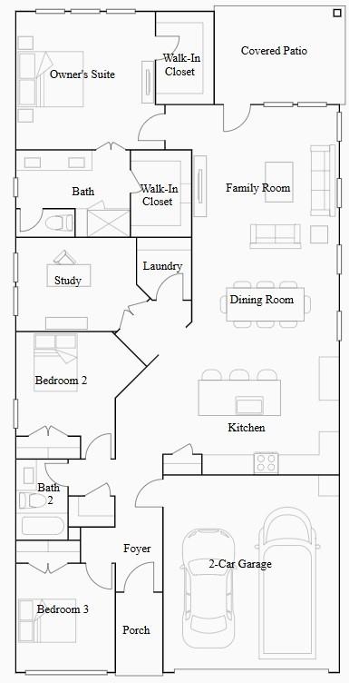 NEW! Village Builders Bristol Collection "Dashwood" Plan with Elevation "D" in Jordan Ranch! This single-story home has a versatile layout with everything residents need to live comfortably. Attached to the foyer are two bedrooms, which share a full bathroom in the hall. Adjacent is a study and down the hall is the open-concept kitchen, dining room and family room with a covered patio attached. In the back of the home is the owner’s suite which features a full bathroom and walk-in closet.