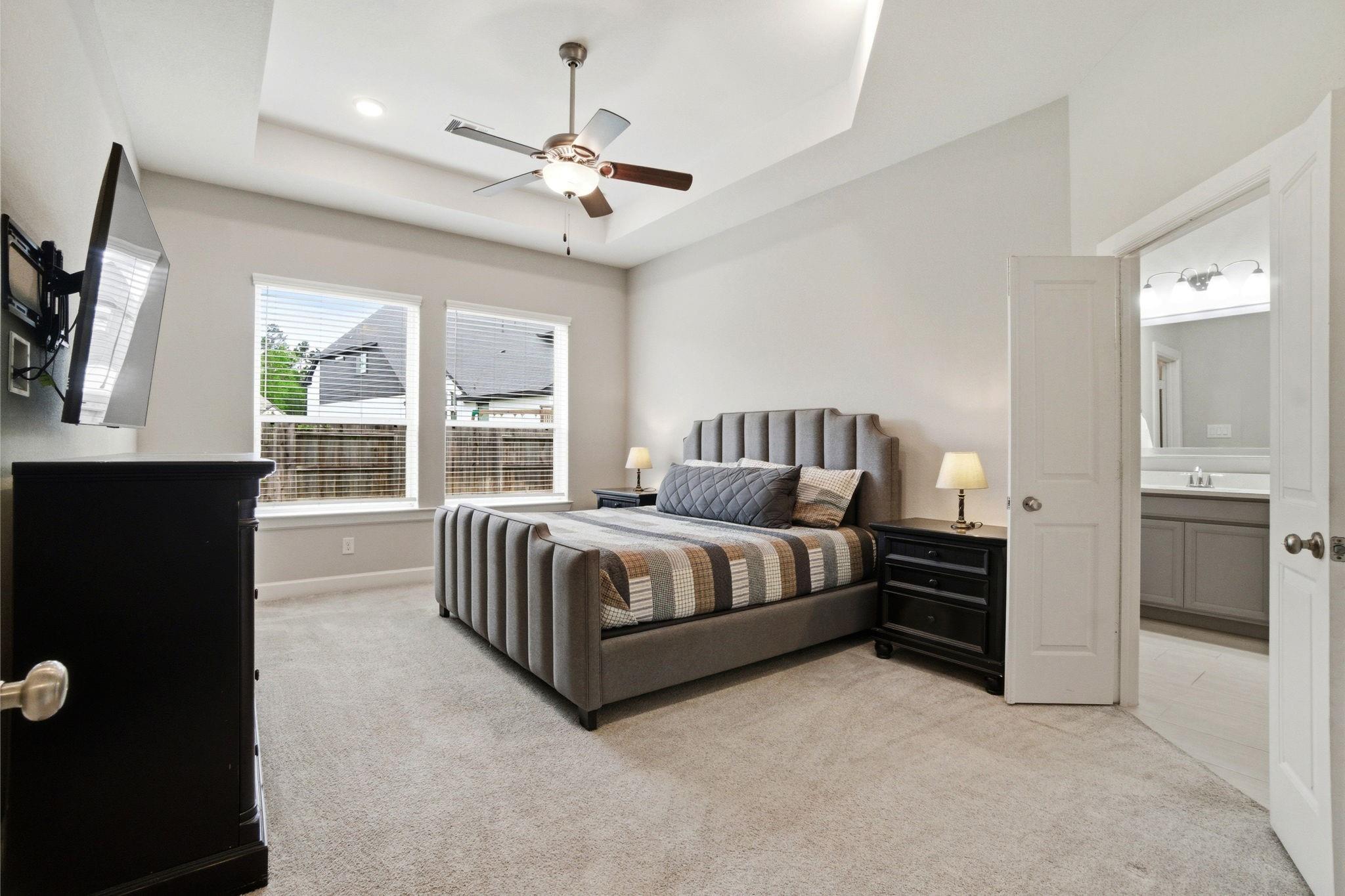 Welcome home to this stunning residence in the Meadows of Imperial Oaks! Located on a peaceful cul-de-sac, this 4 bedroom home boasts a perfect blend of elegance and functionality. With granite counters in the kitchen, high ceilings, and an abundance of natural light, this property is sure to impress. The primary bedroom and a secondary bedroom are conveniently situated on the main floor, along with a private home office. Upstairs, you'll find a spacious game room, two additional bedrooms, and a bathroom. Don't miss the walk-in attic with ample storage space. Zoned to top-rated Conroe ISD schools, this home is a true gem!