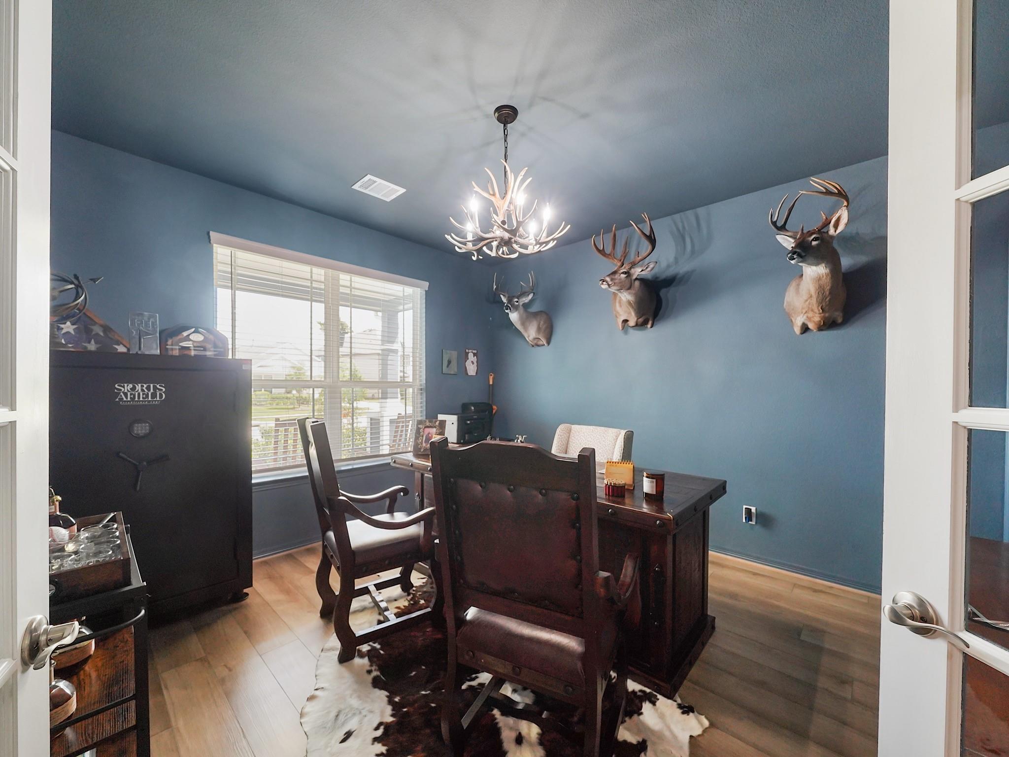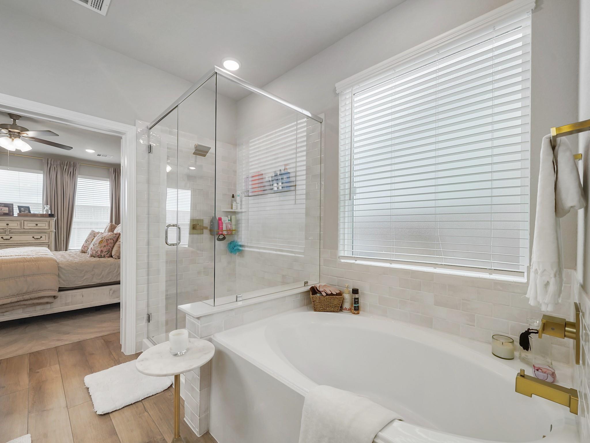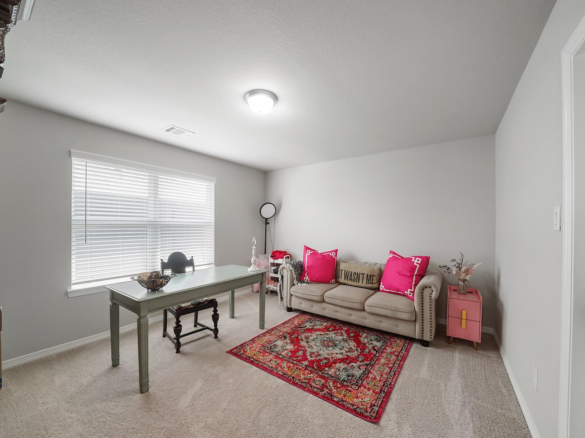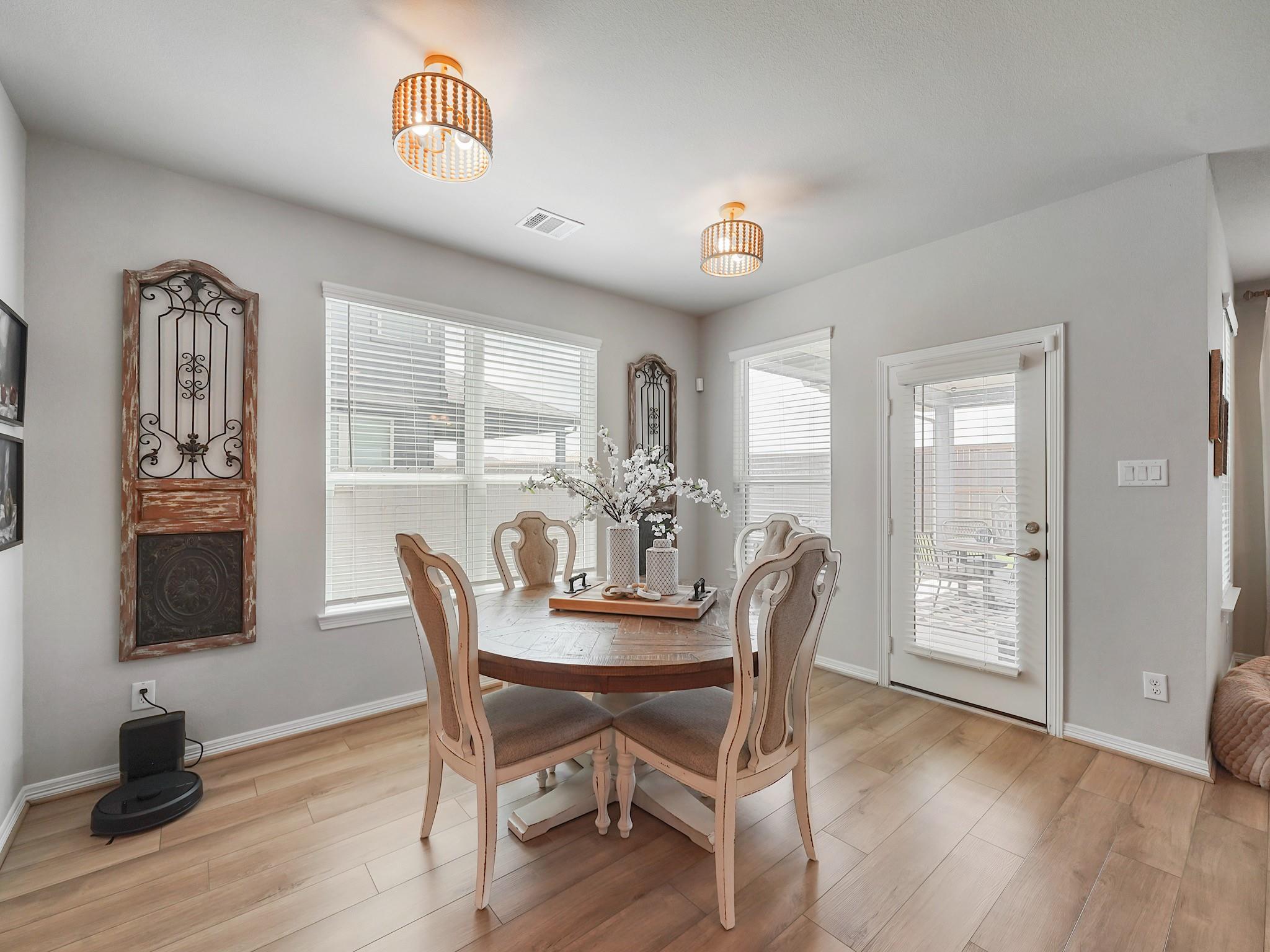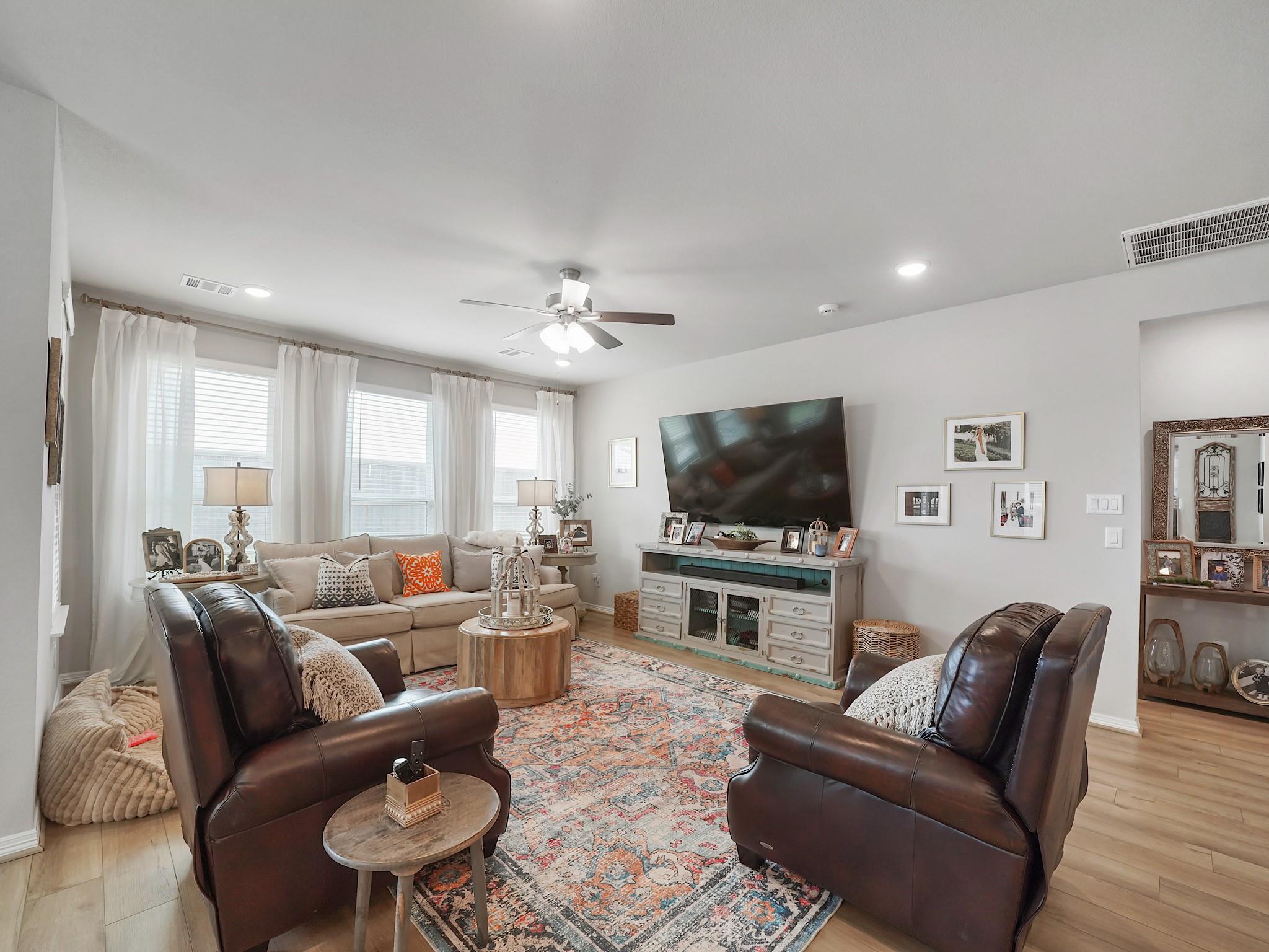 GORGEOUS 4 bedroom, 3.5 bathroom home showcasing an impressive collection of thoughtful upgrades throughout. From the moment you enter, a tranquil and inviting setting unfolds, highlighted by rich LVP flooring and soft neutral tones complemented by refined, contrasting accents in the versatile office and beautifully updated kitchen. The kitchen serves as the centerpiece of the home, overlooking the dining and living areas, and features a custom oversized island, custom cabinetry, designer fixtures, and a striking vent hood—ideal for both everyday living and entertaining. The primary suite offers a true retreat with a spa-inspired ensuite designed for relaxation. Upstairs, a spacious game room and three generously sized bedrooms—including one with a private ensuite—provide flexibility and comfort. Enjoy a low-maintenance lifestyle with HOA INCLUDED FRONT YARD CARE and access to scenic lakes, walking trails, and community spaces.
