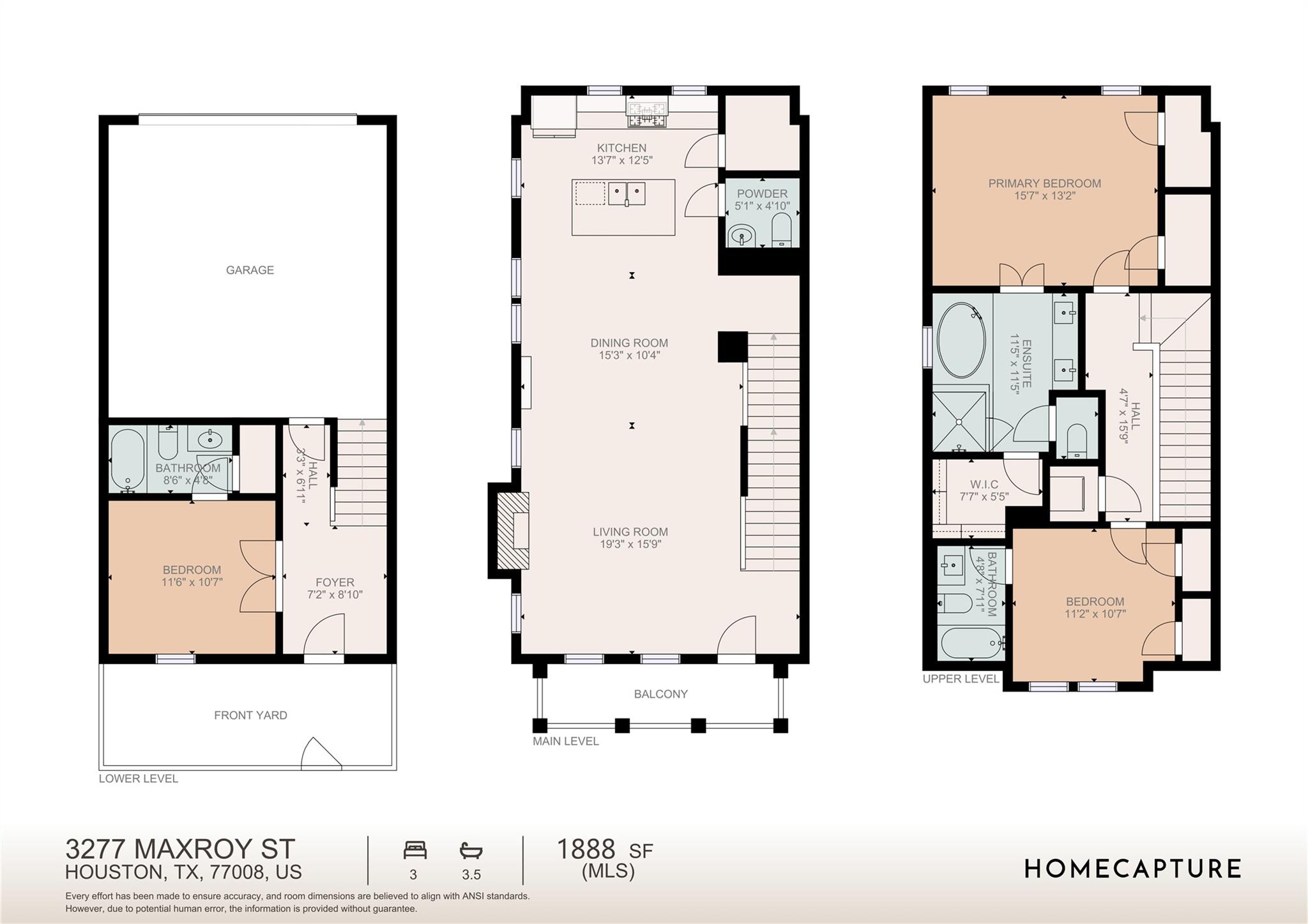 Third FloorPrimary Bedroom:15x13Bedroom:11x10