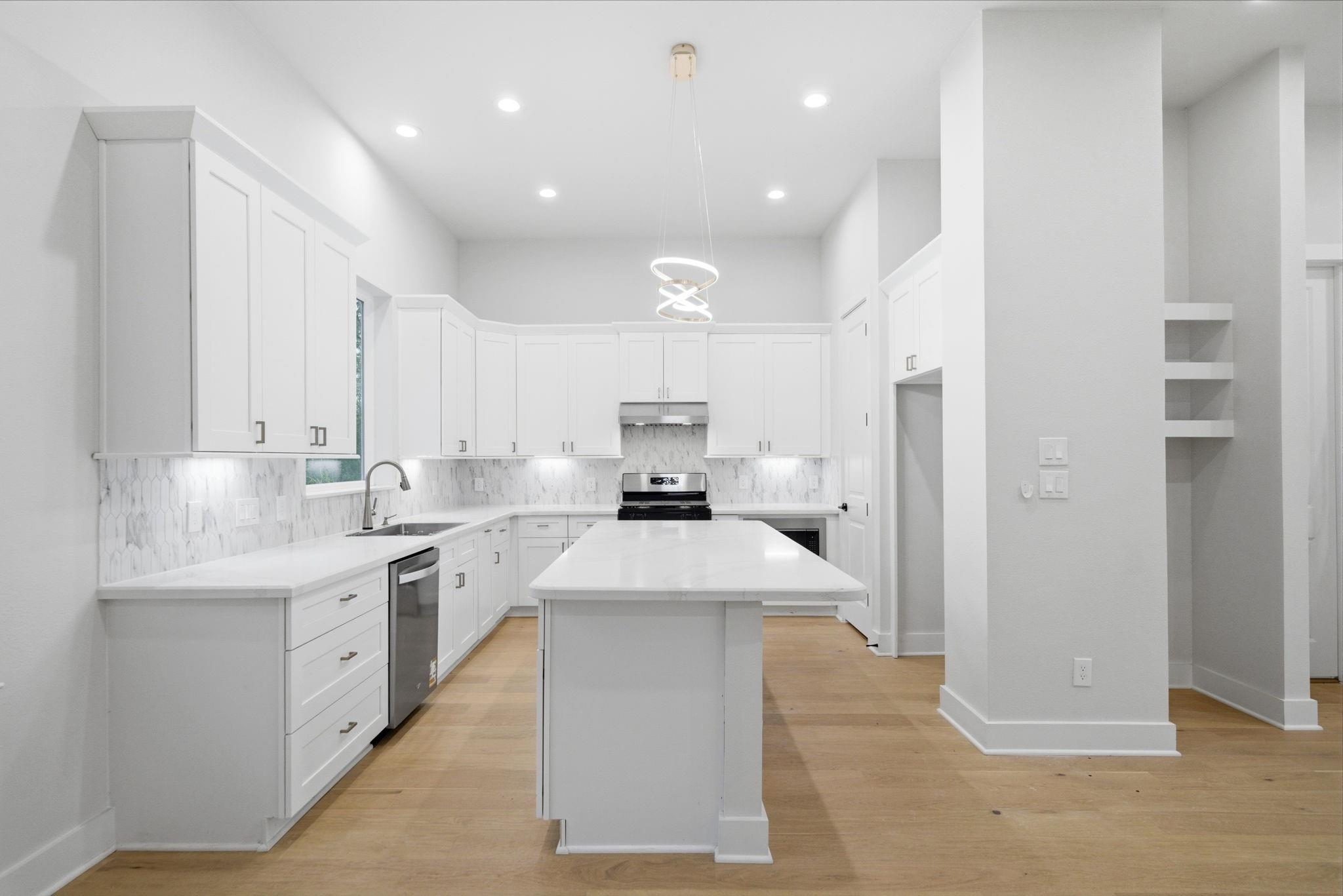 Experience elevated living in the heart of proper Independence Heights. This sophisticated three-story residence offers four bedrooms and three full bathrooms and a half bath. The first floor features a private guest suite with an ensuite bathroom—perfect for visitors or a home office—while the second floor showcases an expansive open-concept living area ideal for gatherings and everyday comfort. The third floor hosts three additional bedrooms. Premium finishes and modern conveniences define every space, including ½-inch engineered wood flooring, solid wood cabinetry, and a chef-inspired kitchen complete with a touch-activated faucet, ultra-quiet dishwasher, and premium hood vent. Smart upgrades such as a tankless water heater, smart thermostat, smart front door lock, garage access, and Ring doorbell enhance both comfort and security. Spa-inspired bathrooms feature a rain shower and soaking tub, while the covered patio and private backyard provide a perfect outdoor escape.