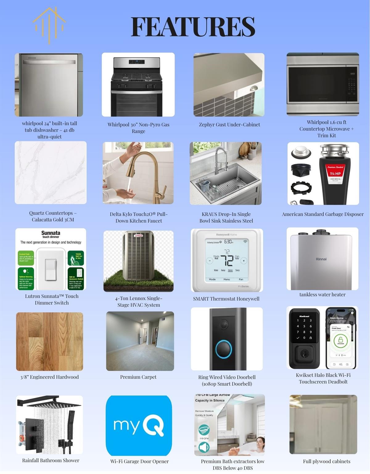 InteriorFloors:Carpet,Engineered Wood,TileCountertop:QuartzBathroom Description:Half Bath,Primary Bath: Double Sinks,Primary Bath: Separate Shower,Primary Bath: Soaking Tub,Secondary Bath(s): Double Sinks,Secondary Bath(s): Shower Only,Secondary Bath(s): Tub/Shower ComboBedroom Desc:1 Bedroom Down - Not Primary BR,3 Bedrooms Up,En-Suite Bath,Primary Bed - 3rd Floor,Walk-In ClosetKitchen Desc:Island w/o Cooktop,Pantry,Soft Closing Cabinets,Soft Closing Drawers,Under Cabinet Lighting,Walk-in PantryRoom Description:1 Living Area,Entry,Family Room,Kitchen/Dining Combo,Living Area - 2nd Floor,Living/Dining Combo,Utility Room in GarageHeating:Central GasCooling:Central ElectricConnections:Electric Dryer Connections,Gas Dryer Connections,Washer ConnectionsDishwasher:YesDisposal:YesMicrowave:YesRange:Gas RangeOven:Gas OvenEnergy Feature:Digital Program Thermostat,High-Efficiency HVAC,HVAC>15 SEER,Insulated/Low-E windows,Insulation - Batt,Tankless/On-Demand H2O HeaterInterior:Fire/Smoke Alarm,Formal Entry/Foyer,High Ceiling,Prewired for Alarm System