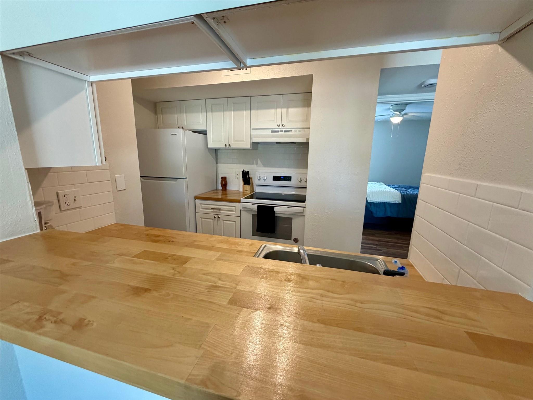This beautifully updated condo is ready to move in and enjoy or be a great income generating property! Recent updates include new vinyl sliding glass doors to the balcony, freshly painted interior, pretty laminate wood flooring throughout, fireplace quartz tile, mantle and wall mount TV, updated lighting and ceiling fans, the kitchen has been updated with gorgeous butcher block wood counter tops, new cabinetry and new appliances, the bath has been updated with new vanity, countertops,backsplash, mirrors, toilet, tub and pretty quarts tile surround,tile flooring, faucets and lighting. The primary bed features a huge walk in closet plus a secondary closet and the kitchen has a laundry area for a stack washer and dryer (not included). This one is turn-key, easy to show and ready for a quick closing!