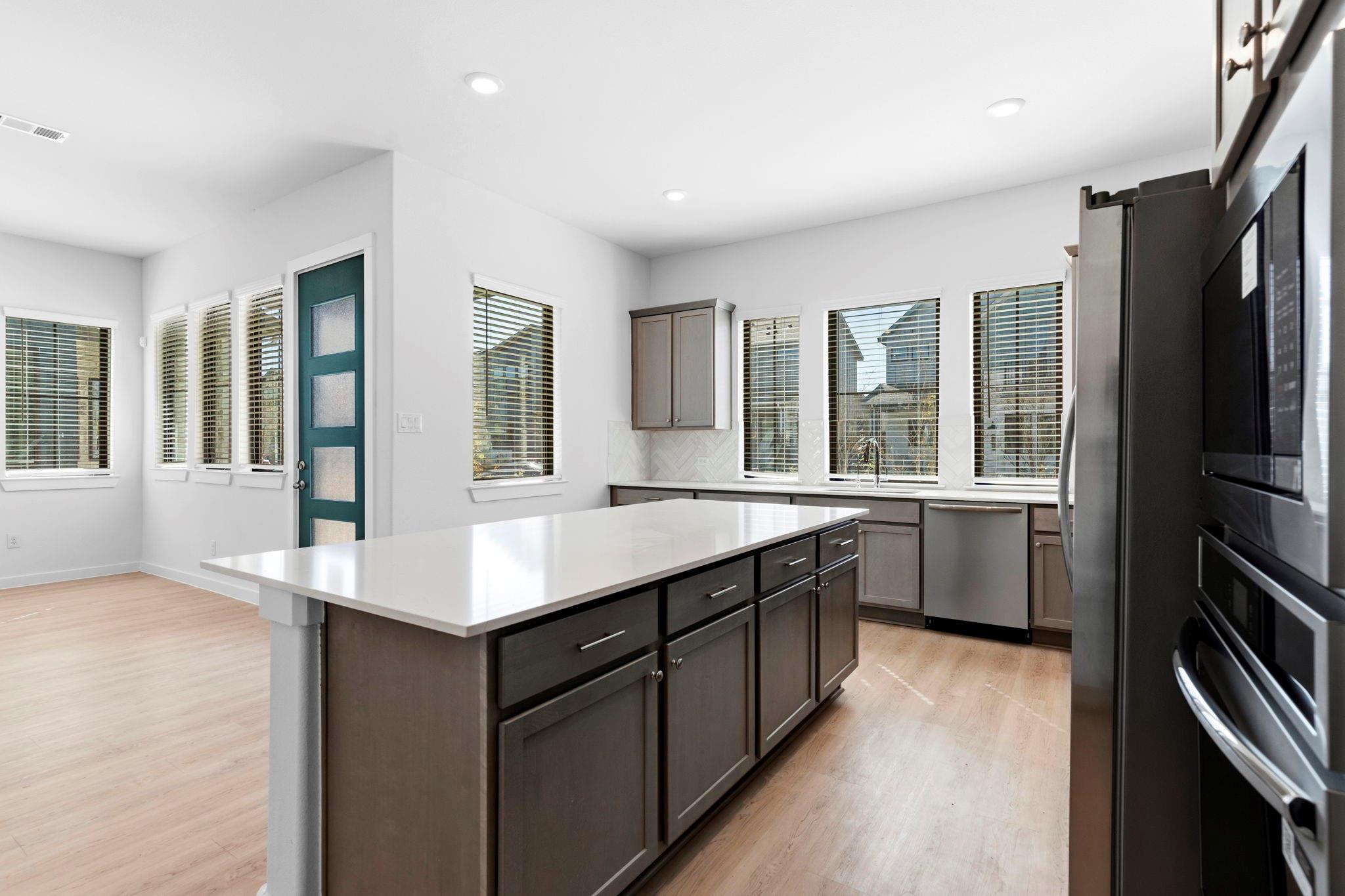Discover this 3-bedroom, 3-bathroom townhome in the vibrant Indigo community. Features include an open floor plan, high ceilings, a welcoming front porch, and a backyard with a covered patio. The kitchen offers quartz countertops, a gas stove, and a walk-in pantry, while the primary suite features double sinks and an oversized shower. Indigo amenities include a coffee shop, a 42-acre urban farm, green spaces with mini-golf, scenic trails, and an ADA-accessible kayak launch. Conveniently located off the Grand Parkway with easy access to Cinco Ranch, Sugar Land, and Richmond, this home is zoned to Fort Bend ISD. Measurements are deemed accurate, but please verify if important. Some images may be conceptual, and finishes may vary.