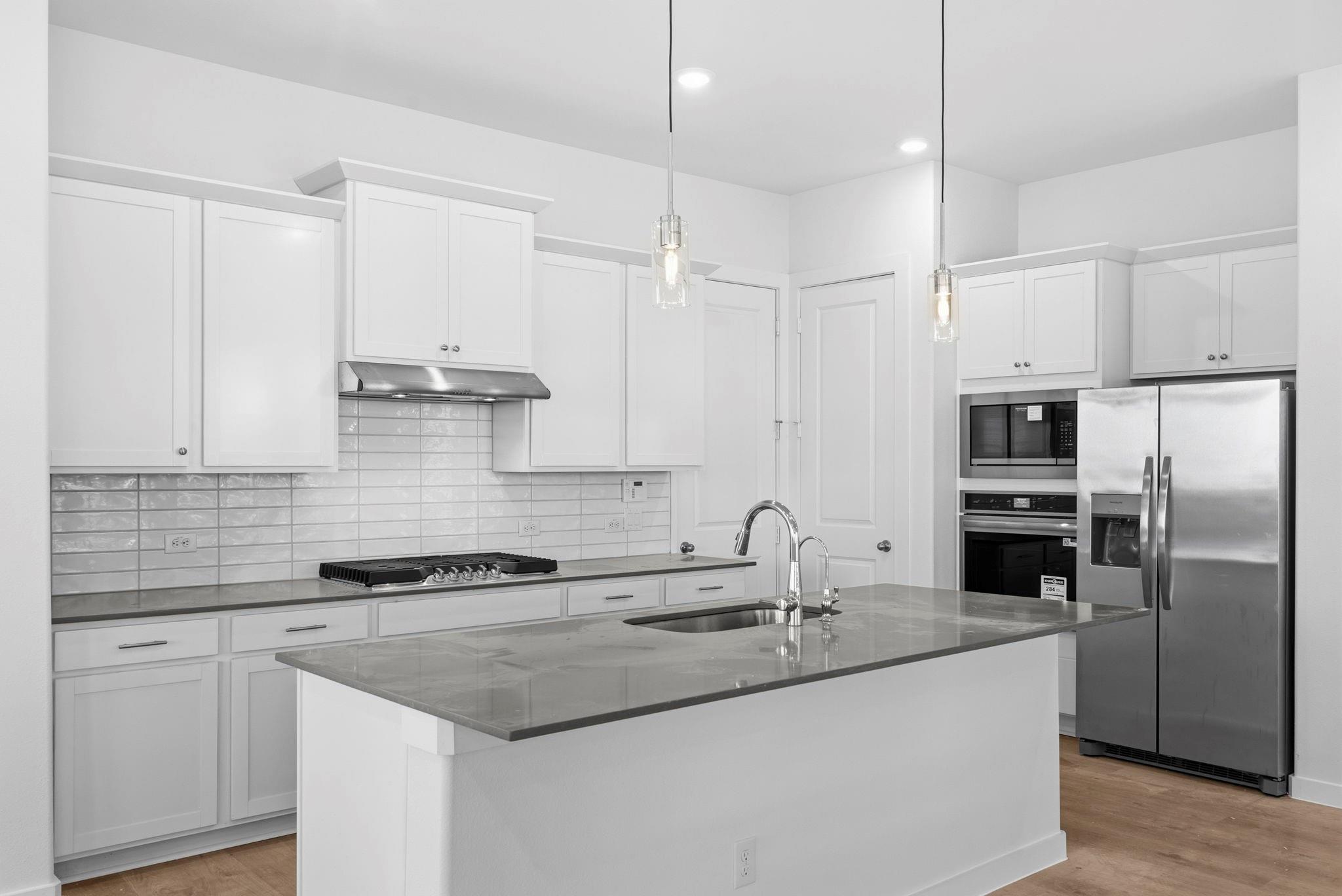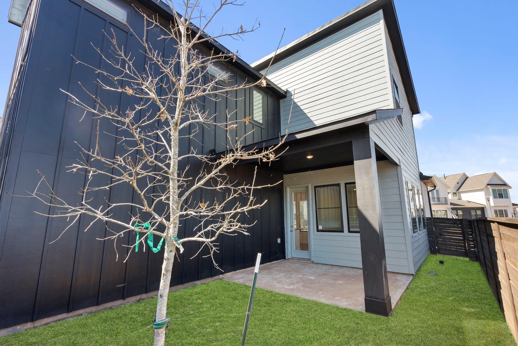 Find peace in this new 3-bedroom, 3-bath home in the master-planned community of Indigo. The Sparrow A floor plan features an open-concept design, inviting front porch, upstairs loft, and fenced backyard with a covered patio. The island kitchen offers quartz countertops, soft-close cabinets, and a walk-in pantry. The primary suite includes dual sinks, an oversized shower, and a spacious walk-in closet. Indigo provides exceptional amenities, including a walkable town center, The Filling Station with shops and food vendors, a 42-acre working urban farm with crops and livestock, and recreational spaces with mini golf, skee-ball, trails, and a lake with ADA kayak launch. Convenient access to Grand Parkway, Cinco Ranch, Sugar Land, and major Houston highways. Measurements are approximate and should be verified if important. Home is under construction; photos may be representative and final finishes, colors, and plans may change.