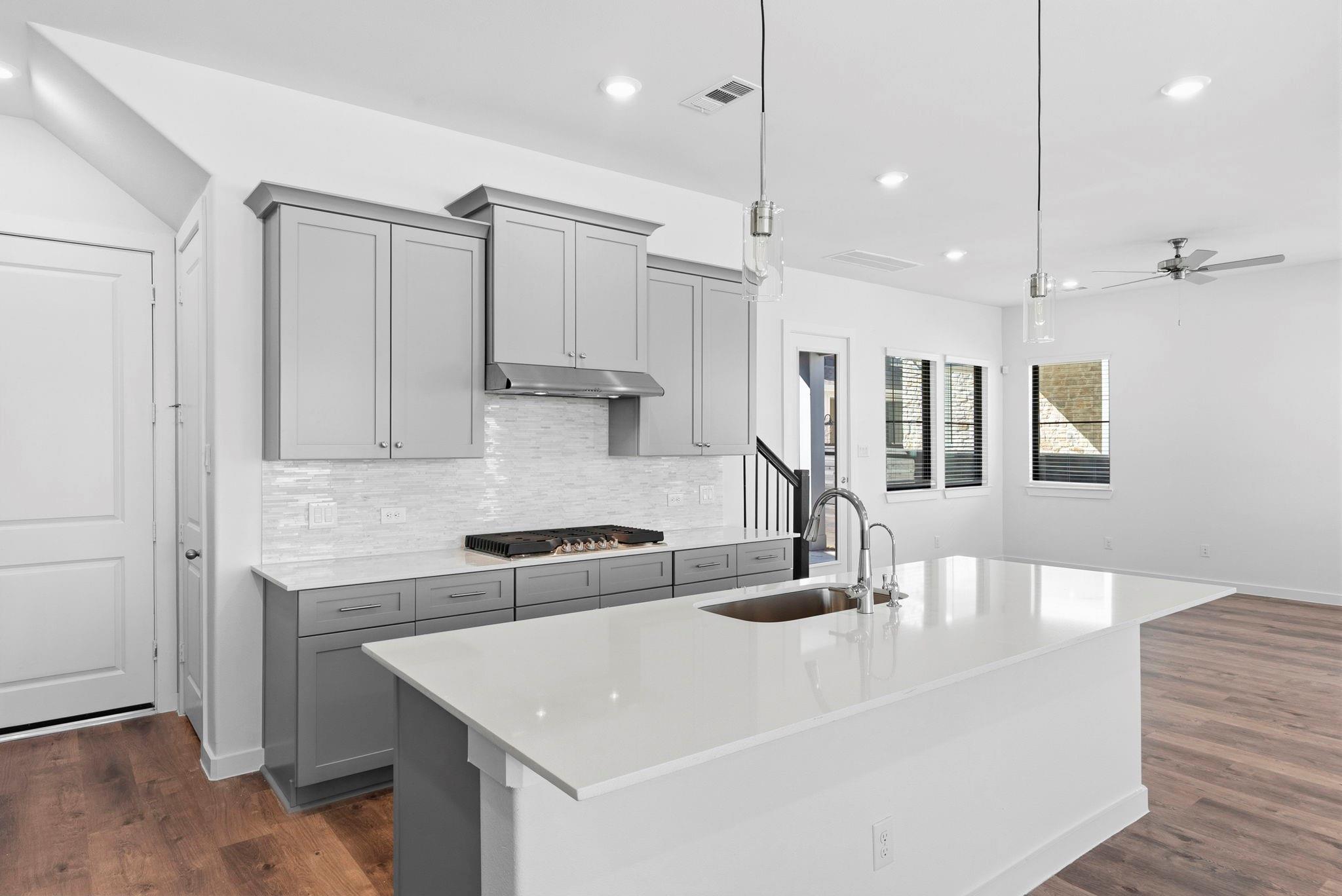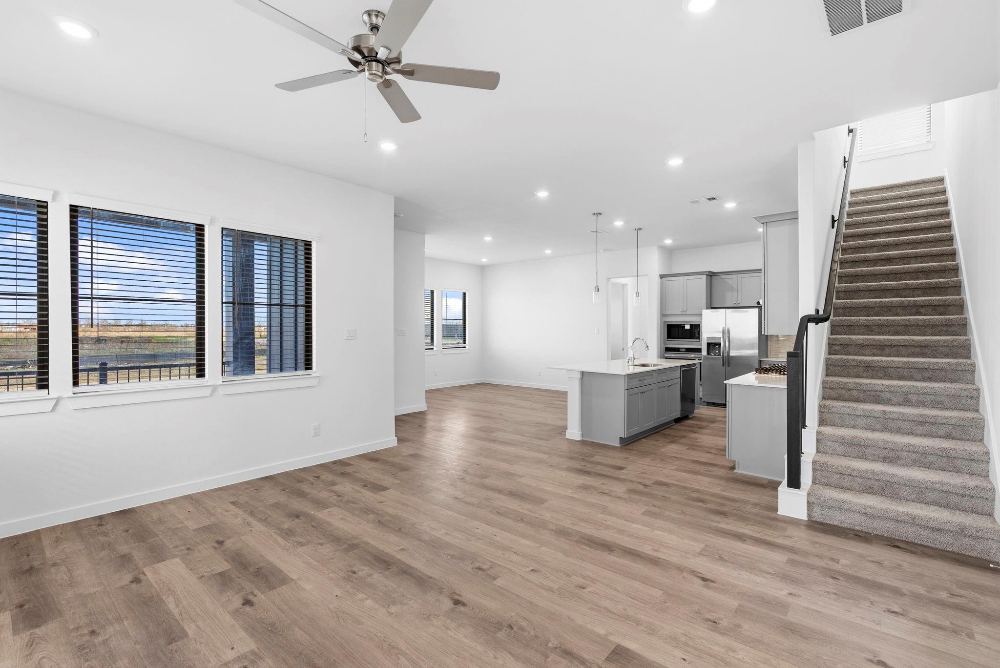 InteriorFloors:Vinyl PlankCountertop:QuartzBathroom Description:Primary Bath: Double Sinks,Primary Bath: Separate Shower,Primary Bath: Shower Only,Secondary Bath(s): Soaking Tub,Secondary Bath(s): Tub/Shower ComboBedroom Desc:1 Bedroom Down - Not Primary BR,Primary Bed - 2nd Floor,Walk-In ClosetKitchen Desc:Breakfast Bar,Instant Hot Water,Island w/o Cooktop,Kitchen open to Family Room,Pantry,Pots/Pans Drawers,Soft Closing Cabinets,Soft Closing Drawers,Walk-in PantryRoom Description:1 Living Area,Family Room,Formal Dining,Gameroom Up,Living Area - 2nd Floor,Living/Dining Combo,Loft,Utility Room in HouseHeating:Central GasCooling:Central ElectricConnections:Electric Dryer Connections,Washer ConnectionsDishwasher:YesDisposal:YesCompactor:NoMicrowave:YesRange:Gas CooktopOven:Electric OvenIce Maker:NoEnergy Feature:Ceiling Fans,Digital Program Thermostat,Energy Star/CFL/LED Lights,Insulation - Spray-Foam,Tankless/On-Demand H2O HeaterInterior:Alarm System - Owned,High Ceiling,Refrigerator Included,Washer Included