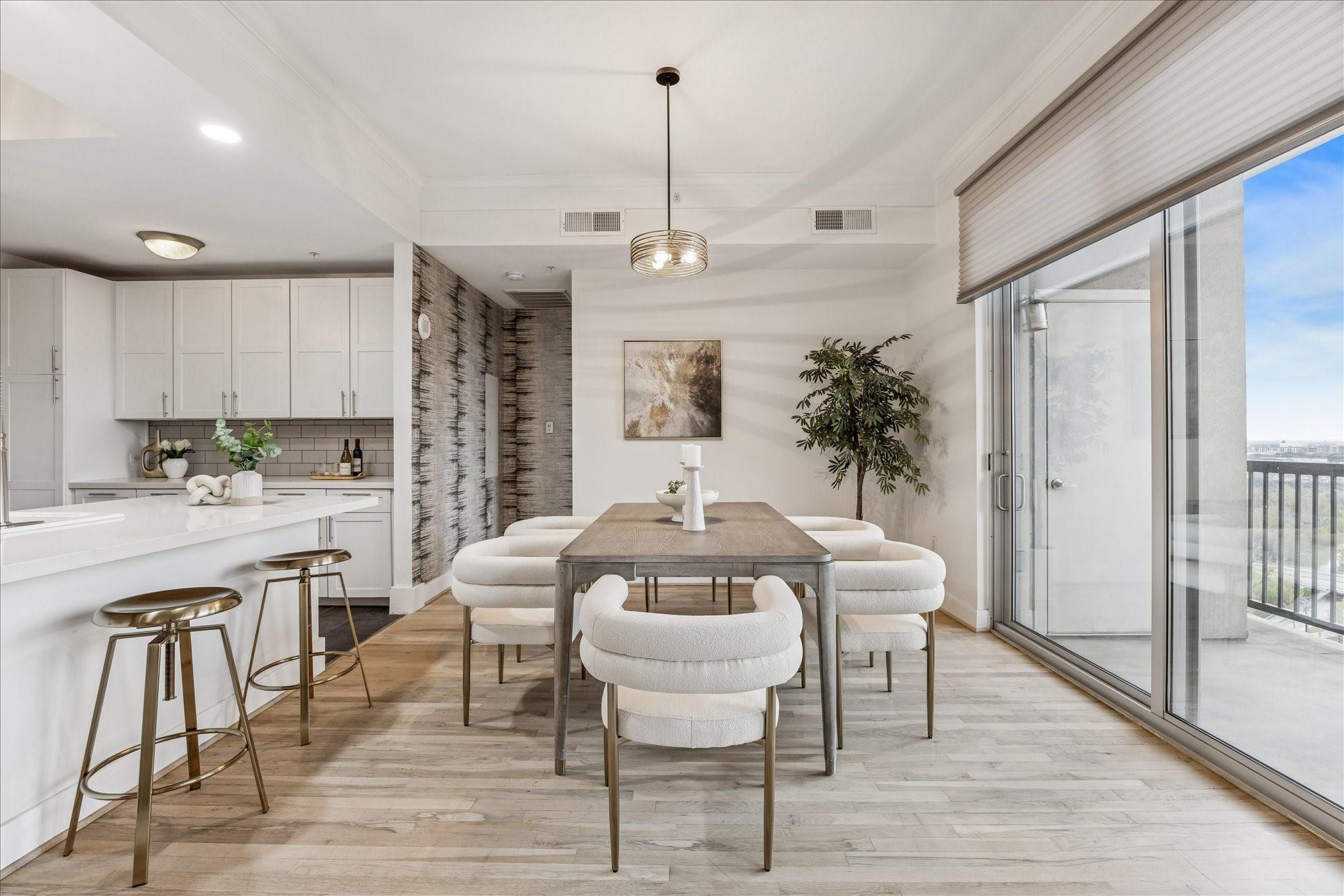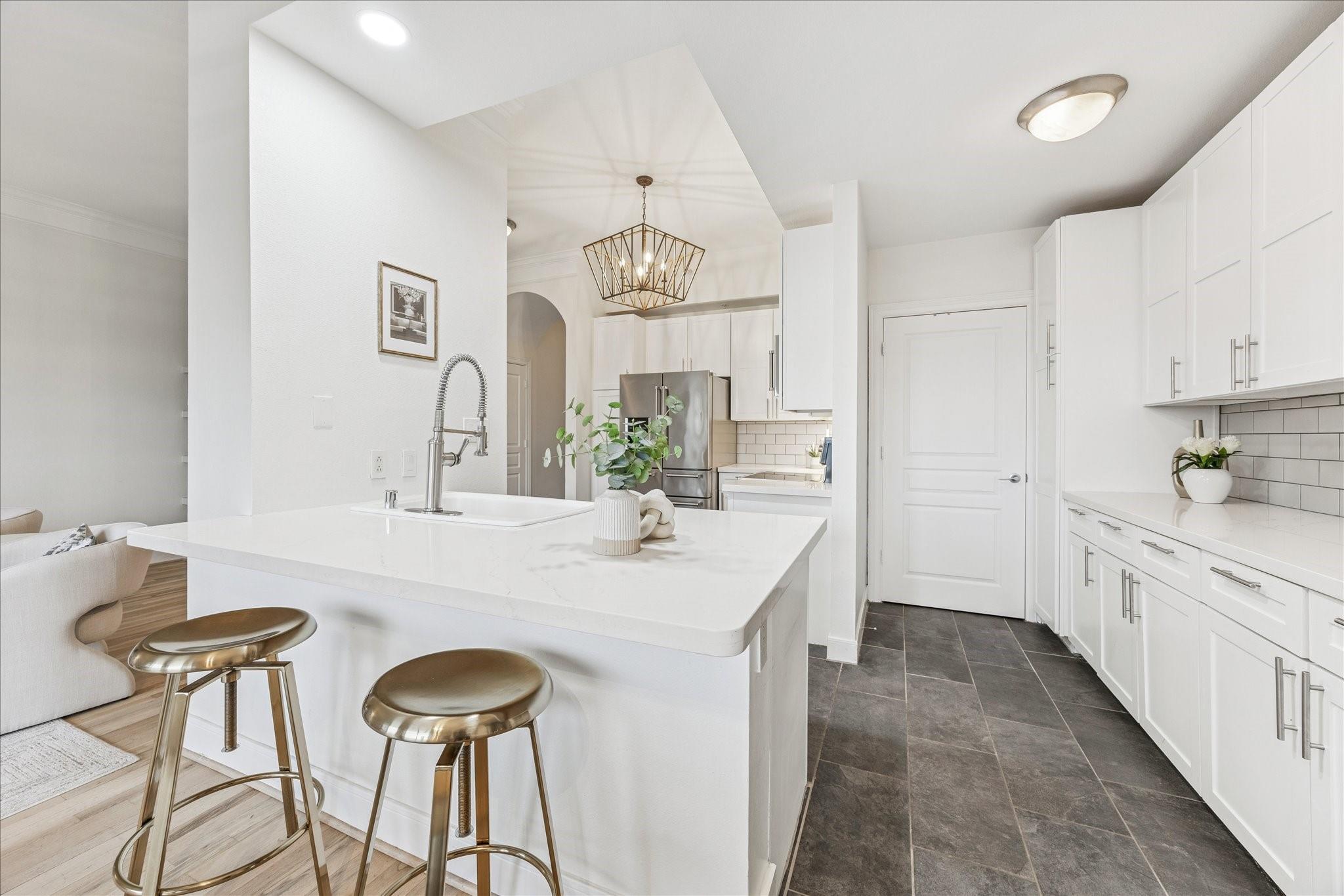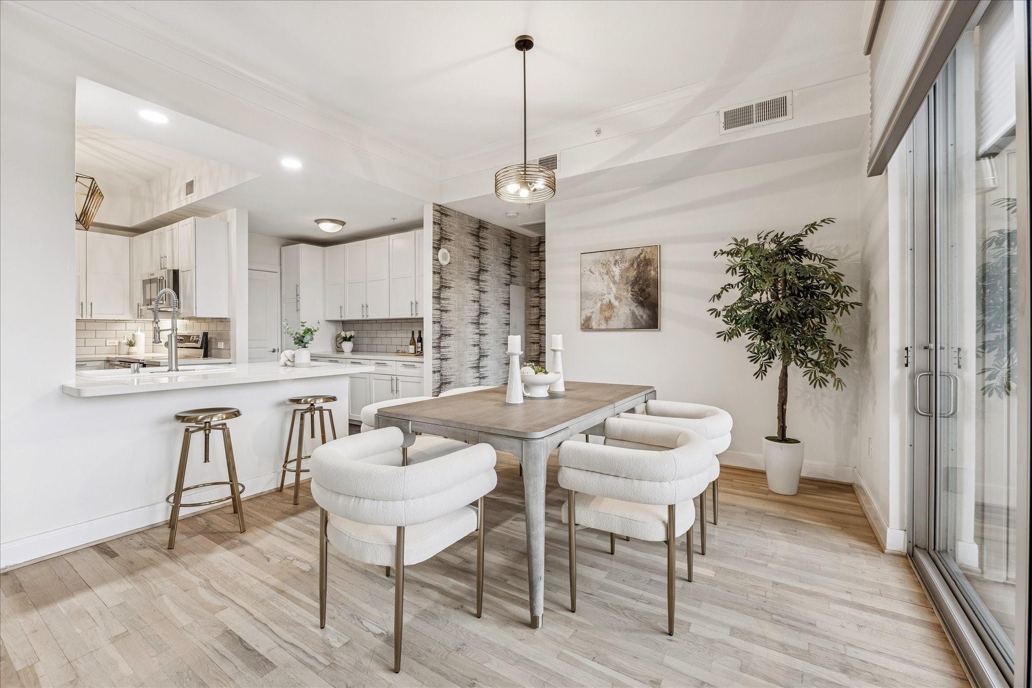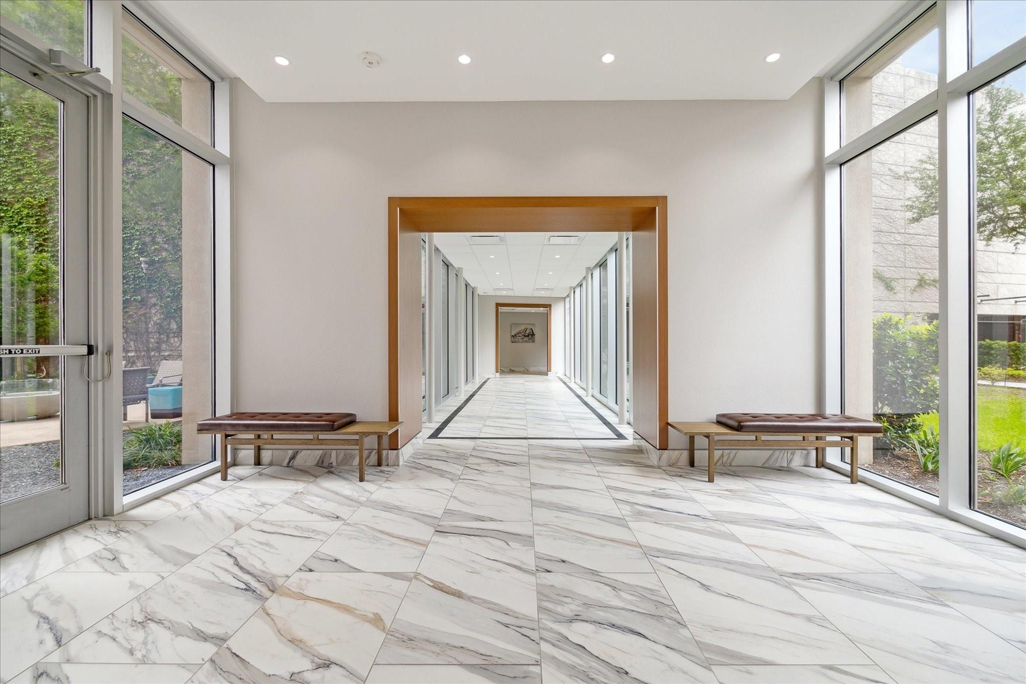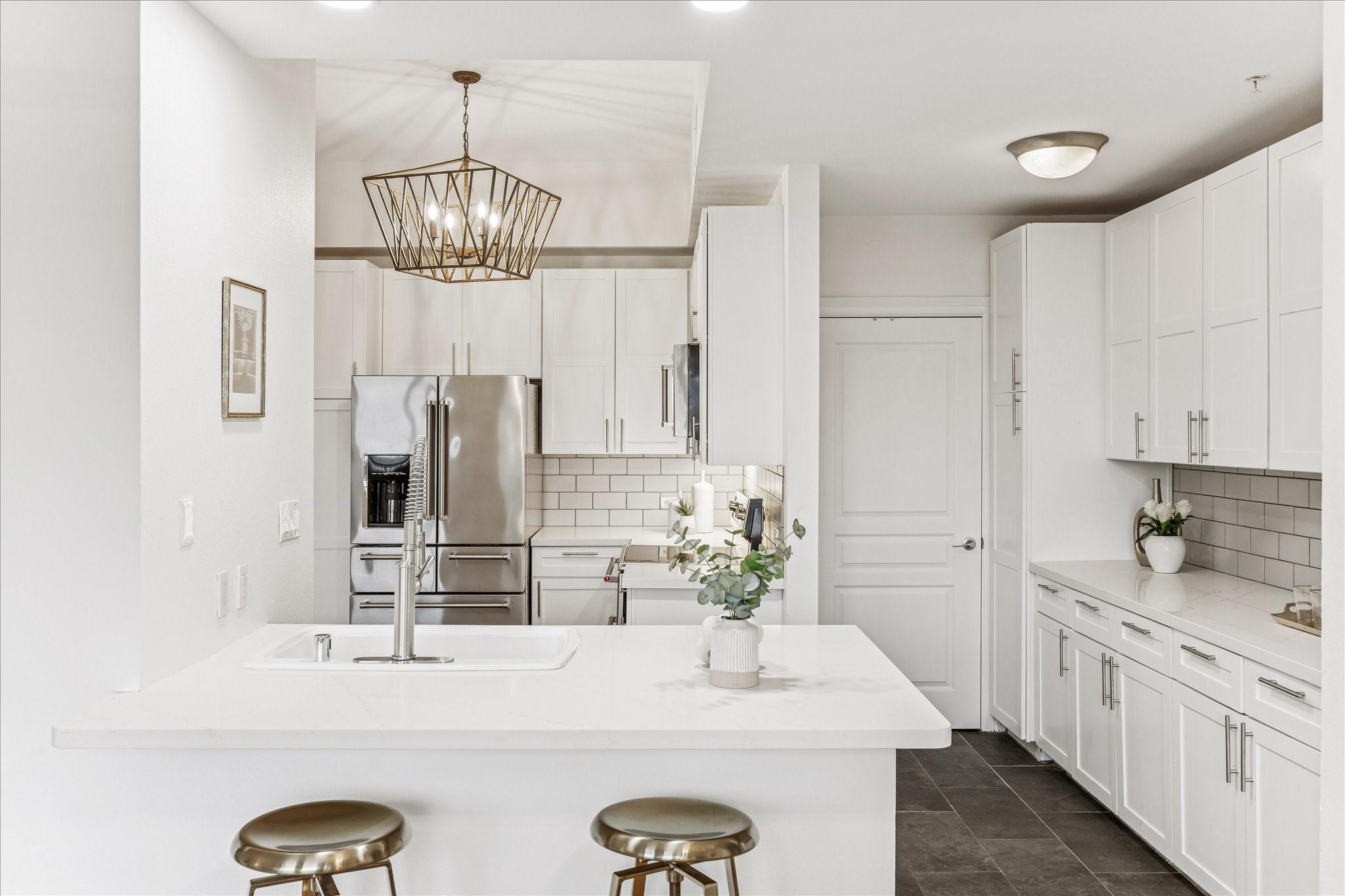 STUNNING downtown views! Rare, updated, large 1-bedroom + 1.5 bath condo with limited inventory in the building. Light and bright finishes, custom closet system, motorized shades, and premium KitchenAid appliances make this the perfect lock-and-leave lifestyle. One reserved parking space included. Residents enjoy 24-hour concierge, valet, a state-of-the-art fitness center, pool and spa, coffee bar, ballroom with catering kitchen, conference rooms, business center, guest suites, theater, dog park, and beautifully designed common spaces. Ideally located near Houston’s premier shopping and dining. Walk to Buffalo Bayou Park, Whole Foods, Memorial Park & much more!