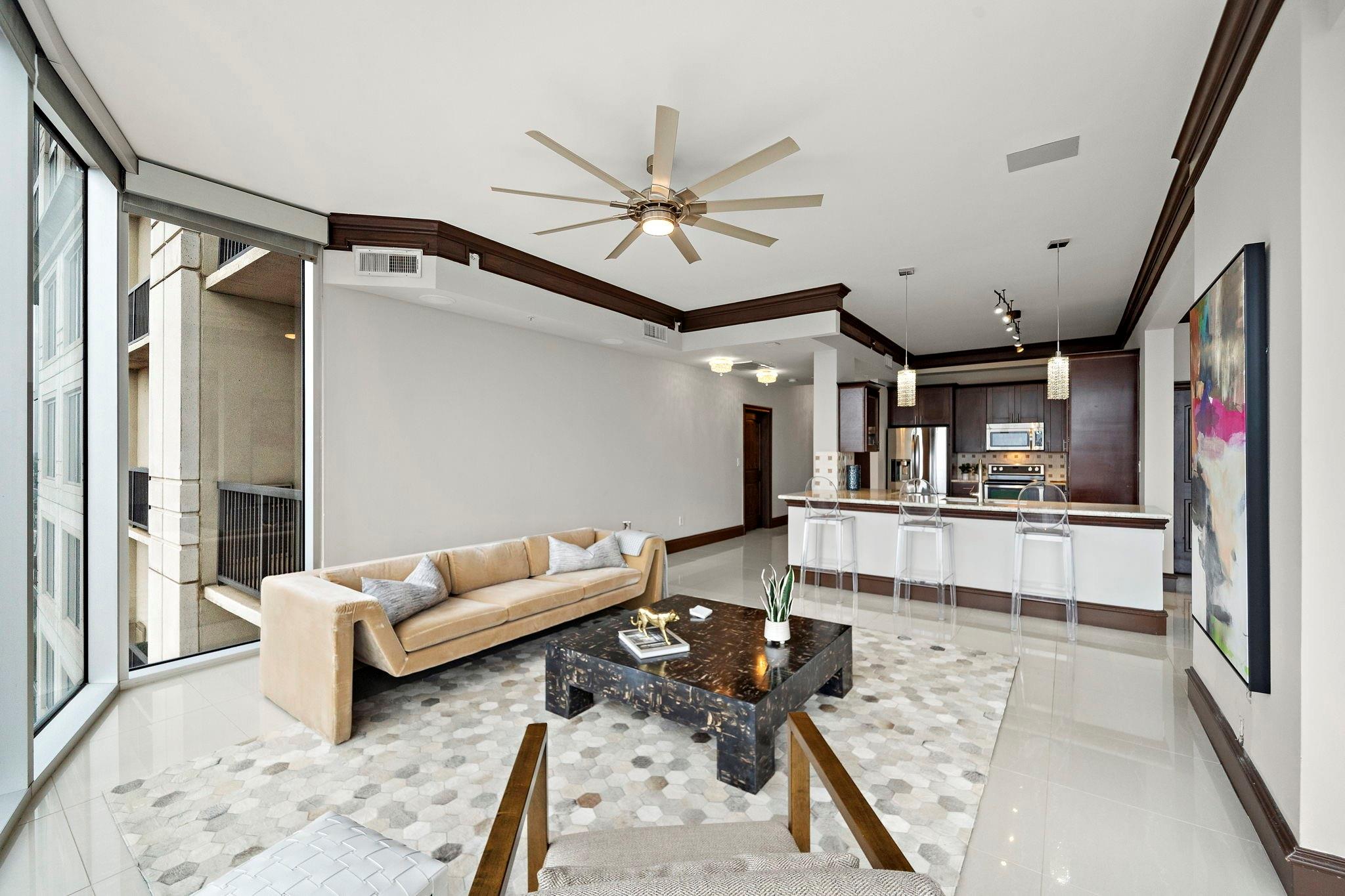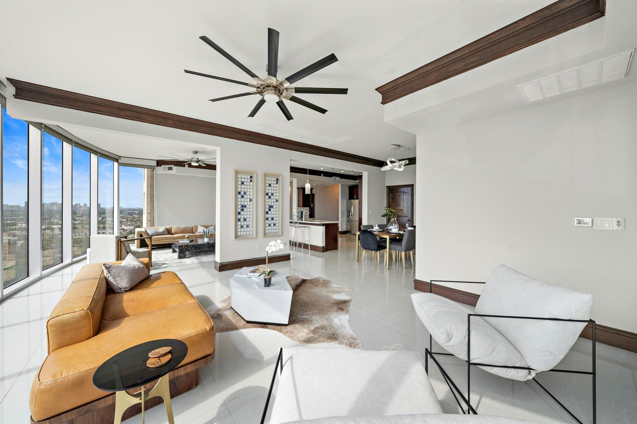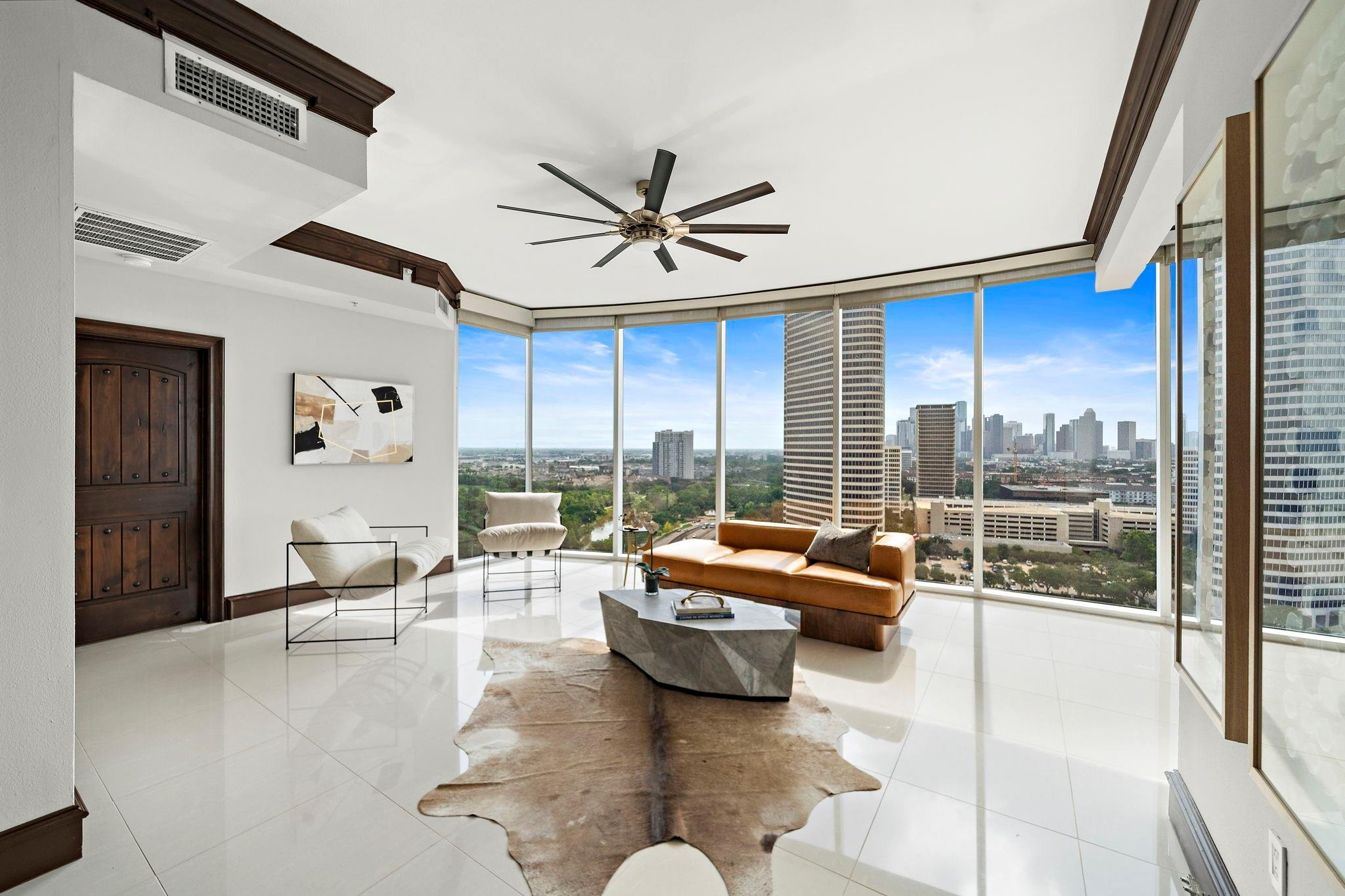Furnished & MoveIn Ready. Live Like Royalty in the Sky Experience elevated living in this sleek, modern ranch-style condo offering some of the most breathtaking downtown views in the city. This rare, downtown-facing residence features 2 bedrooms and 2.5 baths and has been completely reimagined with custom, designer finishes throughout.The open-concept floor plan is wrapped in dramatic floor-to-ceiling windows, creating the sensation of living above the city skyline. Stunning light marble flooring paired with crisp white walls fills the space with natural light, delivering a bright, airy ambiance that instantly lifts your mood. Every detail has been thoughtfully curated & the home is offered fully furnished, making it truly turnkey. Located in a premier full-service building with concierge services and world-class amenities, this is luxury high-rise living at its finest. Rare downtown-facing units like this do not last. Schedule your private showing today and step into your dream home.