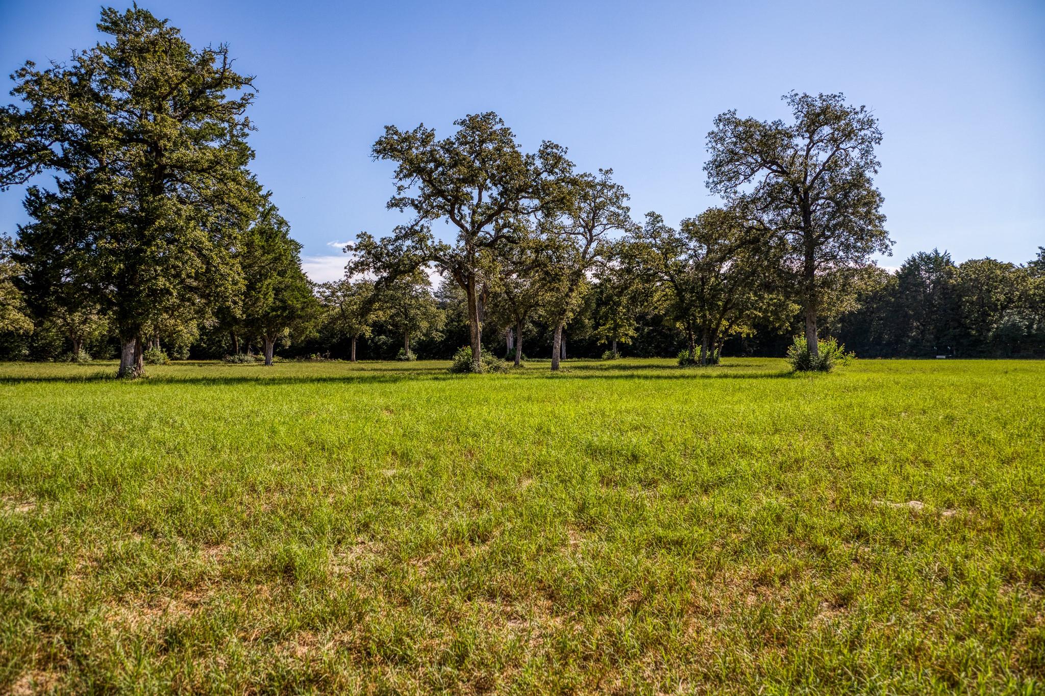 W9 Ranch - The Lee County Wildlife Haven of +/- 94 Acres of Woods, Game proof Perimeter Fencing, Custom Home, 90 x 150 Metal Equipment Barn, 3,200 feet of Paved County Road Frontage, Gorgeous Rolling Terrain and Long Distance Views! The property boasts a diverse landscape of towering trees, woods, and improved grasses. The land is well-maintained with a mix of agricultural fields around the perimeter of the ranch and native coverage for wildlife. The land features two ponds and a private water well. Paved, county maintained roads. No restrictions and no floodplain. 3,415 SqFt multi-level home with HardiPlank & stone exterior with metal roof. Inside, the home features tile and wood flooring, high ceilings, and elegant finishes with two spacious primary suites with walk-in tiled shower, walk-in closets, dual vanity, and one suite offering garden tub. The kitchen is a chef's dream with quartz countertops, natural wood cabinetry, and top-of-the-line stainless steel appliances.