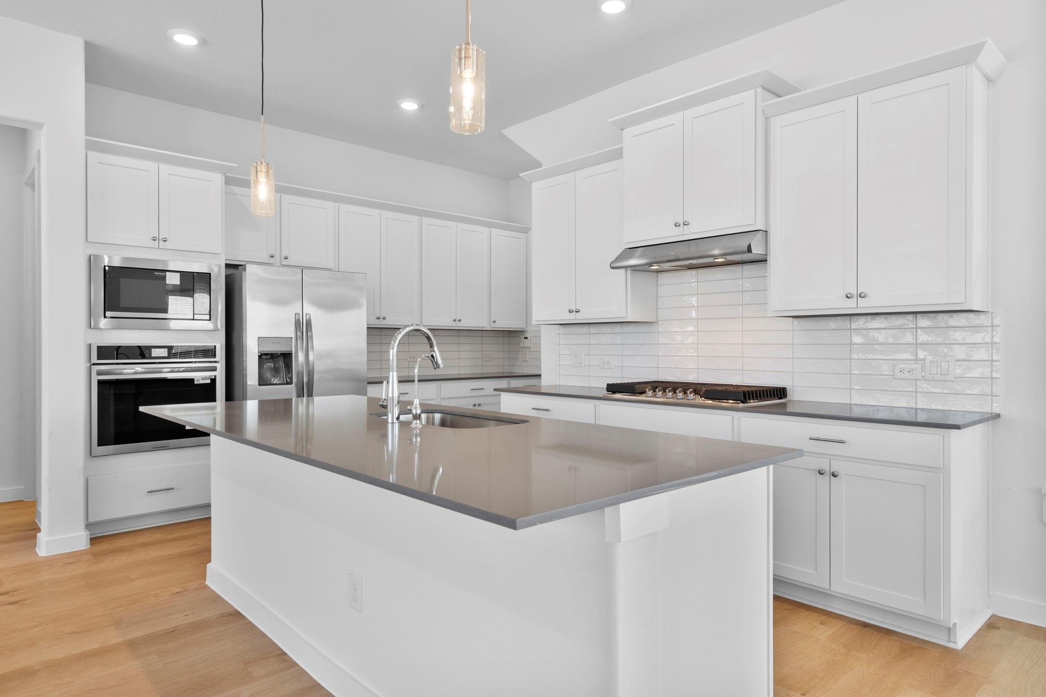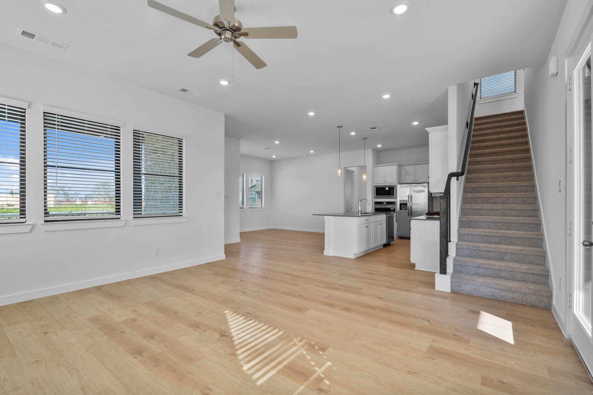 InteriorFloors:Vinyl PlankCountertop:QuartzBathroom Description:Full Secondary Bathroom Down,Primary Bath: Double Sinks,Primary Bath: Separate Shower,Primary Bath: Shower Only,Secondary Bath(s): Shower Only,Secondary Bath(s): Tub/Shower ComboBedroom Desc:1 Bedroom Down - Not Primary BR,En-Suite Bath,Primary Bed - 2nd Floor,Walk-In ClosetKitchen Desc:Breakfast Bar,Instant Hot Water,Island w/o Cooktop,Kitchen open to Family Room,Pantry,Pots/Pans Drawers,Soft Closing Cabinets,Soft Closing Drawers,Walk-in PantryRoom Description:1 Living Area,Family Room,Formal Dining,Gameroom Up,Kitchen/Dining Combo,Living Area - 1st Floor,Living Area - 2nd Floor,Living/Dining Combo,Loft,Utility Room in HouseHeating:Central GasCooling:Central ElectricConnections:Electric Dryer Connections,Washer ConnectionsDishwasher:YesDisposal:YesCompactor:NoMicrowave:YesRange:Gas CooktopOven:Convection OvenIce Maker:NoEnergy Feature:Attic Vents,Ceiling Fans,Digital Program Thermostat,Energy Star/CFL/LED Lights,High-Efficiency HVAC,Insulation - Batt,Insulation - Spray-Foam,Other Energy Features,Radiant Attic Barrier,Tankless/On-Demand H2O HeaterInterior:Alarm System - Owned,Dryer Included,Fire/Smoke Alarm,High Ceiling,Refrigerator Included,Washer Included