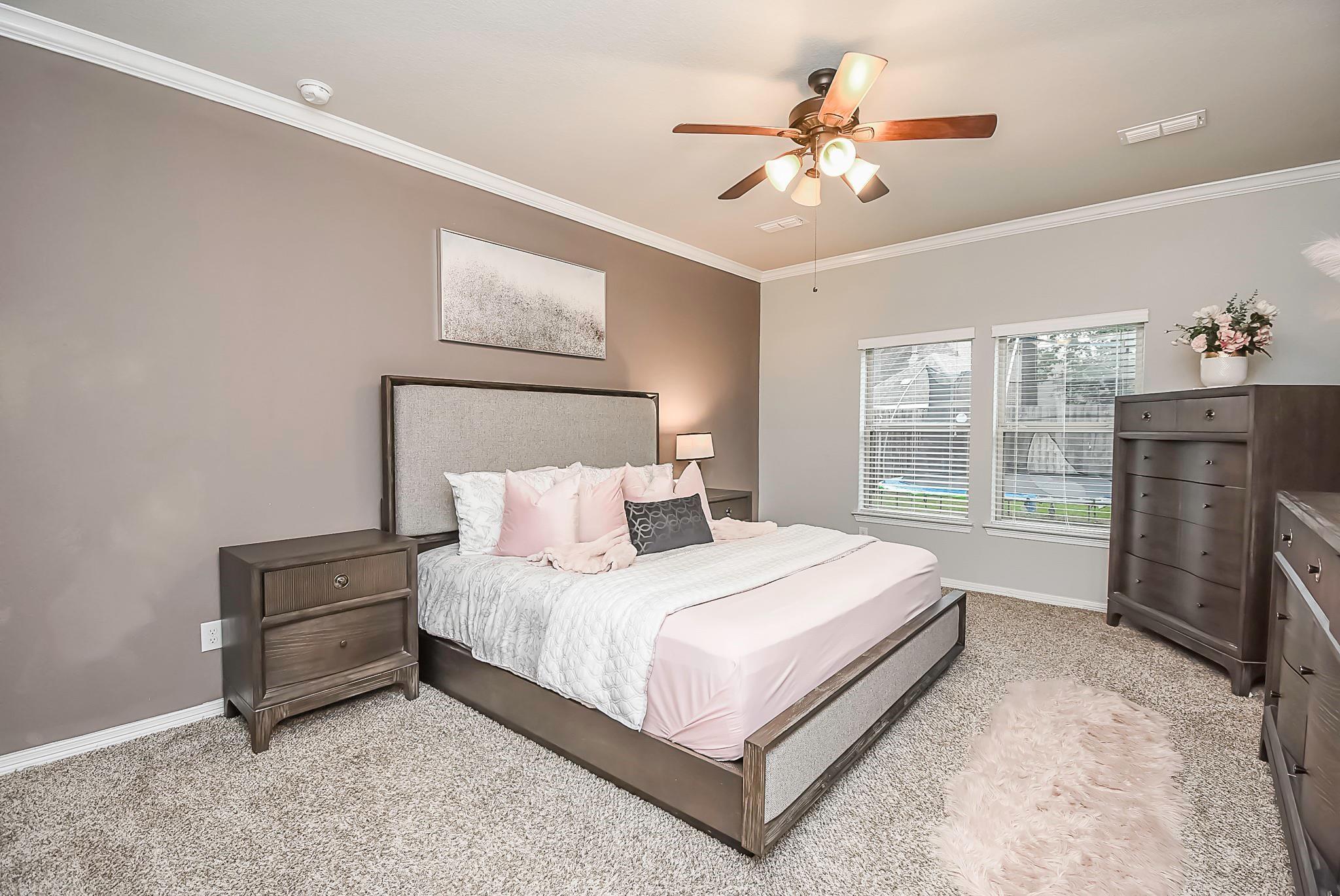 /monthThis home glows! Its location, style, openness, & clean design all make it an incredible offering. Make cherished memories in a fondly cared for backyard&large covered patio. Outside features waterline/gas line ready for you to build friendly outdoor kitchen, allowing for family/friends delightful entertaining. High ceilings entry leads to second bedroom down on left, which could be used as office/flex space w easy access to full bathroom. Wood looking resilient tile floors in entry, extended entry, kitchen&formal dining. Gourmet kitchen opens to family room w soaring ceiling. AC 8 years, water heater 8 years, paint 2019, kitchen cabinet paint 2022, outdoor patio 2022, outdoor patio pergola 2022. Upstairs feature gameroom, three bedroom/ two full bath. Cul-de-sac lot. Harvest Green offers lakes/waterways/greenbelts/open space/walking trails/ tennis courts, playground /splash pad, sand volleyball crt, fitness center/dog park. close to restaurants, shopping. Fort bend schools