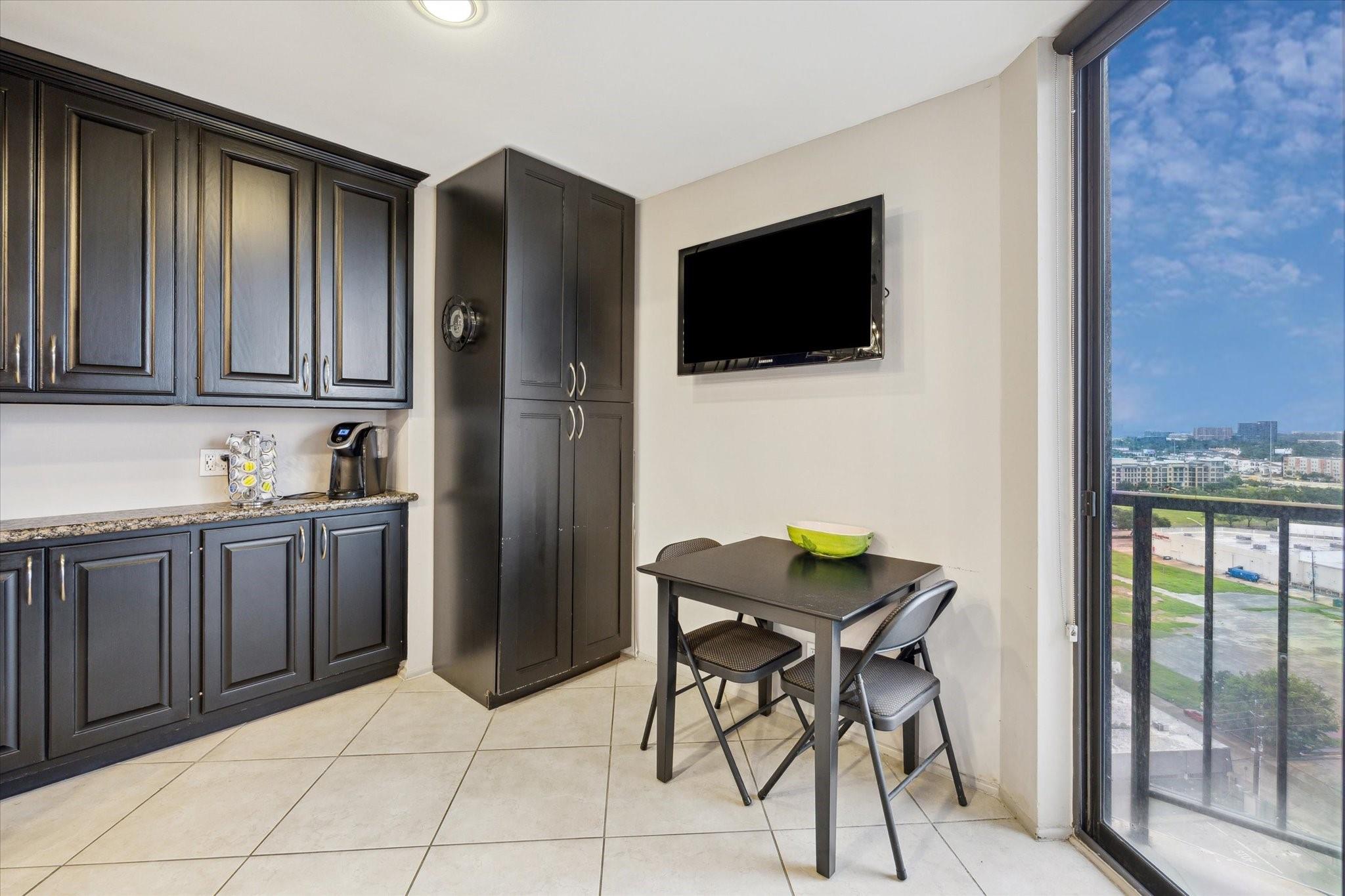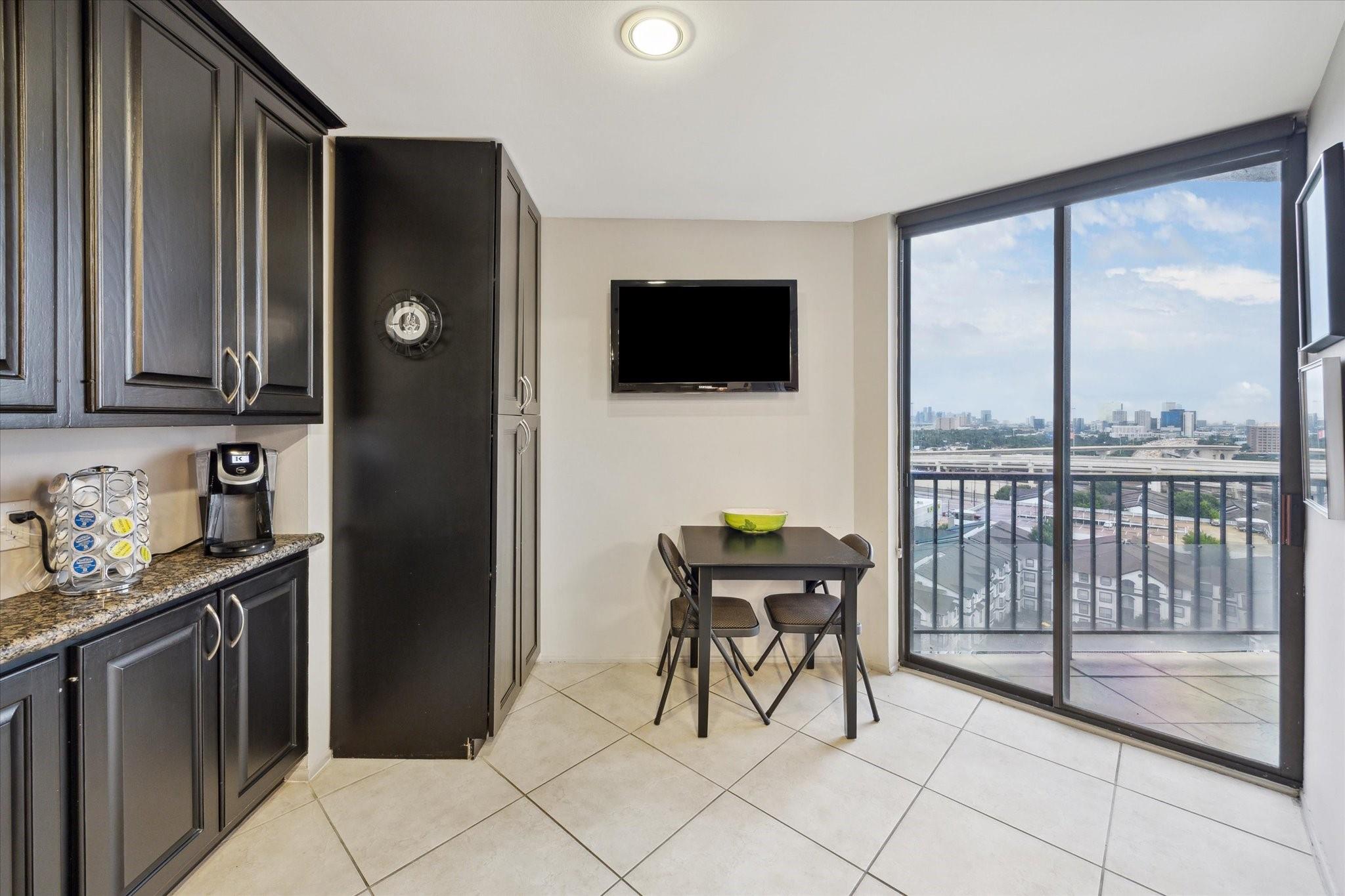 Welcome to Unit 1504 at The Bristol, a beautifully appointed 3-bedroom 2.5 bath residence offering stunning panoramic views of Houston. This spacious home features an open floor plan with tile flooring throughout, crown molding, and art lighting. The elongated living room includes a wet bar and space for a seating area, breakfast nook, or game table. The formal dining room sits just off the kitchen and opens to the living area, with a large window extending the city views. A gourmet galley kitchen boasts granite countertops, stainless appliances, abundant cabinetry, and a walk-in pantry. The primary suite offers a Juliet-style balcony, seating area, and a luxurious ensuite bath with dual sinks, a glass-enclosed shower, and built-in storage. Secondary bedrooms provide flexibility, including one with balcony access. Enjoy resort-style amenities: a fitness center, heated pool, hot tub, tennis courts, walking path, 24-hour concierge, valet parking and more—all in a prime Houston locatio