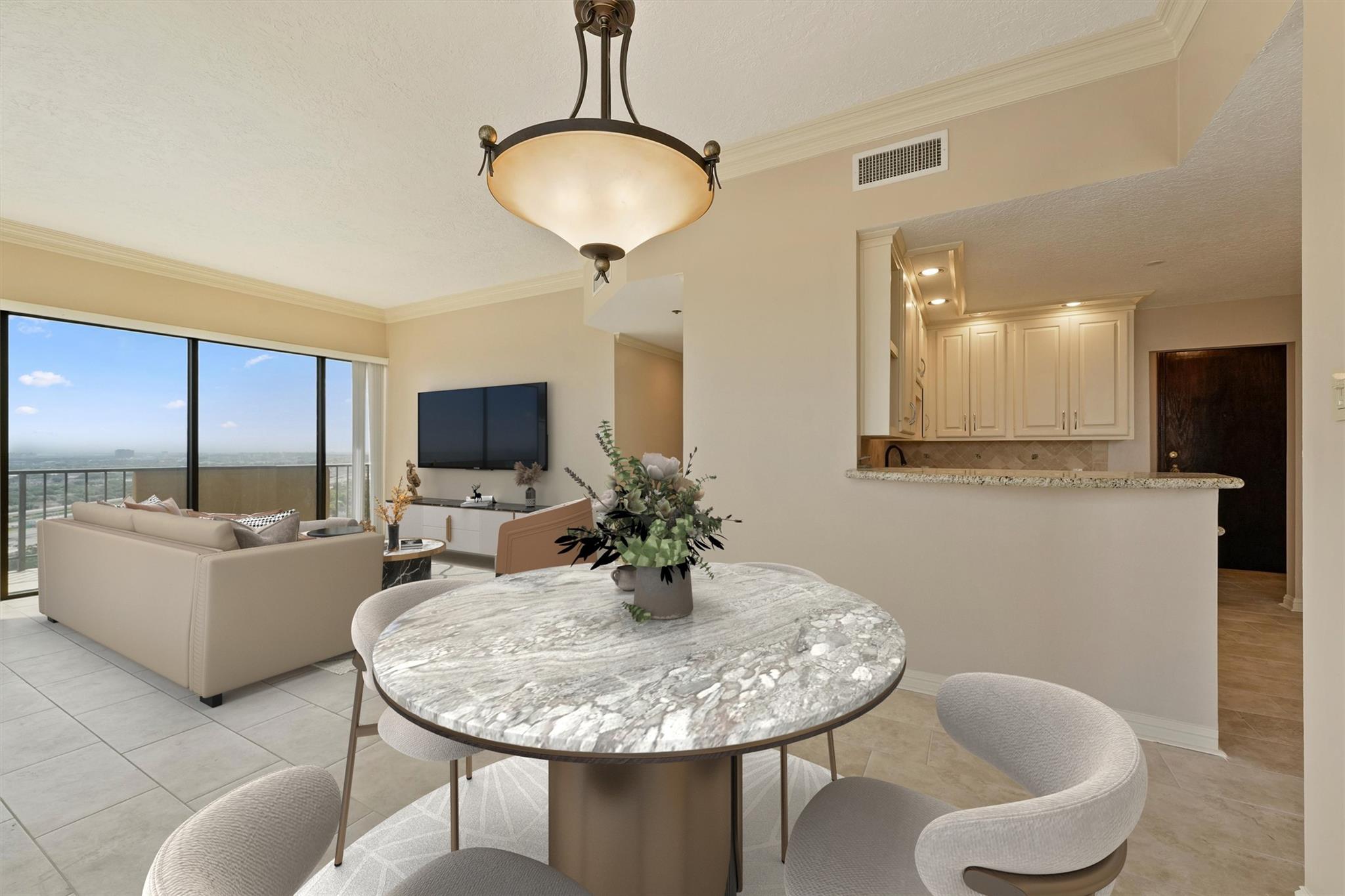 Perched on the 23rd floor of The Bristol in The Galleria, this contemporary 2-bedroom residence delivers sweeping skyline views of both Downtown and Uptown/Galleria. The open-concept layout is anchored by walls of windows that flood the interior with natural light, creating an airy and refined living environment. Residents enjoy resort-style living with 24-hour full-service concierge, a state-of-the-art fitness center, a heated pool, and rooftop Tennis/Pickleball courts—perfect for wellness and recreation. The unit includes two assigned parking spaces plus climate-controlled storage, combining luxury with everyday convenience. Ideal for those seeking a turnkey urban lifestyle in one of the city’s most coveted high-rise addresses.