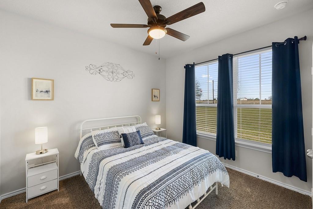 Welcome to peaceful country living just 3± miles north of Weimar in Fayette County! Built in 2024, this 3-bedroom, 2-bath home offers 1,441 sqft on 1.84 acres with scenic countryside views. The open-concept living, dining, and kitchen feature an island with granite countertops, gas range, pantry, and utility room. Vinyl plank flooring in main areas and carpet in bedrooms. The primary suite includes double vanity, soaking tub, walk-in shower, and private patio access. Front and back porches face east/west for sunrise and sunset views. Improvements include a 36’x35’ detached garage/shop with three overhead doors, water well, aerobic septic, fiber internet, and storage building. Level terrain, no floodplain, surveyed Feb 2024, with neighboring 80± acre tract to the north and east. Move-in ready with modern finishes and room to enjoy the outdoors.