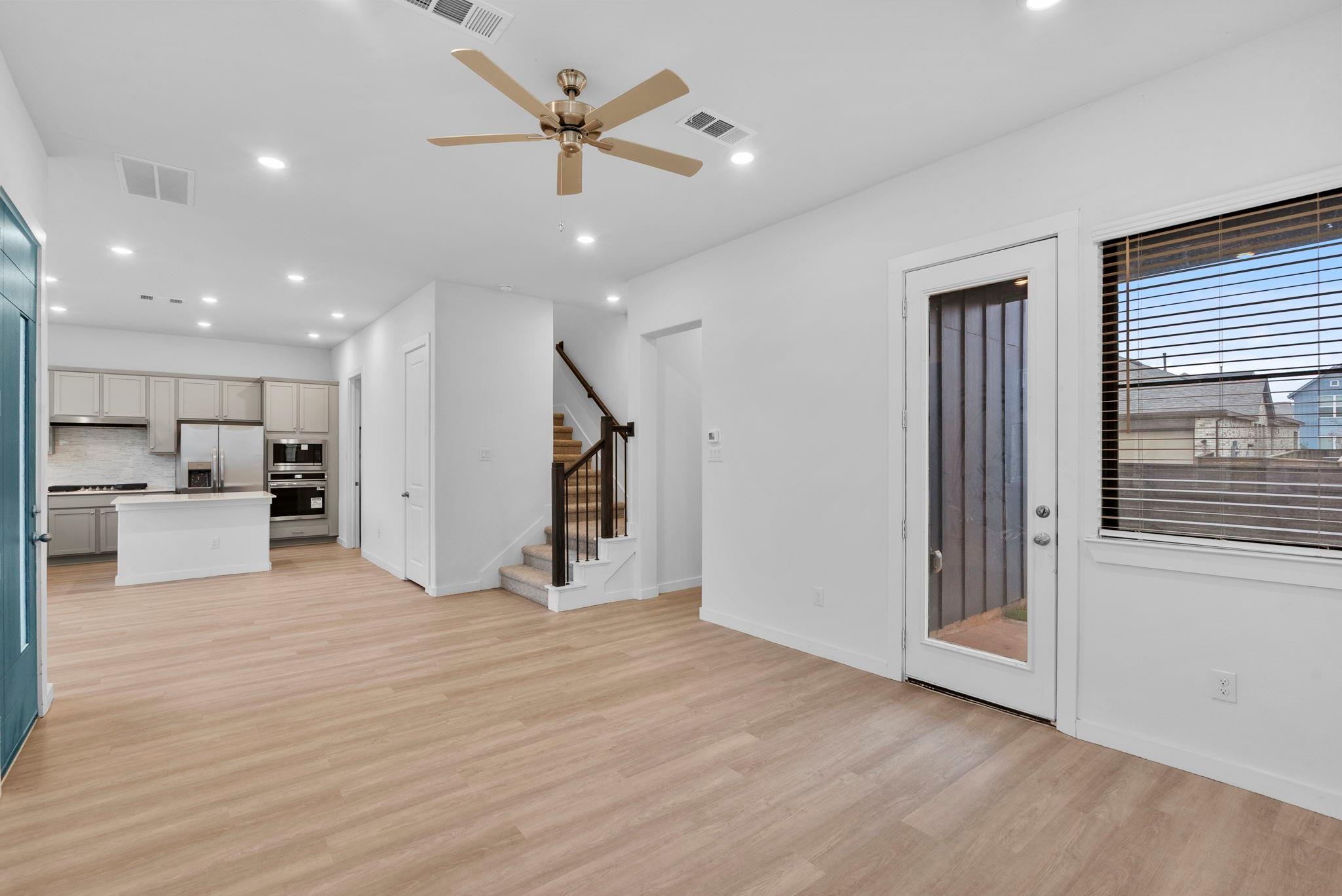 InteriorFloors:Vinyl PlankCountertop:QuartzBathroom Description:Half Bath,Primary Bath: Double Sinks,Two Primary Baths,Vanity AreaBedroom Desc:2 Primary Bedrooms,All Bedrooms Up,En-Suite Bath,Primary Bed - 2nd Floor,Walk-In ClosetKitchen Desc:Breakfast Bar,Island w/ Cooktop,Kitchen open to Family Room,Pantry,Soft Closing Cabinets,Soft Closing Drawers,Walk-in PantryRoom Description:1 Living Area,Breakfast Room,Family Room,Home Office/Study,Living Area - 1st Floor,Utility Room in HouseHeating:Central GasCooling:Central ElectricDishwasher:YesDisposal:YesCompactor:NoMicrowave:YesIce Maker:NoEnergy Feature:Ceiling Fans,HVAC>15 SEERInterior:2 Staircases,Dryer Included,Fire/Smoke Alarm,High Ceiling,Washer Included,Window Coverings