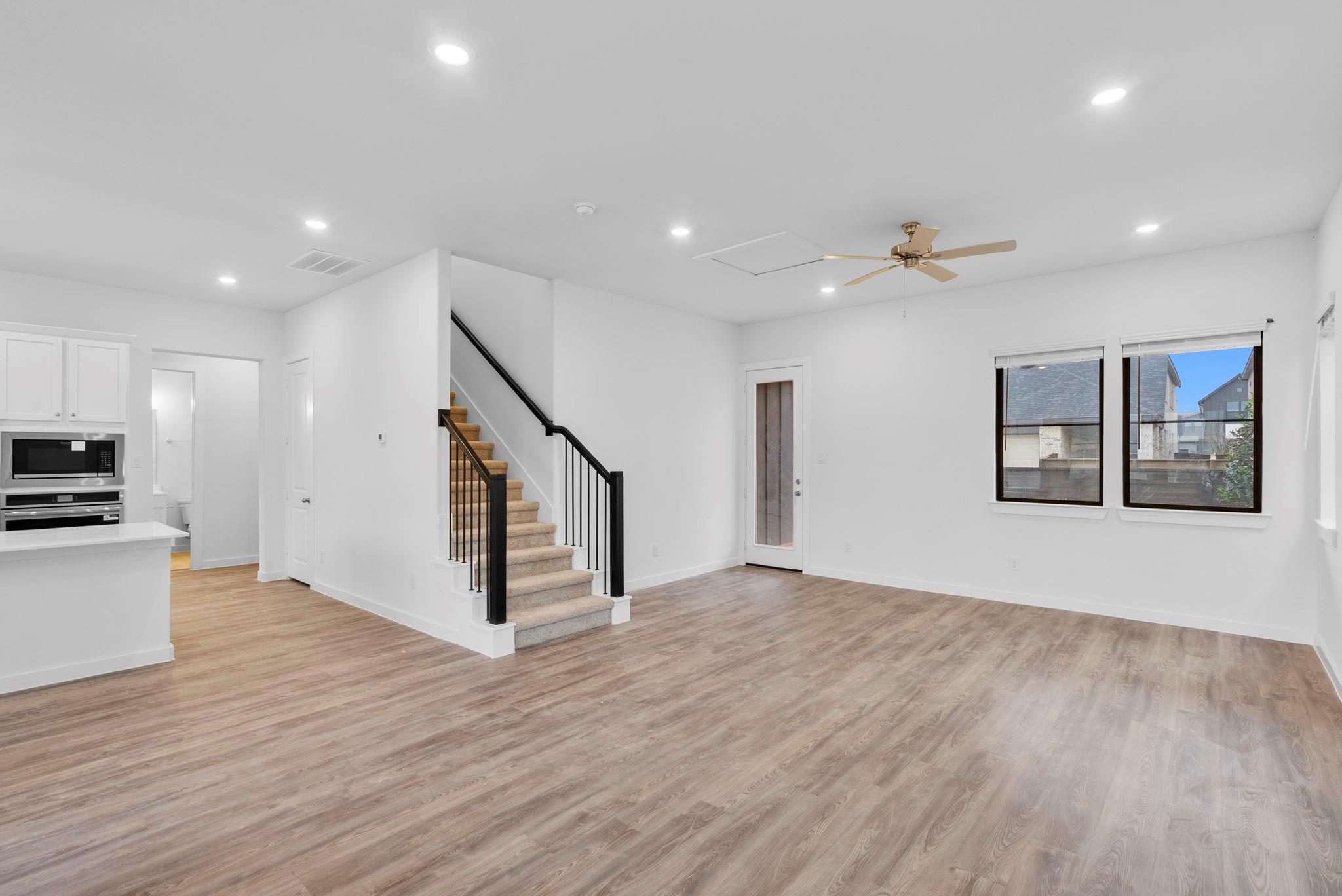 InteriorFloors:Carpet,Vinyl PlankCountertop:QuartzBathroom Description:Full Secondary Bathroom Down,Primary Bath: Double Sinks,Primary Bath: Separate Shower,Secondary Bath(s): Shower OnlyBedroom Desc:1 Bedroom Down - Not Primary BR,2 Bedrooms Up,En-Suite Bath,Primary Bed - 2nd Floor,Walk-In ClosetKitchen Desc:Breakfast Bar,Island w/o Cooktop,Kitchen open to Family Room,Pantry,Soft Closing Cabinets,Soft Closing Drawers,Walk-in PantryRoom Description:1 Living Area,Entry,Family Room,Living Area - 1st Floor,Living Area - 2nd Floor,Loft,Utility Room in HouseHeating:Central GasCooling:Central ElectricConnections:Electric Dryer Connections,Gas Dryer Connections,Washer ConnectionsDishwasher:YesDisposal:YesCompactor:NoMicrowave:YesRange:Gas CooktopOven:Electric OvenIce Maker:NoEnergy Feature:Ceiling Fans,Digital Program Thermostat,Insulated/Low-E windows,Insulation - Blown FiberglassInterior:Dryer Included,Fire/Smoke Alarm,Prewired for Alarm System,Refrigerator Included,Washer Included,Window Coverings
